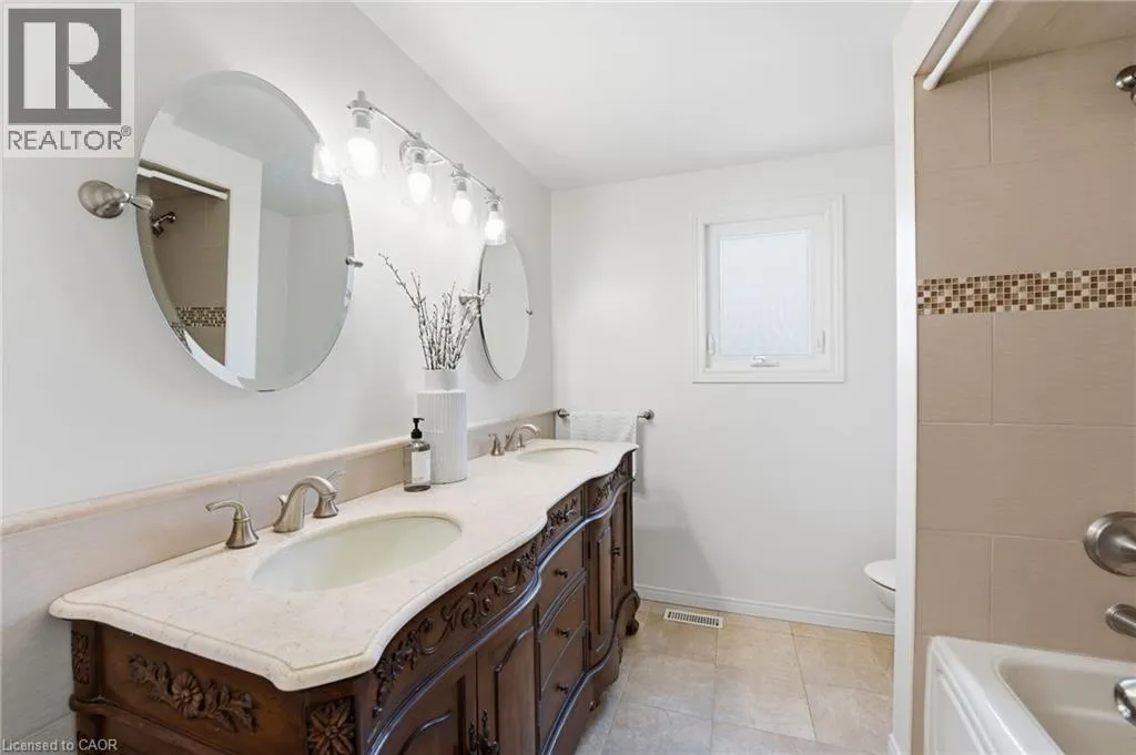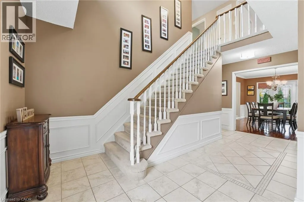 Jerseyville to Lloyminn to Terrence Park Dr to Chatterson Dr Location, Location, Location! Come view 84 Chatterson Drive to explore the highly sought-after OakHill neighbourhood of Ancaster. This family-friendly locale is known for its picturesque surroundings providing peace & quiet, while simultaneously offering schools, amenities, restaurants, shops, places of worship and highway access in minutes. Situated in close proximity to conservation trails with access to the Dundas Valley a short walk away, this location is an added bonus for avid outdoor enthusiasts. Notably, the path a few doors down from this home leads to Somerset Park with expansive green space for kids and pets to play! Set on a 60 X 110 lot, this 4 Bed, 3.5 bath home boasts double driveway, double garage and impressive composite deck, complete with outdoor gazebo and string lights. Don't miss the finished basement, complete with isolated media room with platform seating, spacious recreation room with games area and separate den/office with window. The lower-level is the perfect space for families to enjoy movies or games, home gym or guest/teen retreat, complete with 3 piece lower level bathroom. Relax and entertain across the traditional floor plan which includes front living room, cozy family room and formal dining room with hardwood flooring. An open eat-in kitchen with sight lines overlooking the backyard is convenient for watching kids play outside. Better yet? The main-level laundry/mudroom combo benefits from garage access and a separate entry to side yard. The upper level boasts four bedrooms including a spacious primary bedroom with dual closets and ensuite bath. Additional upper level bedrooms are ready for your personal design finishes, sharing a 4 piece bath. The easy-to-maintain backyard offers privacy with a canopy of mature trees. Amongst quiet streets lined with custom built homes and carved along the conservation area, 84 Chatterson Drive is a great opportunity to enter idyllic OakHill, where comfort meets convenience! RSA. (id:27476)