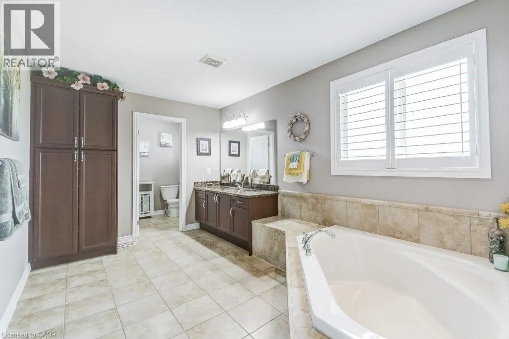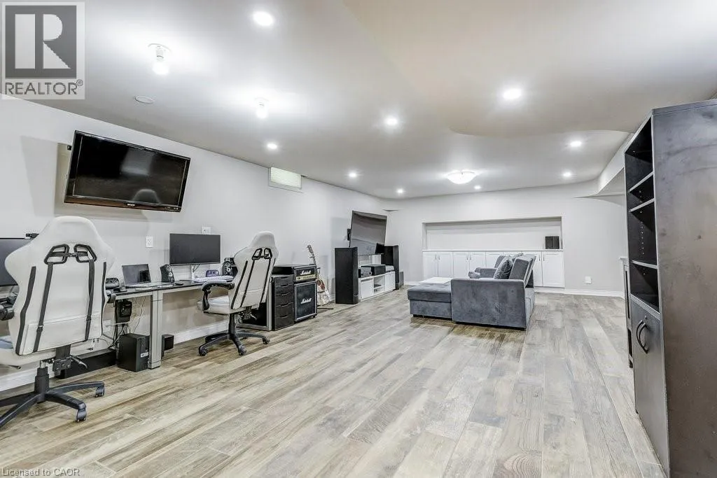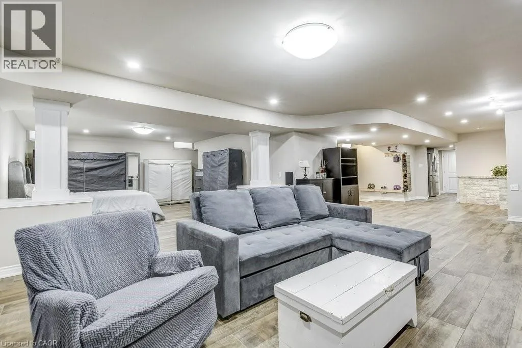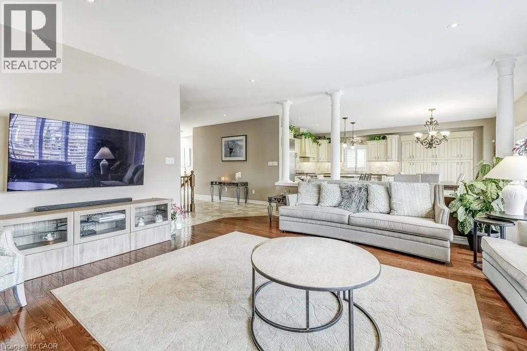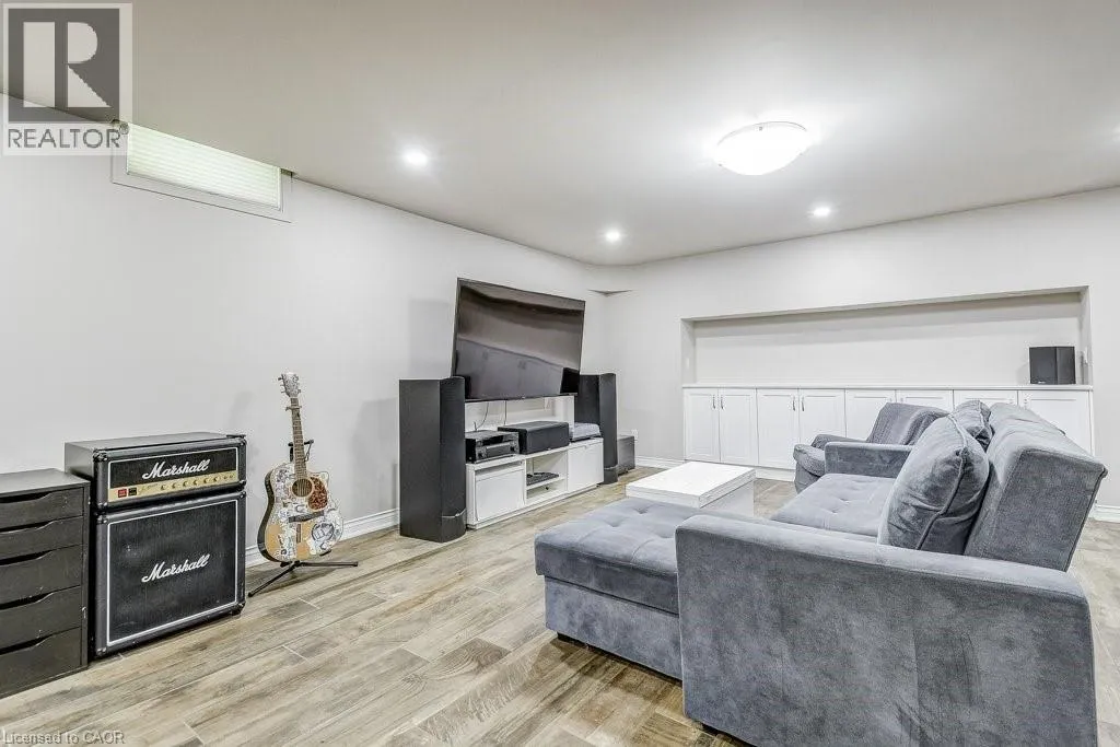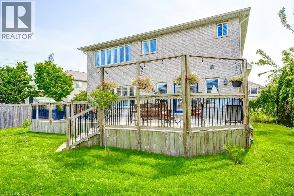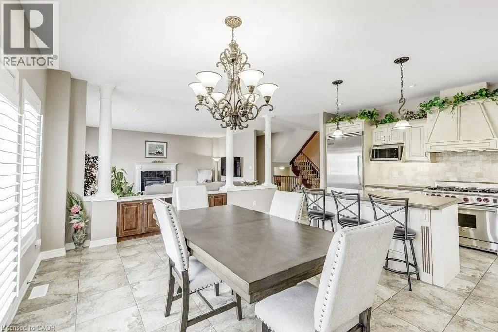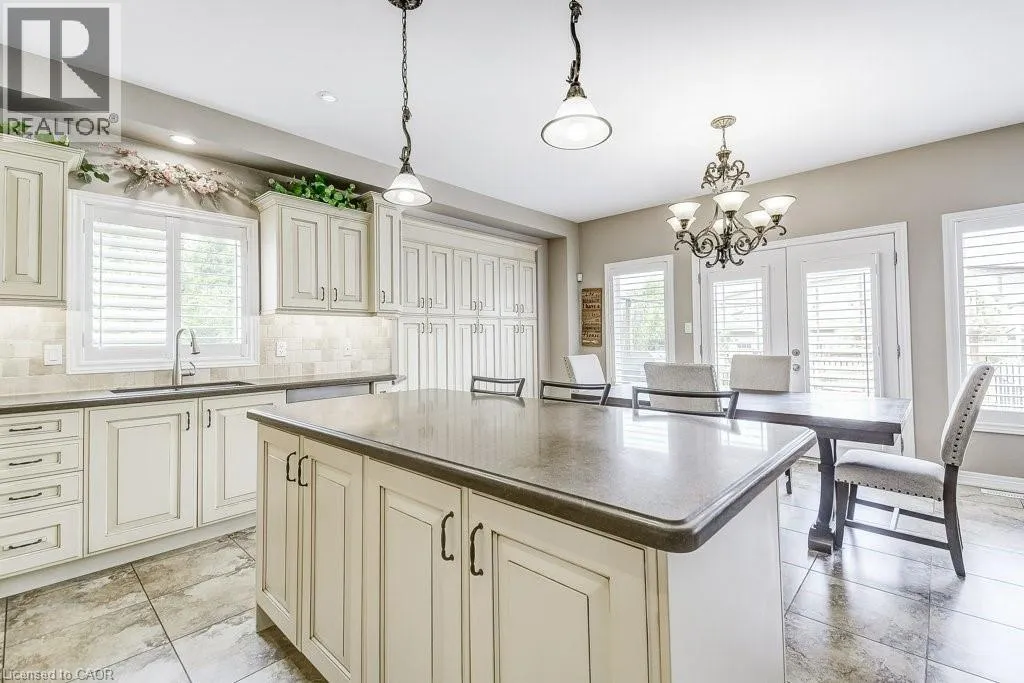 GARNER ROAD TO SPRINGBOOK TO LOCKMAN This stunning dream home in the heart of Ancaster Meadowlands gleams with tons of natural light! A breathtaking 2-storey home with over 5000 sq ft of impeccably finished living space and premium sized lot creates an impressive home with an open-concept gourmet kitchen featuring stainless-steel appliances, quartz counters, a massive centre island and an abundance of beautiful cabinetry; expanding into a great room with a cozy gas fireplace and wall-to-wall windows spanning the entire back of the house; add beautiful garden doors that open to an outdoor entertainers dream with a large deck and a fully fenced private backyard. There are hardwood floors, California shutters and for the modern family, this immaculate home offers a main-level in-law space including a kitchenette, private bedroom, full bathroom suite ideal for aging parents, a growing family, or hosting visitors. Upstairs there are 4 large bedrooms, 2 full baths and a convenient second-floor laundry room. The basement is fully finished with in-floor heating, porcelain tile, a full kitchen and a rough-in for laundry (stackable washer/dryer). There is a separate entrance through the garage providing a perfect space for extended family or adult children. The double-car garage is equipped with dedicated 120 and 220 services ideal for EV charging or home shop. Conveniently located in the Meadowlands community with shopping, restaurants, movie theatre. Beautiful parks for the family, with fields for the sports enthusiast, access to play structures, and a spray pad for hot summer days. A leash-free oasis for dog-lovers and easy access for the commuter with the LINC/403. Book your private tour today to view this blend of home sweet home and luxury. (id:27476)