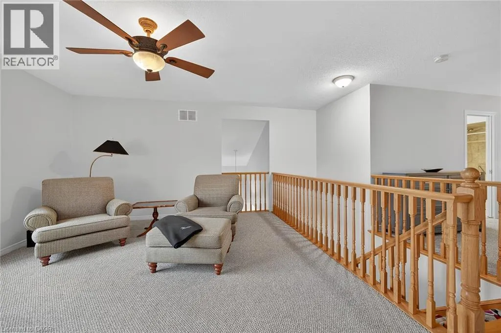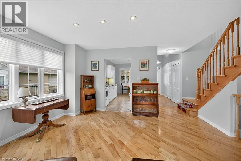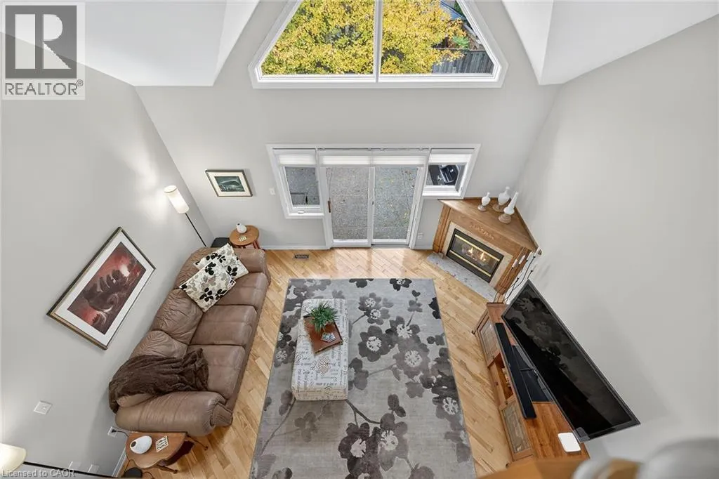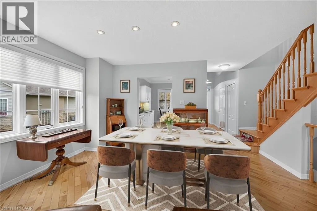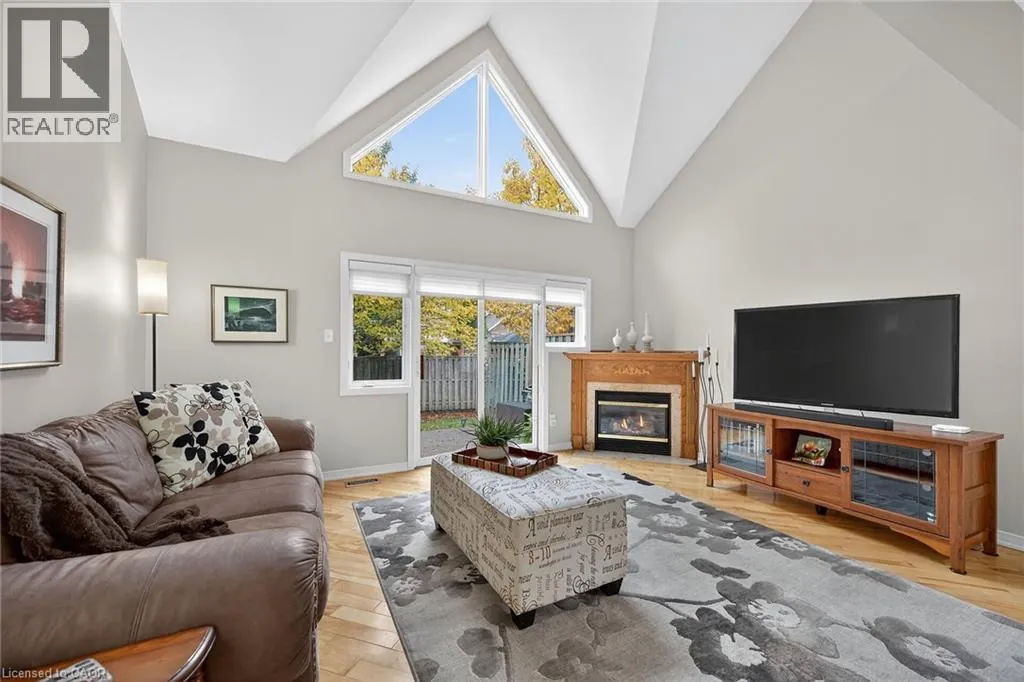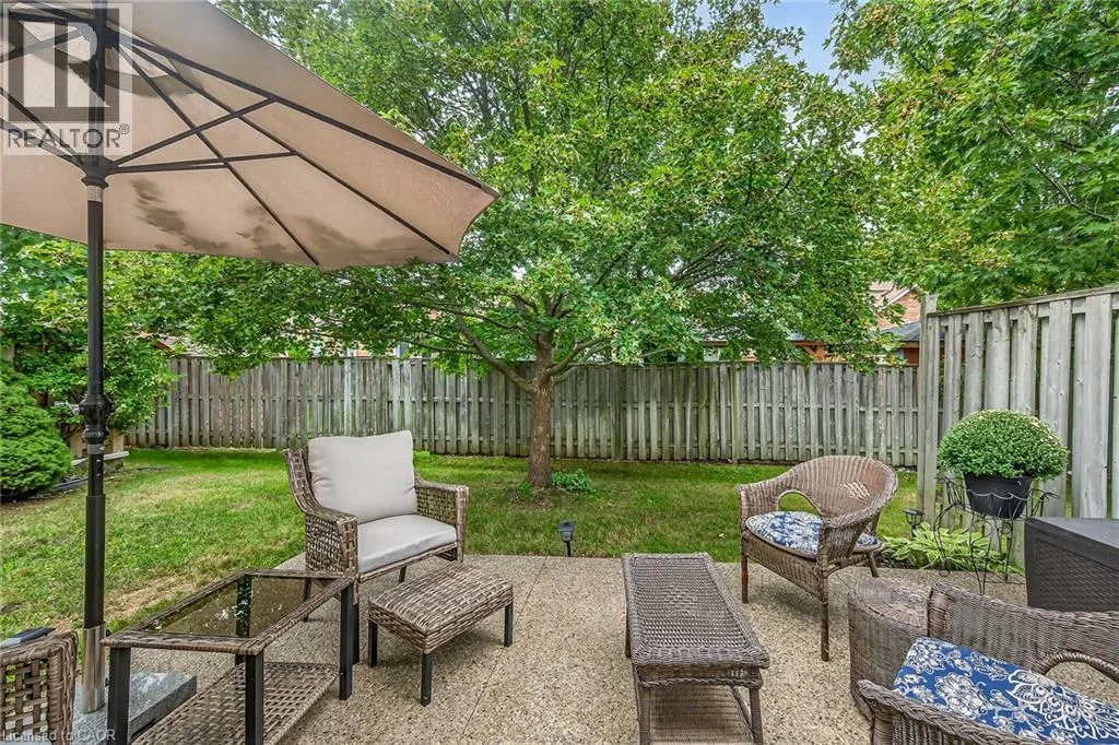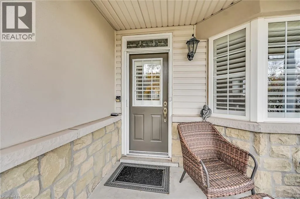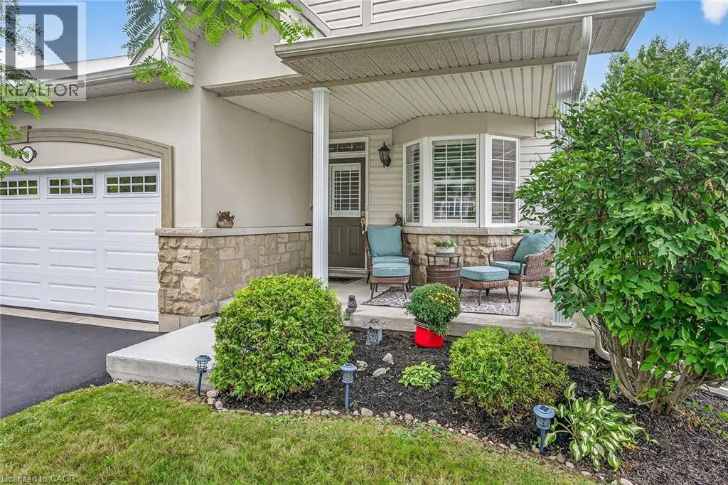 GOLF LINKS RD TO MEADOWLANDS BLVD TO STONEHENGE DRIVE Welcome to 212 Stonehenge Drive, in the much sought-after, Ancaster Meadowlands! Low-maintenance living at its best, in a home that's been lovingly maintained by the original owner of 23 years. This beautiful end unit bungaloft is surrounded by open spaces, mature trees, a very private backyard, and ample visitor parking nearby. Enjoy your morning coffee on the large covered front porch and your glass of wine at the end of the day on the large patio at rear. Here you'll find an exposed aggregate patio, new in 2023, in a very spacious, private, treed setting. Granite countertops are featured in the eat-in kitchen, with lovely bay window, pantry and appliances included. There is a vaulted ceiling in the large living room, with wood floors, a gas fireplace and patio doors to the beautiful backyard. The living room is open to the good-sized dining room which has wood floors and a large window providing lots of natural light! The main floor primary bedroom is conveniently located and has a double closet and a large 4 piece ensuite bathroom. A 2 piece powder room, inside entry from the double garage, and an updated laundry room complete the main floor. Oak stairs lead to the loft, open to below, where you'll find a lovely guest suite or your own private retreat. There is new wall to wall broadloom, a large walk-in closet and a 4 piece bathroom here. The large unspoiled basement awaits your finishing, and has rough-in plumbing for a future bathroom. There is a good-sized finished area at the bottom of the basement stairs which would work well as a home office or den. Clean, freshly painted and move-in ready! This well-managed condo is convenient to shopping, highway access, schools, churches and parks. (id:27476)