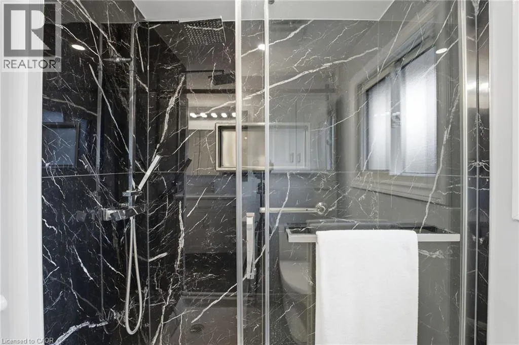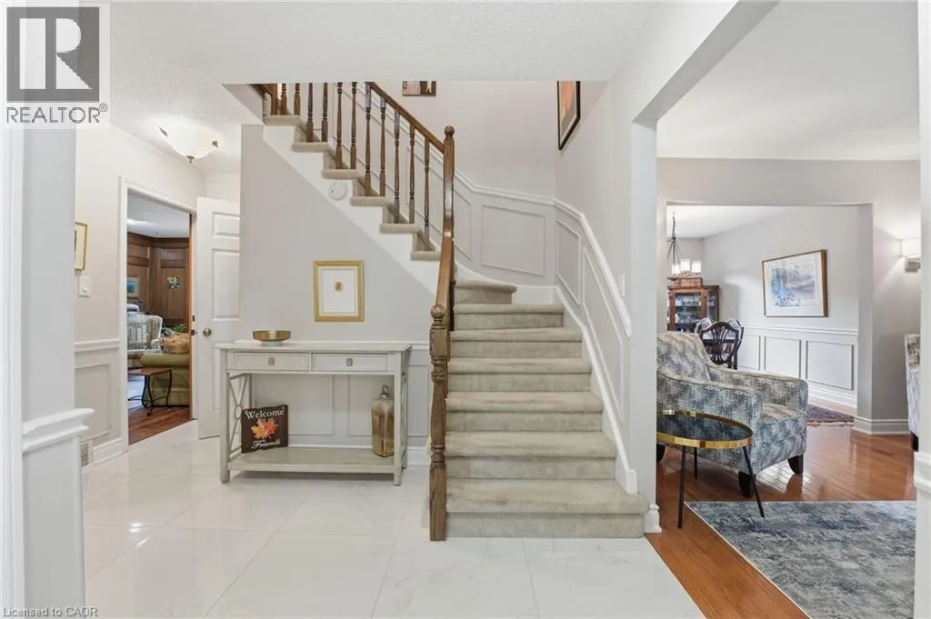 McNiven to Tuscarora to Tomahawk From the moment you visit #668 Tomahawk Crescent you will quickly recognize its many added bonuses including Rousseau Elementary school and Mohawk Meadows park around the corner, convenient highway access and walkability to amenities! Better yet? Embrace the West-facing backyard with mature privacy while enjoying the in-ground pool, hot tub, patio & deck, With 4 bedrooms, 2.5 baths, double garage, double drive and finished basement with two separate offices, this meticulously maintained property offers multiple zones to work-from-home and entertain. The white eat-in kitchen with quartz counters at the heart of the home overlooks the pool and hot tub, while the adjacent formal dining room will be your favorite place to gather friends and family. Enjoy conversation in the bright front living room aside the fireplace or cozy up after a long day in the back fireside room amongst wood walls, brick fireplace and sightline to the backyard. The convenient mudroom with side entry is notably plumbed for main-level laundry and has been used in tandem with the family room as an entry for business clients. The upper level provides a generous primary with bonus seating area, walk-in closet and chic 3 piece ensuite with glass shower and soap niche. With plenty of space for larger families, three additional bedrooms each with closets share a 4 piece bath. Don't miss the finished basement with recreation room for kids, home gym or secondary tv room conveniently separating two offices. Located in the sought-after locale of Mohawk Meadows, everyday activities and conveniences are minutes from this quiet, family-friendly location. In walking distance to the Hamilton Golf & Country Club, the radial path connects to Ancaster's core with tennis club, theatre arts, restaurants, shops, library, splash pad, professional services & trails. With an extensive list of high ticket updates, view in person to experience why residents adore this pocket of Ancaster! Interior measure sq. ft. RSA (id:27476)
