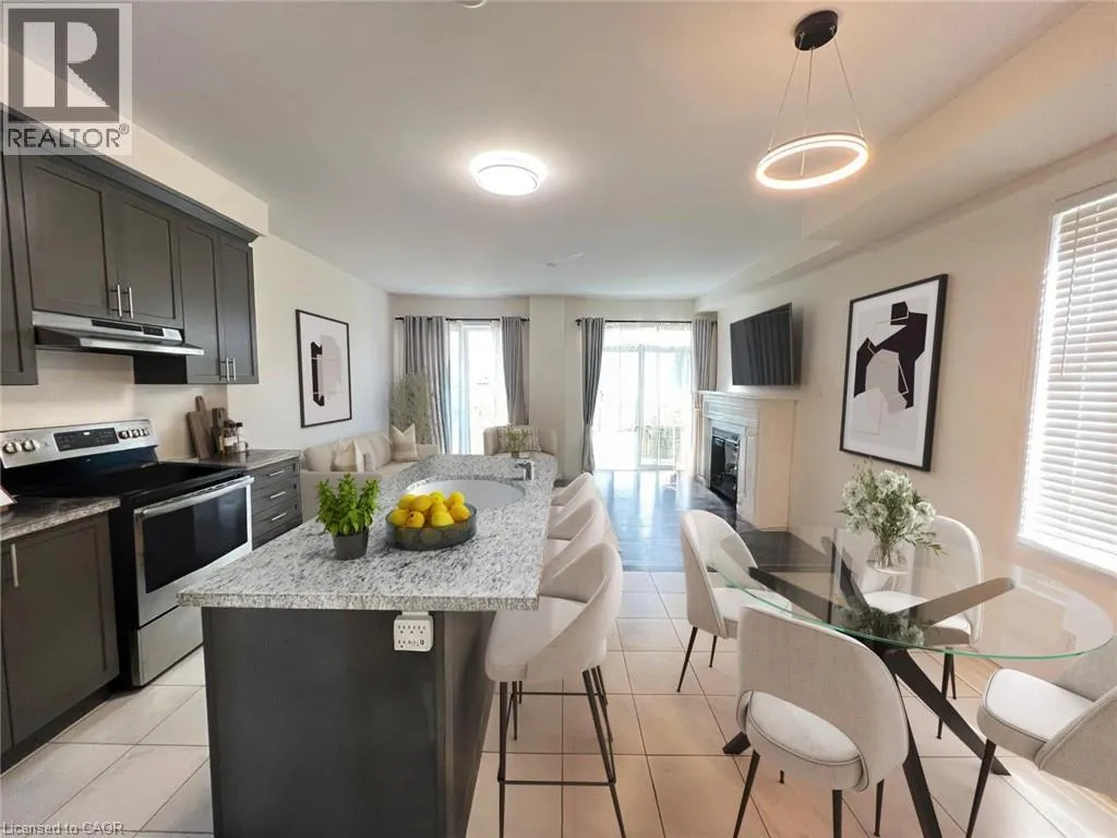 Raymond Rd and Garner Rd E Beautiful stunning ravine lot home built by Rosehaven, Three spacious and bright bedrooms and three bathrooms, this home features a bright and airy layout with 9-foot ceilings on the main floor. New LED ceiling light throughout. The open-concept kitchen and great room showcase beautiful hardwood flooring in the dining and living areas, while the kitchen features sleek modern cabinetry, quartz countertop, and ceramic tile flooring in the eat-in breakfast area. Upstairs, the luxurious master suite includes a standalone tub, a separate standup glass shower, and a walk-in closet. Large windows throughout fill the home with natural light, while the cozy natural gas fireplace and fenced backyard backing onto green space create a serene retreat. Tenant pays $3,200 per month, Great for investors and first time home buyer! This home is ideally located within walking distance to schools and parks, and just minutes from Hwy 403 and the Lincoln M. Alexander Parkway, offering easy access to all amenities. True gem in the area! (id:27476)