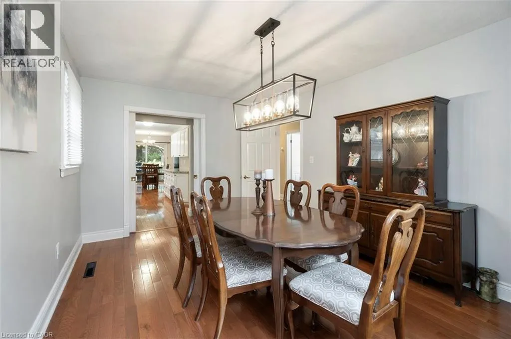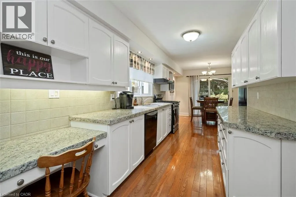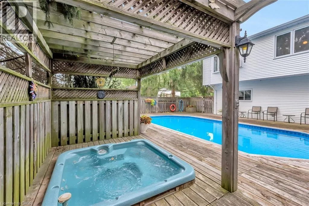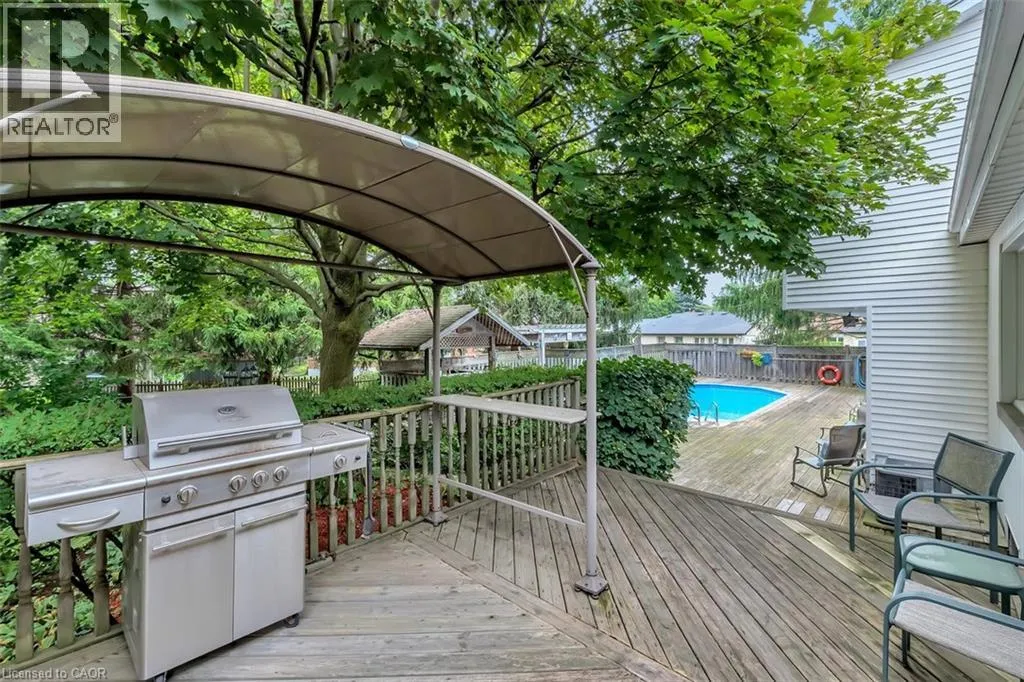 Lloyminn to Terrence Park Drive Prestigious OakHill Location! Don't miss this rare opportunity on the end of a pictursque cul-de-sac in Ancaster. Nestled in along the edge of the Dundas Valley, the OakHill/Clearview neighbourhood has experienced extensive transformation and investment into custom built homes and renovations. With an expansive 215 FT. lot (irregular), #191 Terrence Park Drive is move-in ready exhibiting 4+1 Beds, 3.5 baths with a modern, remodelled basement (2024). The extra deep, double garage for the avid hobbyist allows for workshop, while the backyard welcomes visitors amongst mature trees, on-ground pool, hot tub and deck. With tasteful improvements, this home has been lovingly cared for by the same owner since 1976. Step inside to the oversized breezeway with extensive storage space, purposeful for a versatile mudroom and easily-converted to an office space looking over the backyard. The white eat-in kitchen with granite counters opens directly to the spacious yet cozy family room with built-in cabinetry, wood-burning fireplace, hardwood flooring and views of the rear property. The formal dining room is perfect for hosting larger groups, while main-level laundry is a convenient added bonus. Upstairs, this unique layout allows for three bedrooms to have views of the backyard! The generous primary boasts dual closets and a 4 piece ensuite bath with soaker tub. Two additional bedrooms have updated laminate flooring and a shared, expansive 4 piece bathroom. The fully-finished basement completed in 2024 offers recreational space, nook for a future kitchen, bedroom with egress window, contemporary 3 piece bathroom and ample storage room. The basement is the perfect place to spread out for home office, exercise gym, kids play area, music room and more! Better yet? Hiking trails, groceries, shops, schools, library, splash pad, arts and recreation centres are in walking distance. This idyllic locale at the end of the cul-de-sac is a rare find to create your next forever home! RSA. (id:27476)