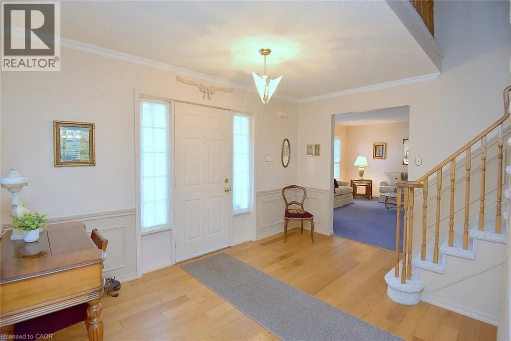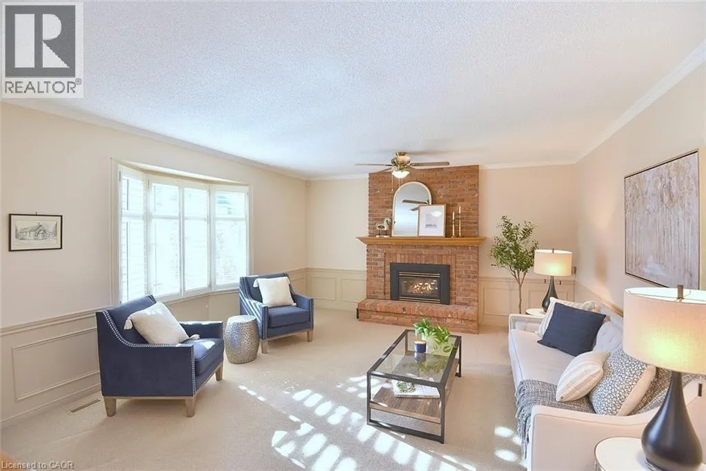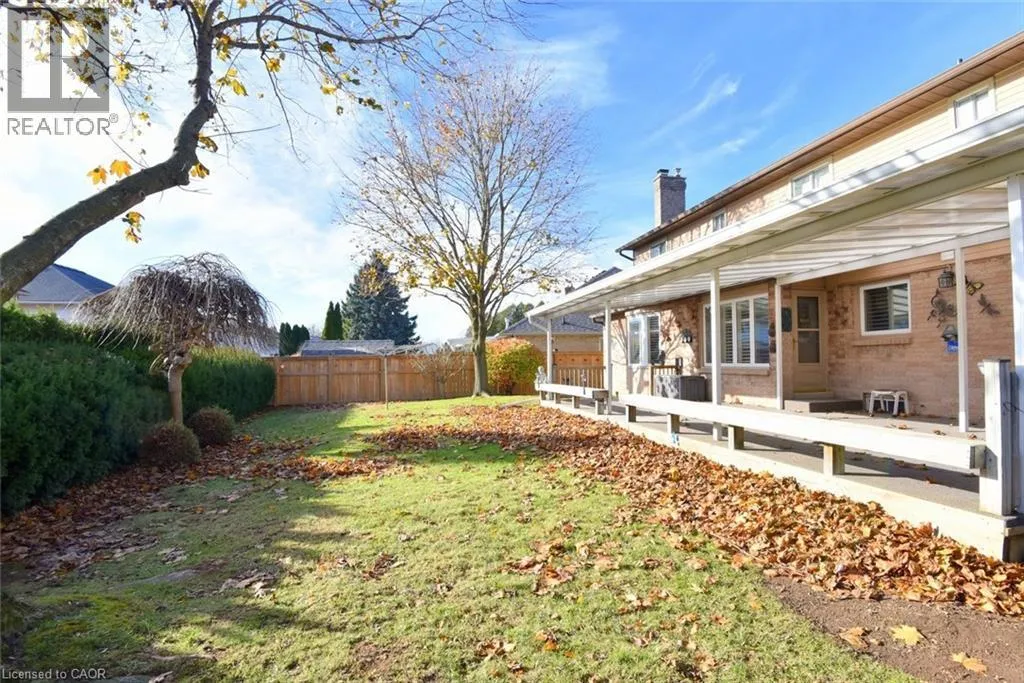 Wilson St to Amberly Blvd Well maintained one owner home in popular Ancaster location close to schools, parks and easy access to the Linc and 403 highway. Traditional 4 bedroom 2.5 bath layout with large principle rooms, ideal for growing family and those who like to entertain. Formal living room and separate dining room ideal for entertaining. Good size kitchen/dinette with loads of cupboards overlooking sunken family room with cozy gas fireplace. Direct access to sprawling covered deck 16' x 32' ideal for outdoor dining or relaxing rain or shine! Main floor laundry and convenient 2 pc bath. The upper level includes a large primary bedroom with full ensuite bath with step in shower, walk in closet; plus 3 additional bedrooms and main bath. Full high unfinished basement offers endless potential, ready for your custom touch, whether for added living space, home gym or play area for the kids! Set on professional landscaped lot complete inground sprinkler system front and back! (id:27476)