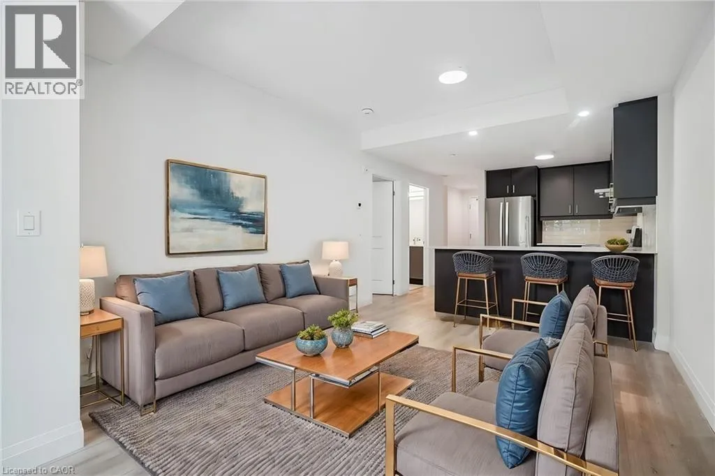 403 Exit onto Wilson St W Discover Contemporary Living in Ancaster Village! This stunning 1 BR + den condo offers modern elegance & convenience in one of the most sought-after locations. Step into a bright, open-concept living space adorned with contemporary finishes, perfect for both relaxation & entertaining. The den provides flexible space, ideal for a home office or guest room. Enjoy your morning coffee on the private balcony with cozy seating, or take advantage of the building's exceptional amenities, including a stylish party room, media room, & a rooftop terrace with breathtaking views. Location is everything & this condo doesnât disappoint! You're just steps away from boutique shops, fine dining, grocery stores, & public transit, with easy access to the 403 & Linc for seamless commuting. Plus, enjoy the added convenience of underground parking & a storage locker, providing all the essentials for a stress-free lifestyle. (id:27476)