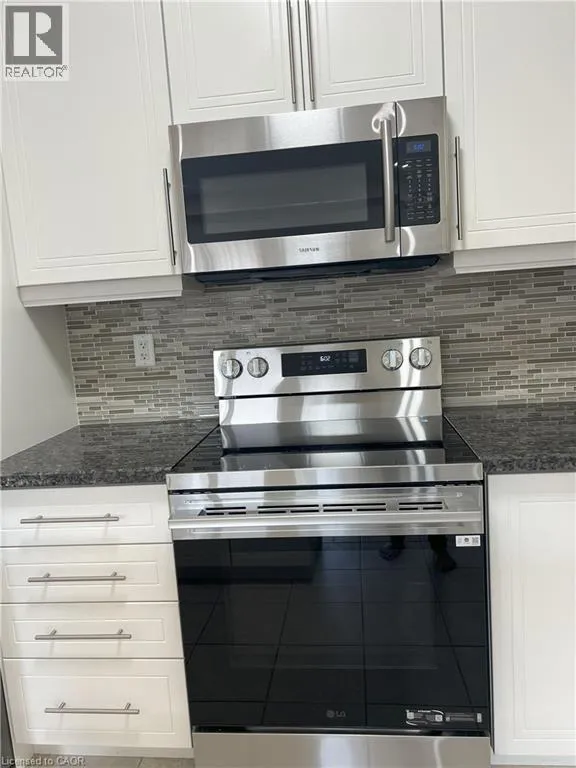 Garner to John Frederick if coming from the East Executive end unit townhome in Ancaster! This spacious home offers a bright open-concept layout with oversized windows and plenty of natural light throughout. The main level features a modern kitchen with granite countertops, brand new fridge and stove, a large island and hardwood floors, all complimented by soaring 9 ft ceilings. Upstairs, you'll find 3 bedrooms, including a primary suite with ensuite bath, plus the convenience of a second-floor laundry room. Tucked away in a quiet and family-friendly neighborhood, just minutes from schools, shopping, restaurants, Hamilton Golf & Country Club, Highway 403 & transit to McMaster & Redeemer Universities. Note: Long driveway parking for 2 cars and the garage (total 3 parking spaces). Fully fenced spacious back yard. rent +all Utilities +hot water tank rental. requires Rental application ,single Key ,Id ,job letters, 4 pay stabs, ( Single Key will be done at the end just to verify all information.) (id:27476)