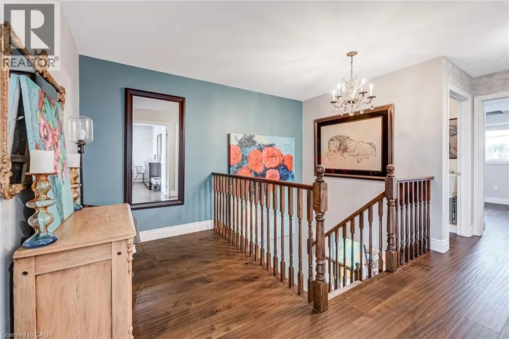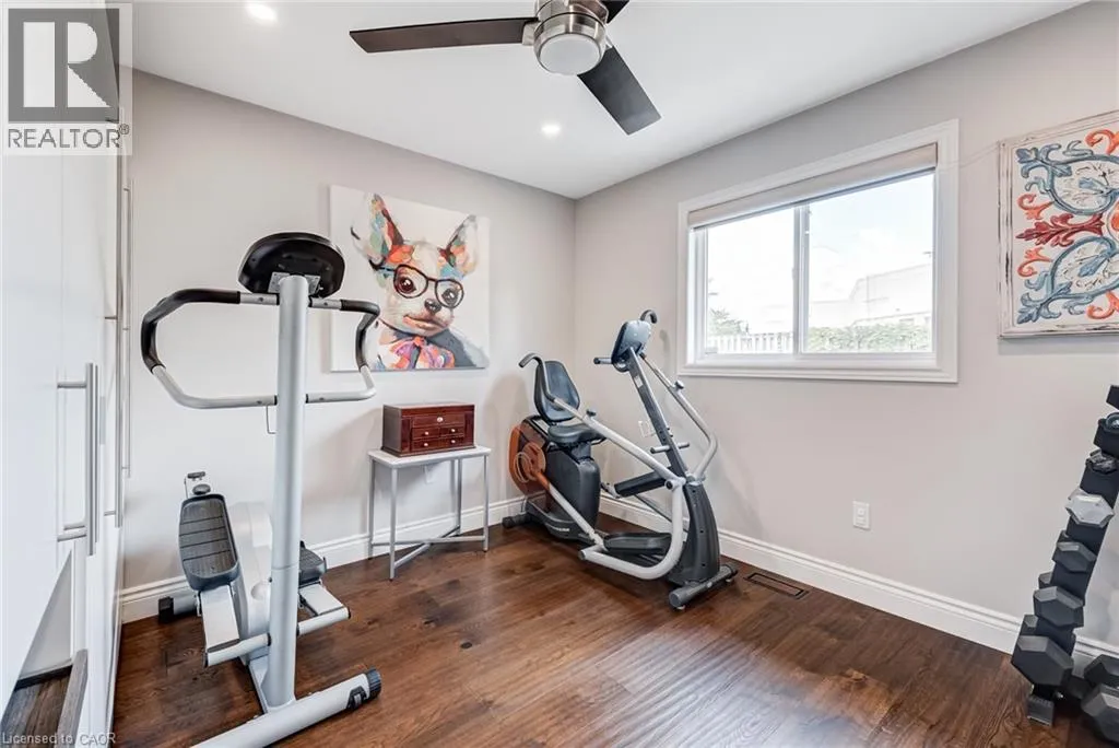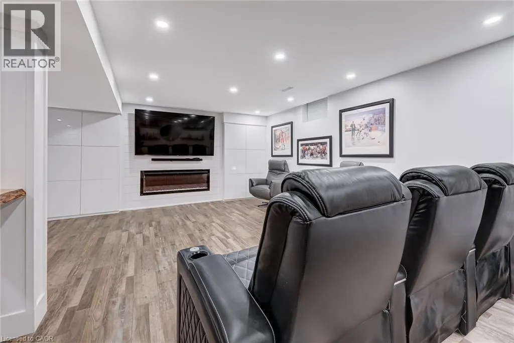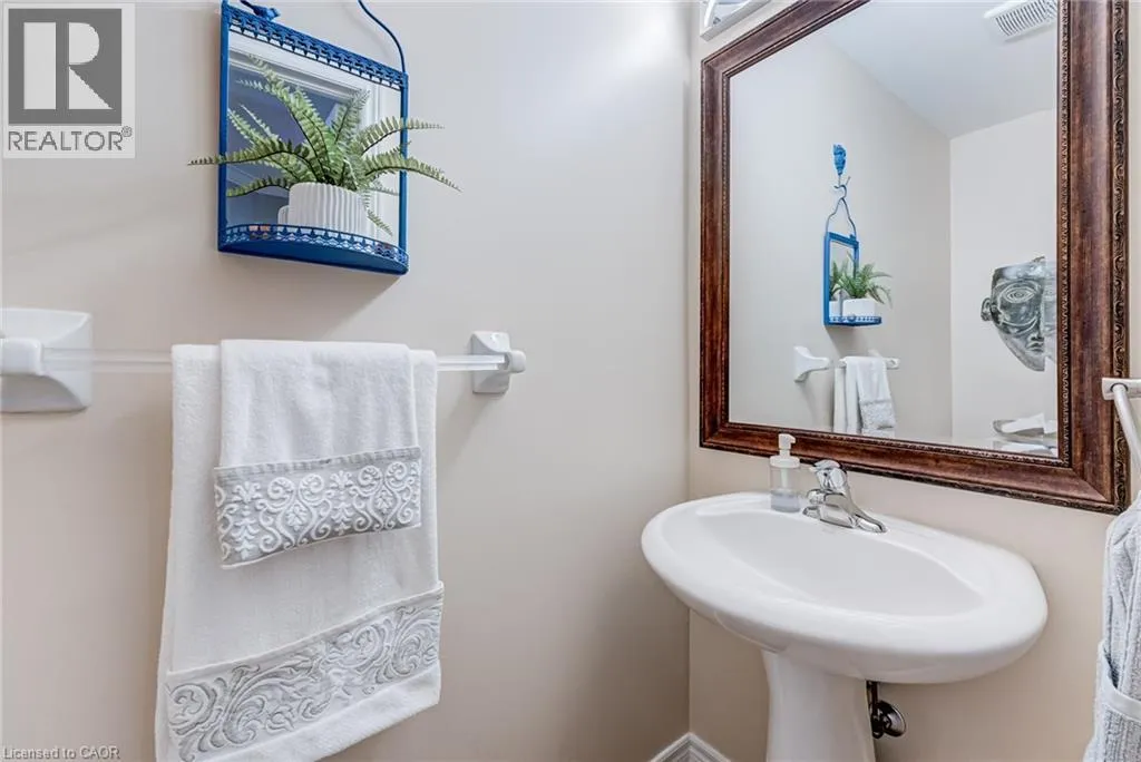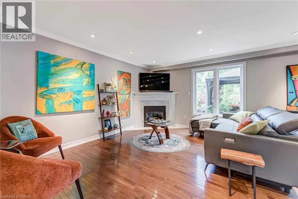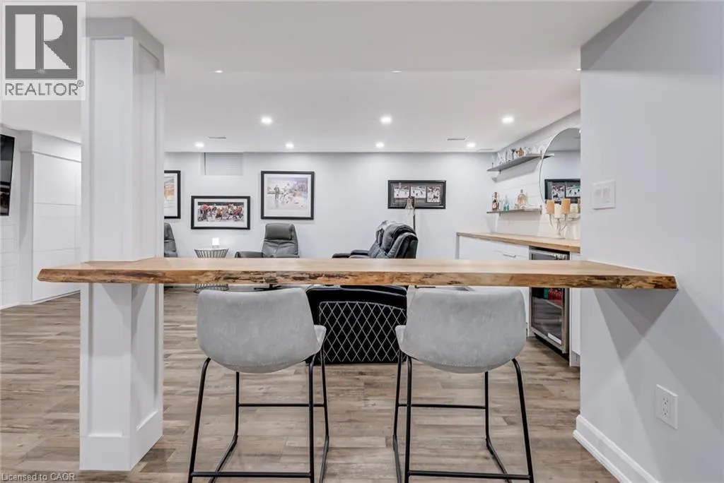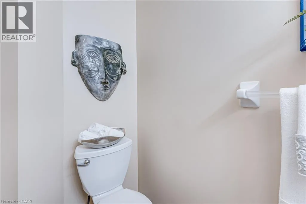 West from Stone Church Rd Gorgeous, professionally updated freehold townhome across from a Conservation Area with a number of paths and ponds for the enjoyment of nature lovers and dog enthusiasts. There is 1890 sq ft on the main and second floors, and almost 2700 sq ft of finished living space total. Inviting backyard with a deck, gazebo, 5-person hot tub, and lovely, mature greenery. Open concept main floor features hardwood flooring in the large living room with a gas fireplace, and in the dining room there are sliding doors to a deck. A stunning kitchen includes a gas stove, granite counter tops, a gorgeous tile backsplash and a breakfast/entertainment bar. The finished basement features luxury vinyl flooring, built-in custom wall-to-wall cupboards and drawers with bar fridge and a wet bar/refreshment area. Cabinetry surrounds an area for a wall mounted TV of up to an 85â with electric fireplace below. The second floor includes feature décor walls, a loft area, engineered hardwood throughout, custom blinds and a convenient laundry room. The spacious primary bedroom has a large 4-piece ensuite and walk-in closet. The main bath has a walk-in shower and a modern, free-standing vanity with 2 under mount sinks. The bedroom that is used as an exercise room has a Murphy bed offering a multi-purpose room including a guest room, exercise room or office. The Murphy bed has a storage cabinet and a pull out side table. Insulated garage is ideal for hobbyists in winter. Updates include AC/Furnace/Roof, 2 bathrooms, kitchen, basement, and pot lights throughout 3 levels including bedroom closets. Walk to amenities, shopping and restaurants. Two-minute drive to a large dog park. Close to highway access. This home is turnkey so just move in and enjoy all that this home and area have to offer! (id:27476)