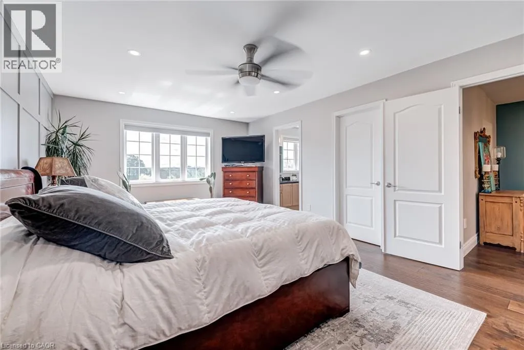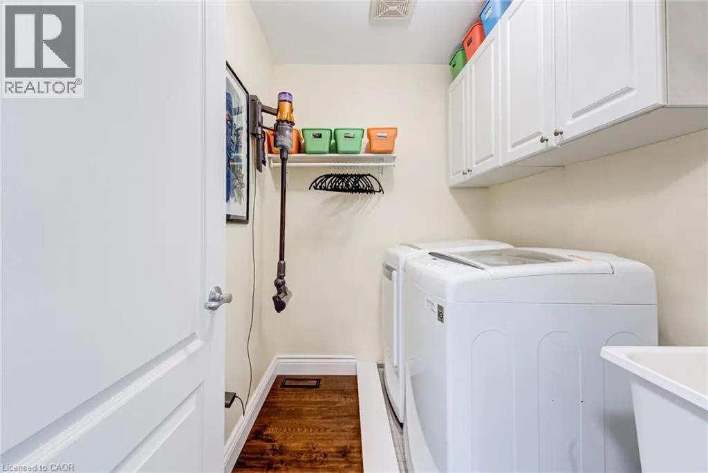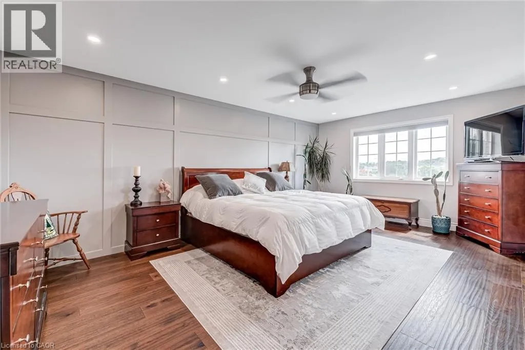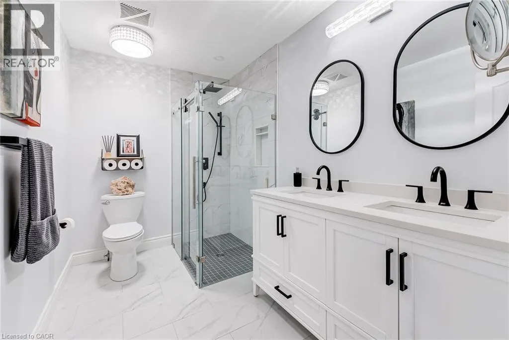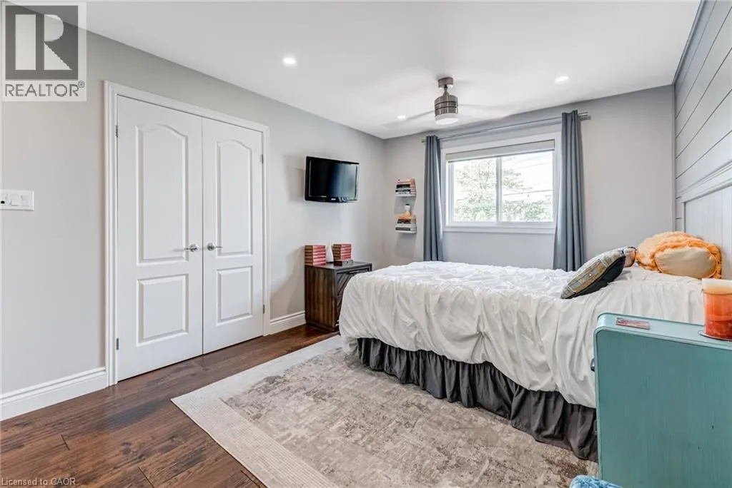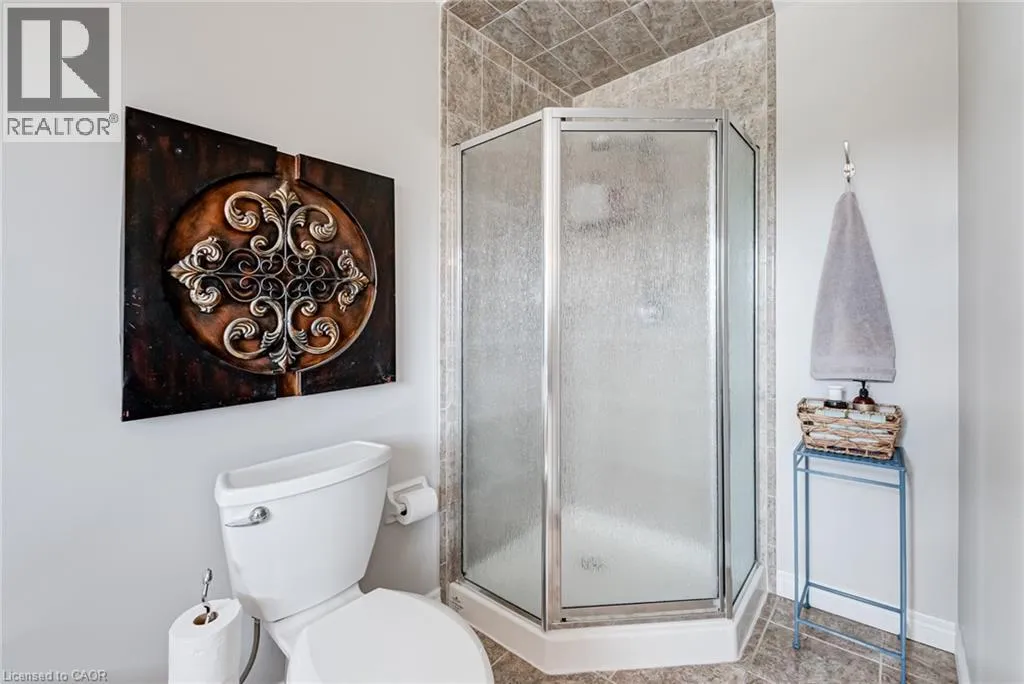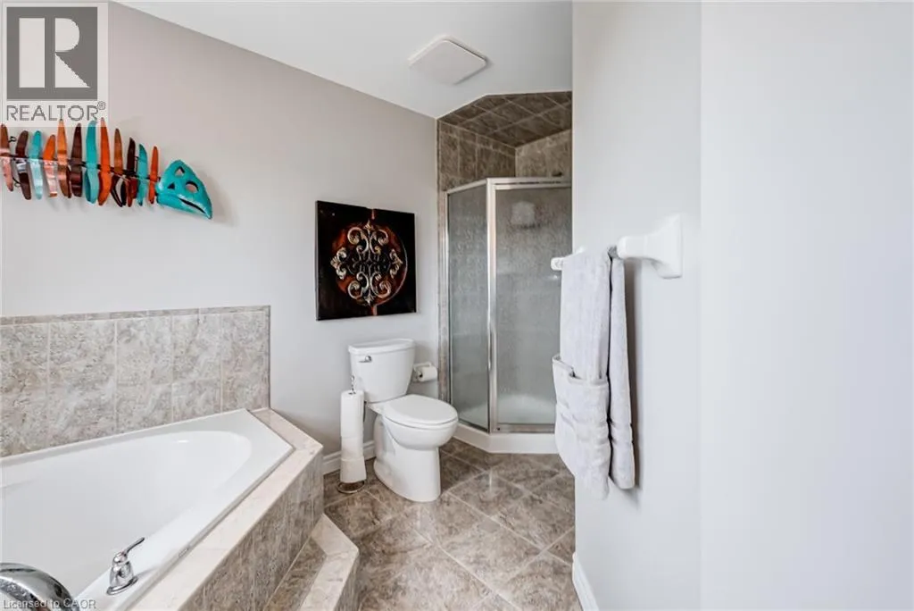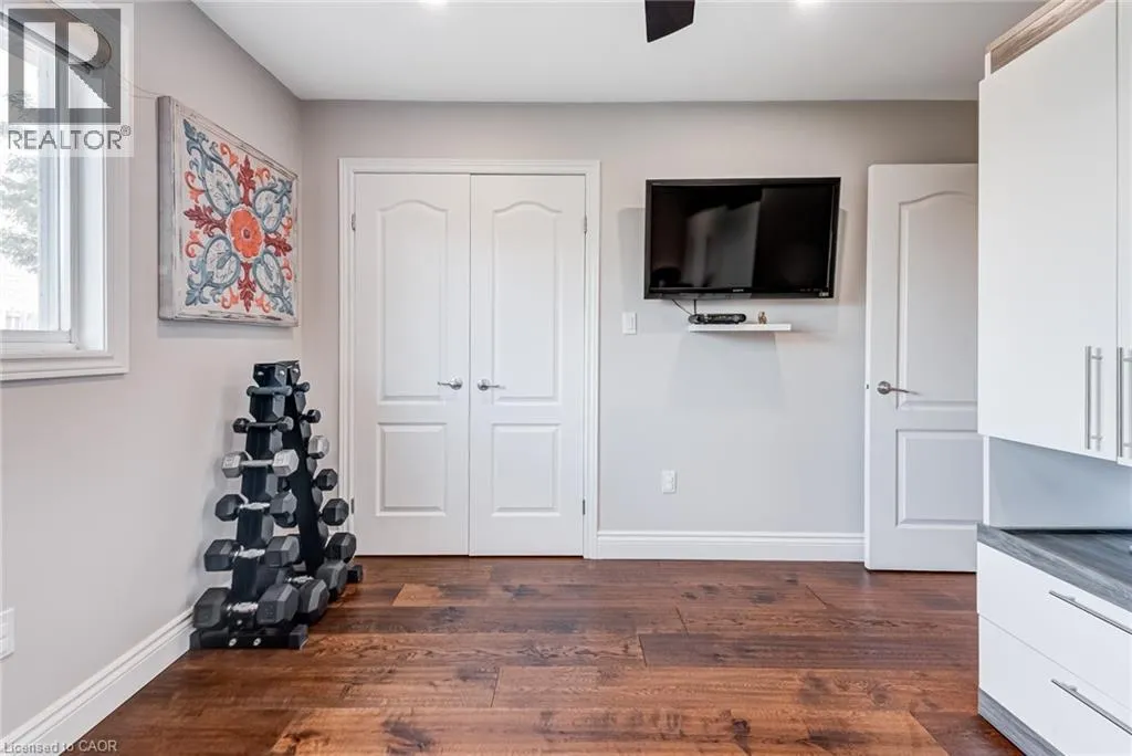 West from Stone Church Rd Gorgeous, professionally updated freehold townhome across from a Conservation Area with a number of paths and ponds for the enjoyment of nature lovers and dog enthusiasts. There is 1890 sq ft on the main and second floors, and almost 2700 sq ft of finished living space total. Inviting backyard with a deck, gazebo, 5-person hot tub, and lovely, mature greenery. Open concept main floor features hardwood flooring in the large living room with a gas fireplace, and in the dining room there are sliding doors to a deck. A stunning kitchen includes a gas stove, granite counter tops, a gorgeous tile backsplash and a breakfast/entertainment bar. The finished basement features luxury vinyl flooring, built-in custom wall-to-wall cupboards and drawers with bar fridge and a wet bar/refreshment area. Cabinetry surrounds an area for a wall mounted TV of up to an 85â with electric fireplace below. The second floor includes feature décor walls, a loft area, engineered hardwood throughout, custom blinds and a convenient laundry room. The spacious primary bedroom has a large 4-piece ensuite and walk-in closet. The main bath has a walk-in shower and a modern, free-standing vanity with 2 under mount sinks. The bedroom that is used as an exercise room has a Murphy bed offering a multi-purpose room including a guest room, exercise room or office. The Murphy bed has a storage cabinet and a pull out side table. Insulated garage is ideal for hobbyists in winter. Updates include AC/Furnace/Roof, 2 bathrooms, kitchen, basement, and pot lights throughout 3 levels including bedroom closets. Walk to amenities, shopping and restaurants. Two-minute drive to a large dog park. Close to highway access. This home is turnkey so just move in and enjoy all that this home and area have to offer! (id:27476)