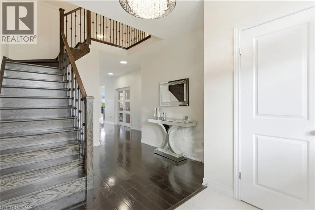 Stonehenge Dr to Raymond Rd to Irwin Ave Welcome to this stunning 2-storey detached home located in the highly sought-after Ancaster Meadowlands community. Offering 2,533 sq. ft. of beautifully designed living space, this residence combines elegance, functionality, and modern comfort. The main floor welcomes you with a grand foyer and 9-foot ceilings, setting the tone for the rest of the home. It features a main floor office, a powder room and a mudroom with convenient garage access. The chef-inspired kitchen boasts quartz countertops, upgraded stainless steel appliances, and modern touch-to-open cabinetry, flowing seamlessly into a bright dining area and open living spaceâperfect for entertaining. Rich hardwood and modern tile flooring enhance the main levelâs refined aesthetic. Upstairs, youâll find four spacious bedrooms and an open loft area ideal for a reading nook or study. The primary suite is a luxurious retreat complete with a walk-in closet and a spa-like ensuite. One of the additional bedrooms also features its own walk-in closet, while all rooms offer generous space and natural light. The unfinished basement provides endless potential, offering a cold cellar and a rough-in for a 2-piece bath, ready for your personal touch. Outside, enjoy the private fenced backyard, with a green laneway buffer providing extra privacy from rear neighbours. Located close to top-rated schools, scenic parks, major highways, shopping, and everyday amenities, this home is the perfect blend of luxury and convenience in one of Ancasterâs most desirable neighbourhoods. (id:27476)