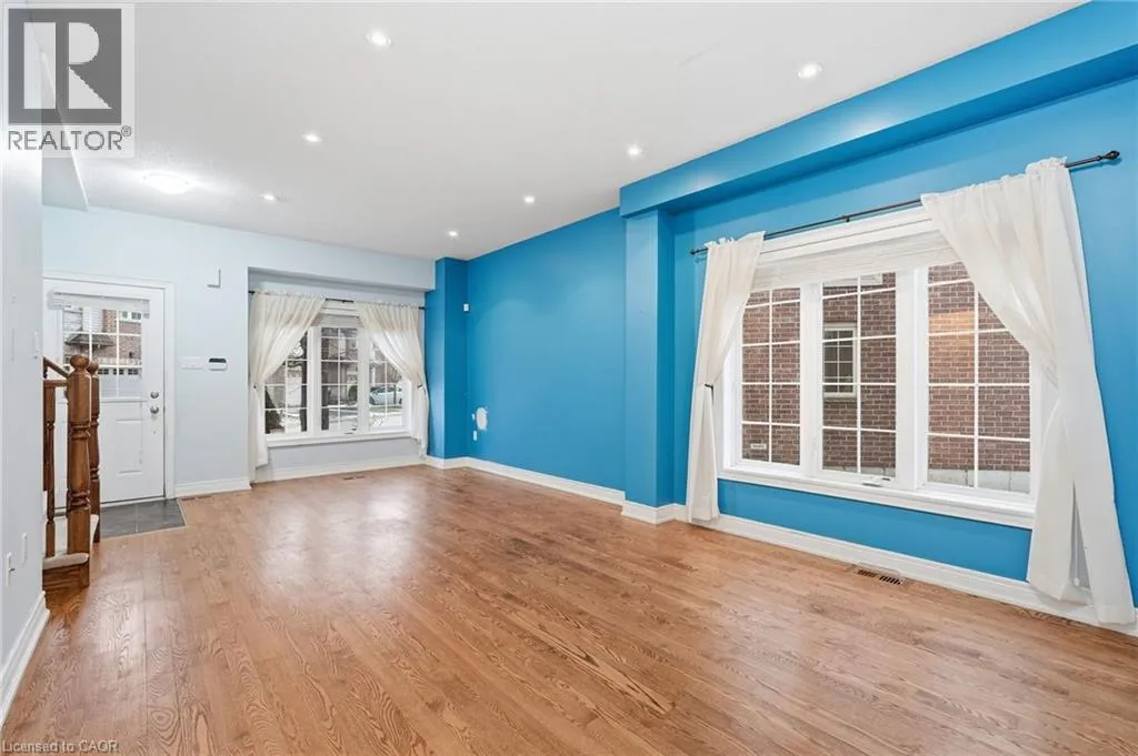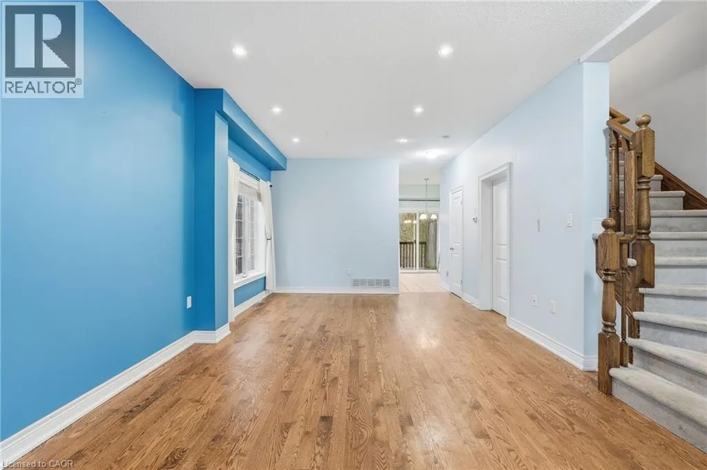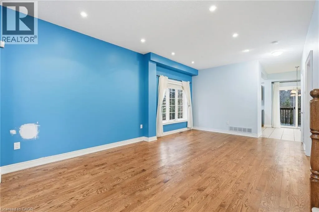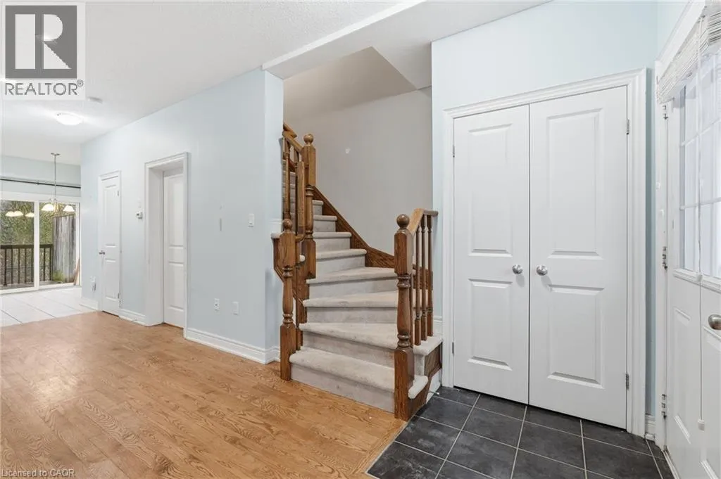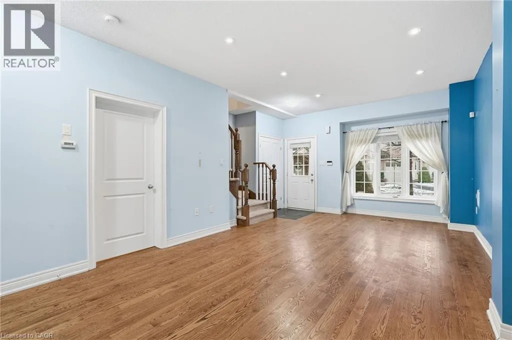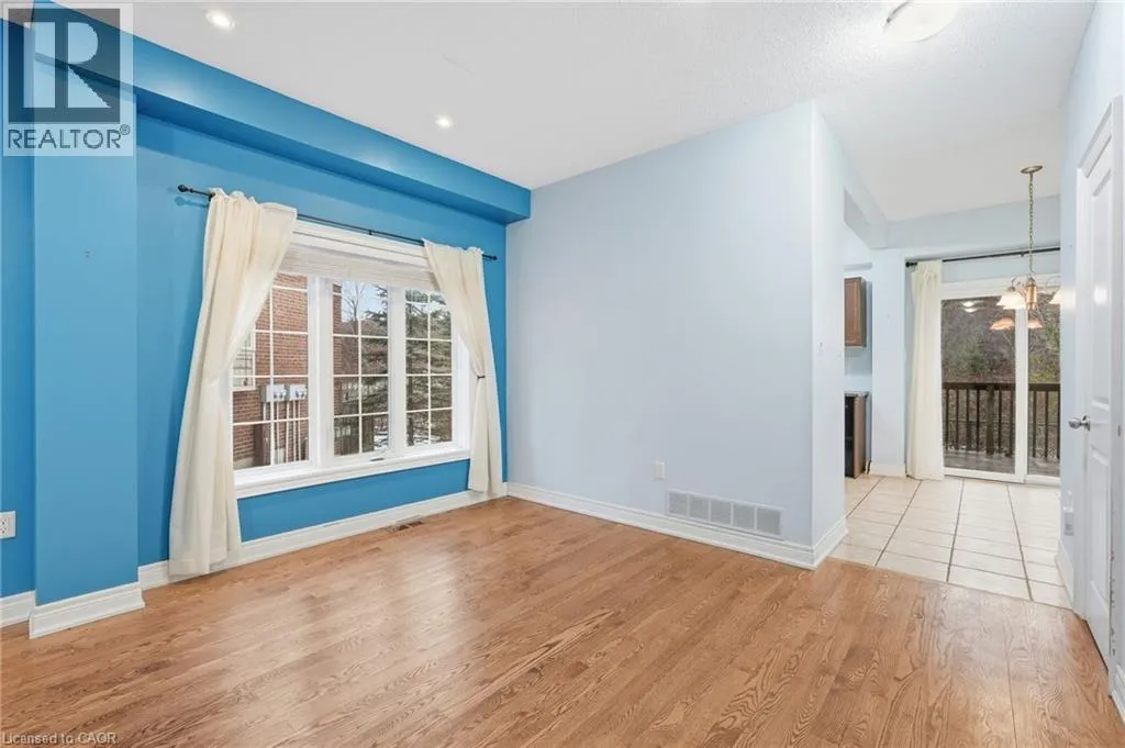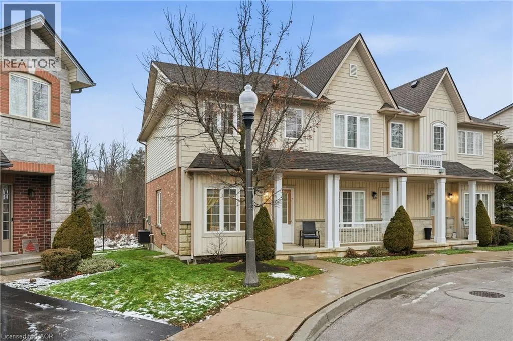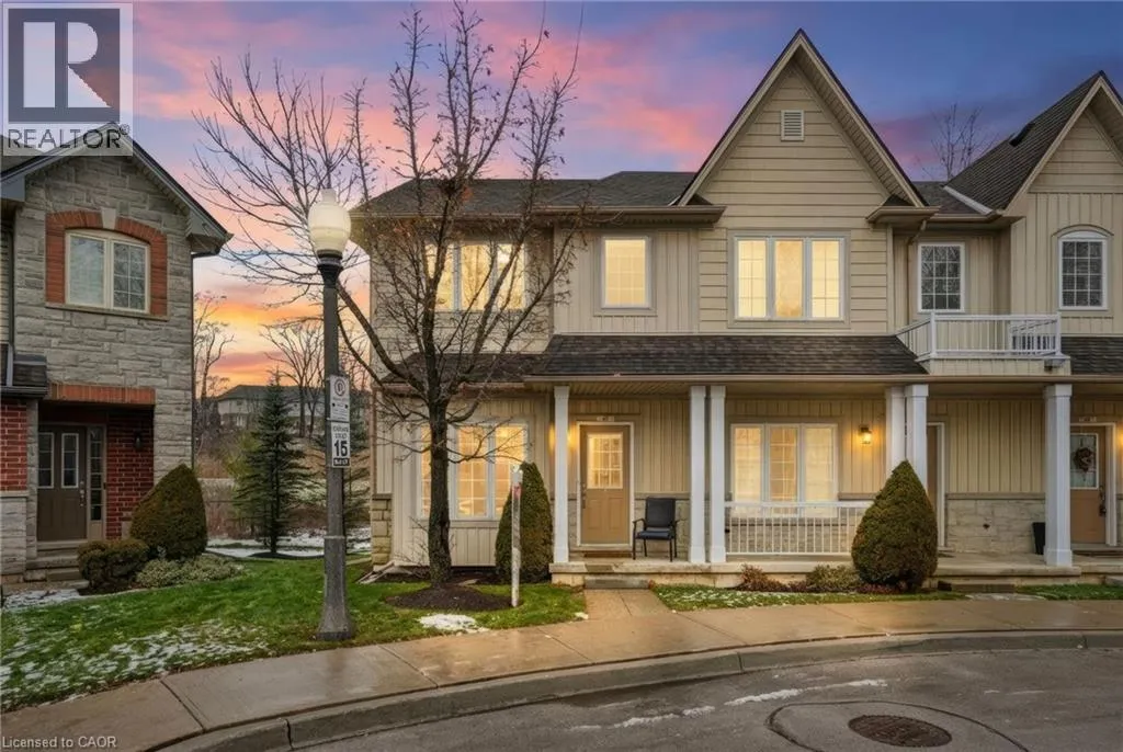 Shaver to Wilson to Liddycoat Beautifully built by Marz Homes, this approximately 1,155 sq. ft. open-concept end-unit townhome backs onto serene, treed green space, offering both privacy and picturesque views. The main level showcases a bright and inviting living room highlighted by oak hardwood flooring, pot lights, and 9-foot ceilings, seamlessly flowing into the eat-in kitchen with modern maple cabinetry and a convenient powder room. Upstairs, youâll find two spacious, sun-filled bedrooms, each with walk-in closets, and a well-appointed four-piece bathroom. The primary bedroom enjoys a stunning treetop view, creating a peaceful retreat. Additional features include concrete block separation between units for enhanced soundproofing, central air conditioning, central vacuum, a 3-piece rough-in, window coverings, and a deck off the kitchen overlooking the green space. A detached garage and an additional parking space complete the package. Ideally located in a well-maintained, boutique complex just steps to downtown Ancaster amenities, shopping, and quick access to Highway 403. RSA. (id:27476)
