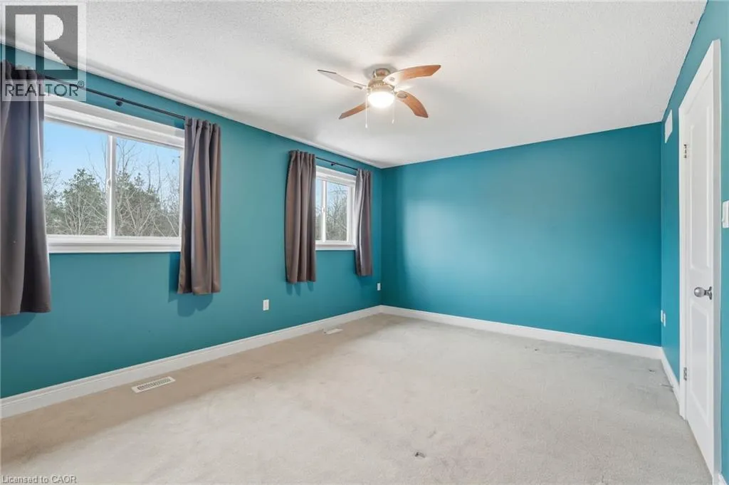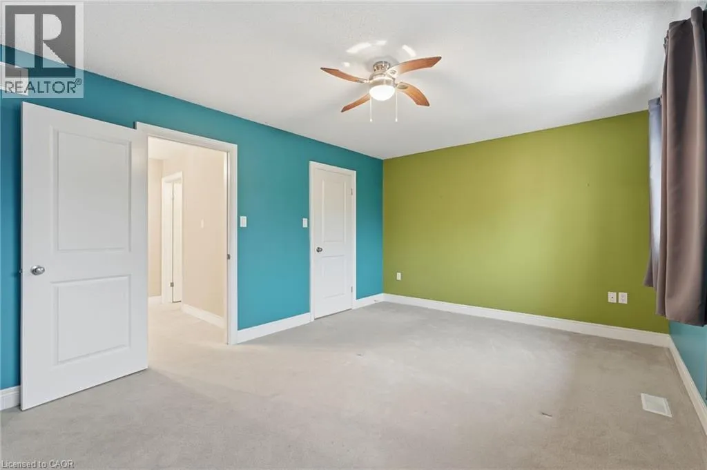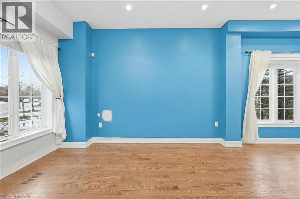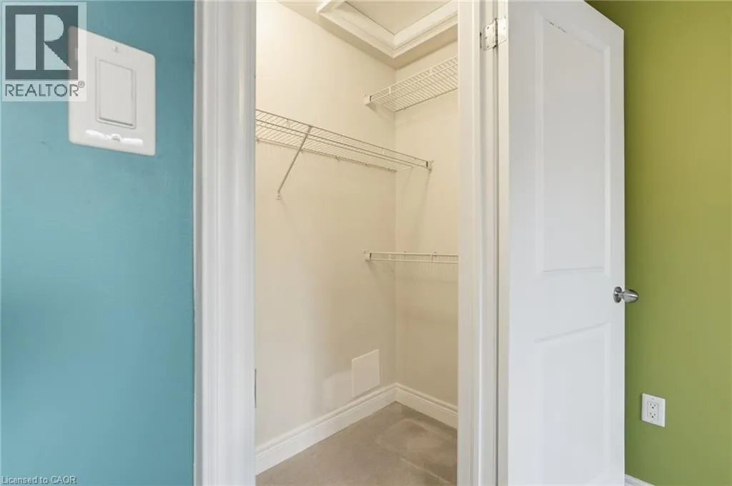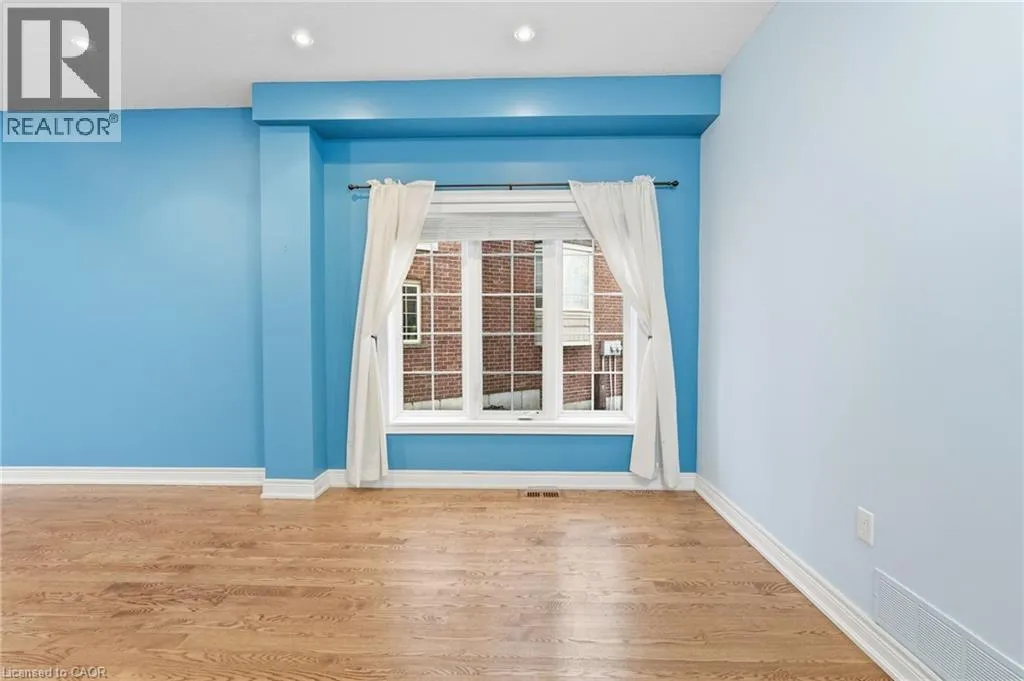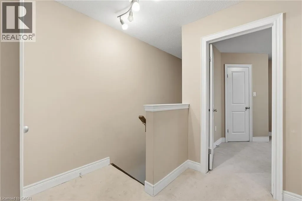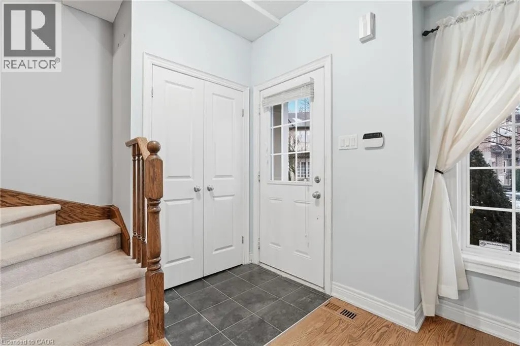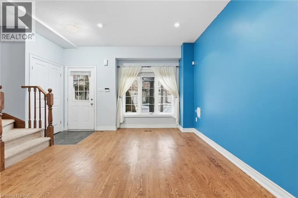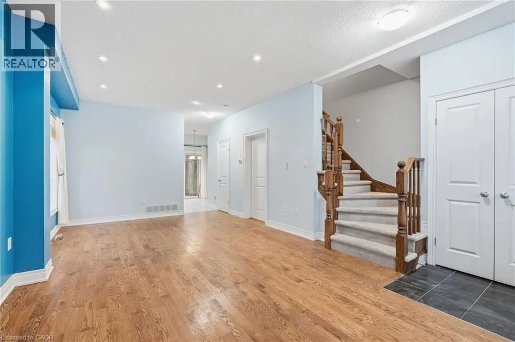 Shaver to Wilson to Liddycoat Beautifully built by Marz Homes, this approximately 1,155 sq. ft. open-concept end-unit townhome backs onto serene, treed green space, offering both privacy and picturesque views. The main level showcases a bright and inviting living room highlighted by oak hardwood flooring, pot lights, and 9-foot ceilings, seamlessly flowing into the eat-in kitchen with modern maple cabinetry and a convenient powder room. Upstairs, youâll find two spacious, sun-filled bedrooms, each with walk-in closets, and a well-appointed four-piece bathroom. The primary bedroom enjoys a stunning treetop view, creating a peaceful retreat. Additional features include concrete block separation between units for enhanced soundproofing, central air conditioning, central vacuum, a 3-piece rough-in, window coverings, and a deck off the kitchen overlooking the green space. A detached garage and an additional parking space complete the package. Ideally located in a well-maintained, boutique complex just steps to downtown Ancaster amenities, shopping, and quick access to Highway 403. RSA. (id:27476)