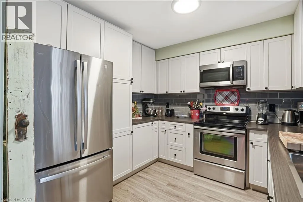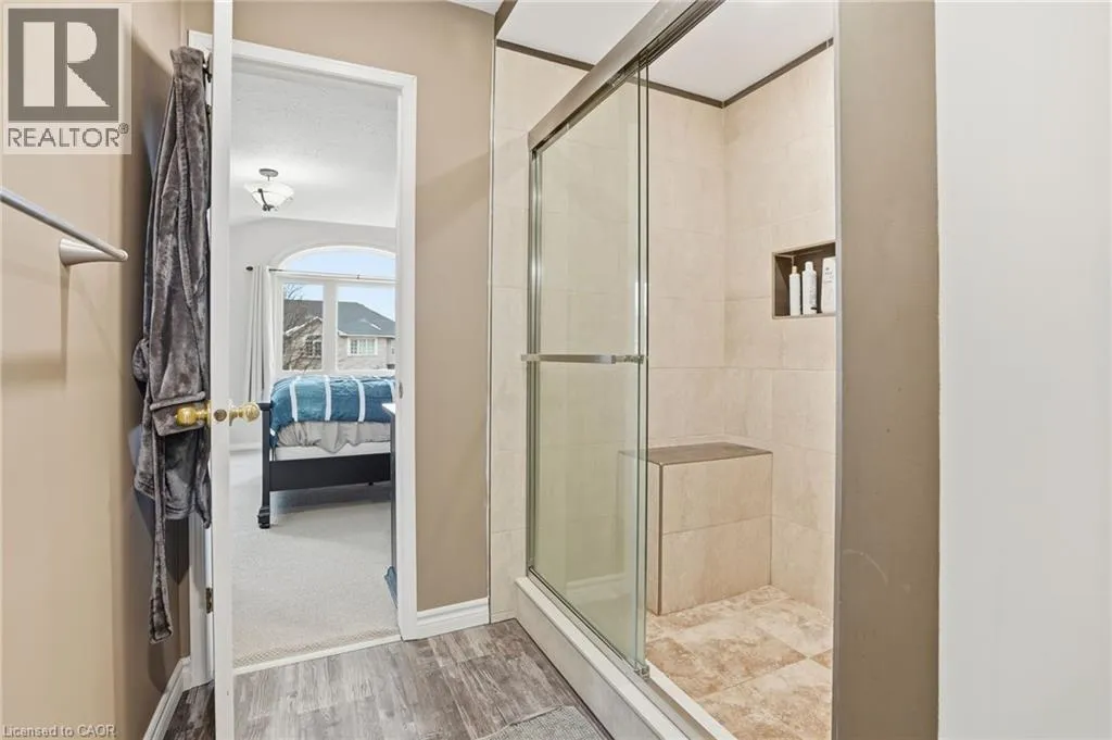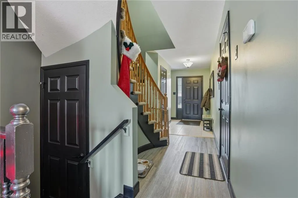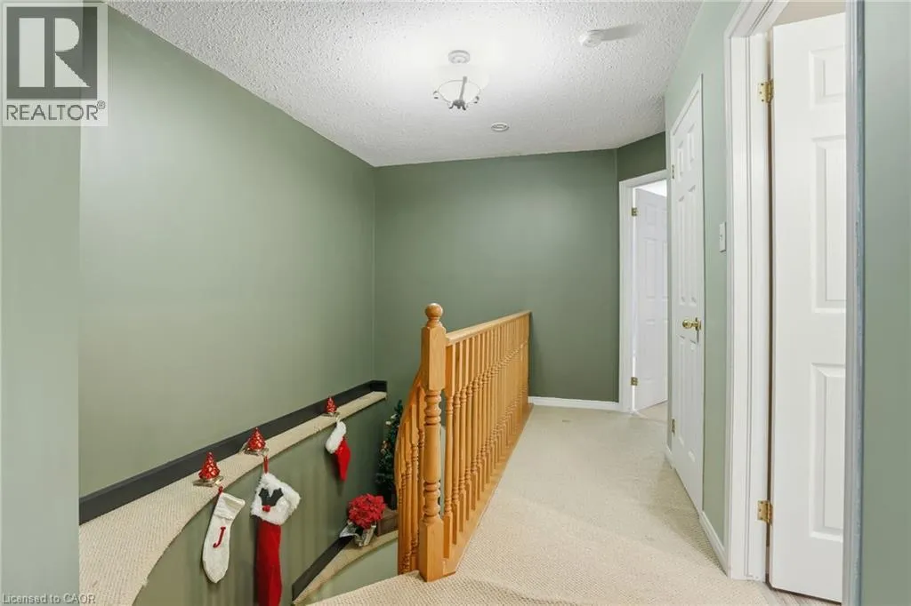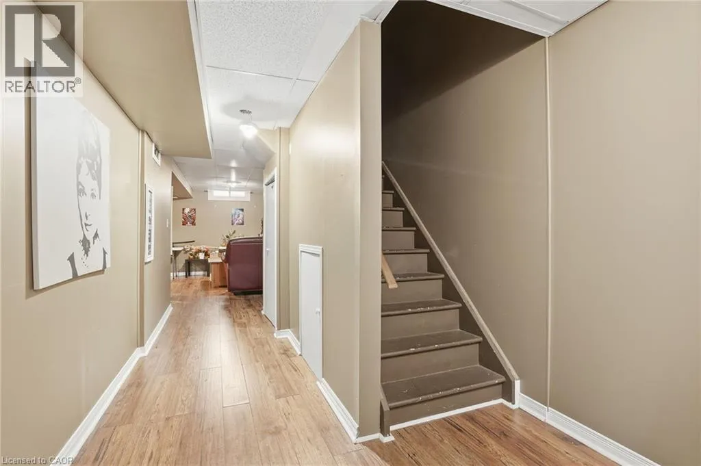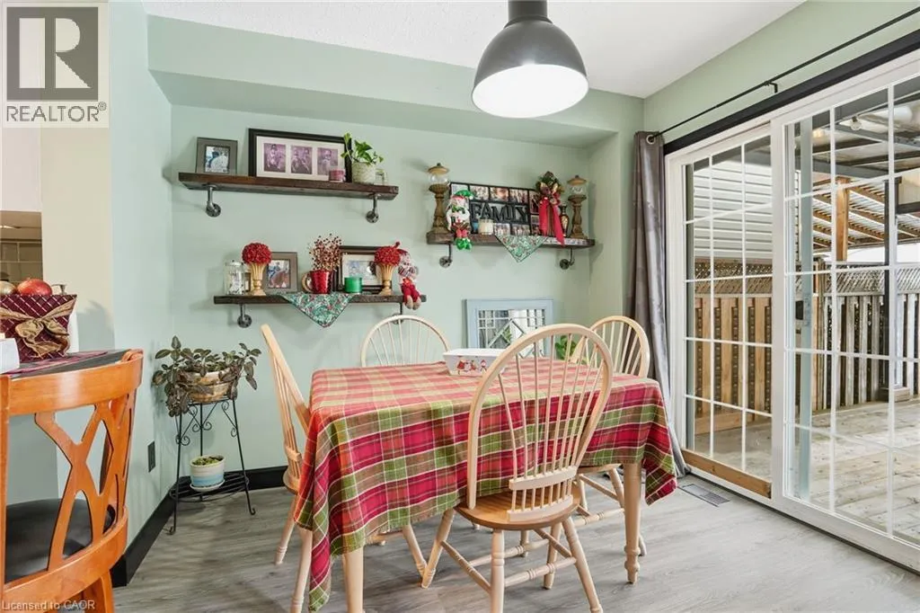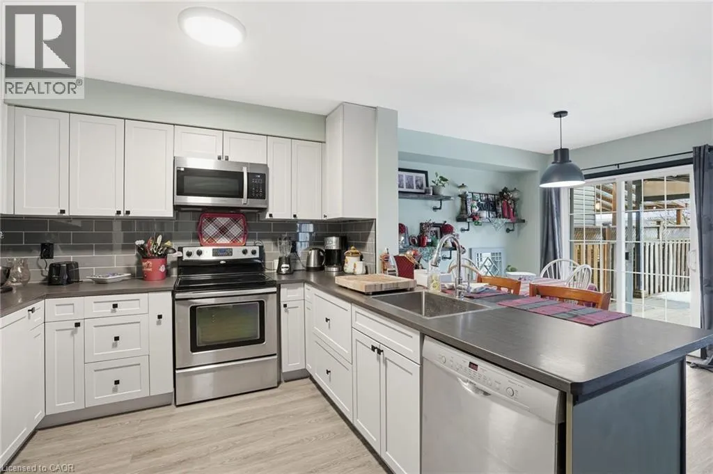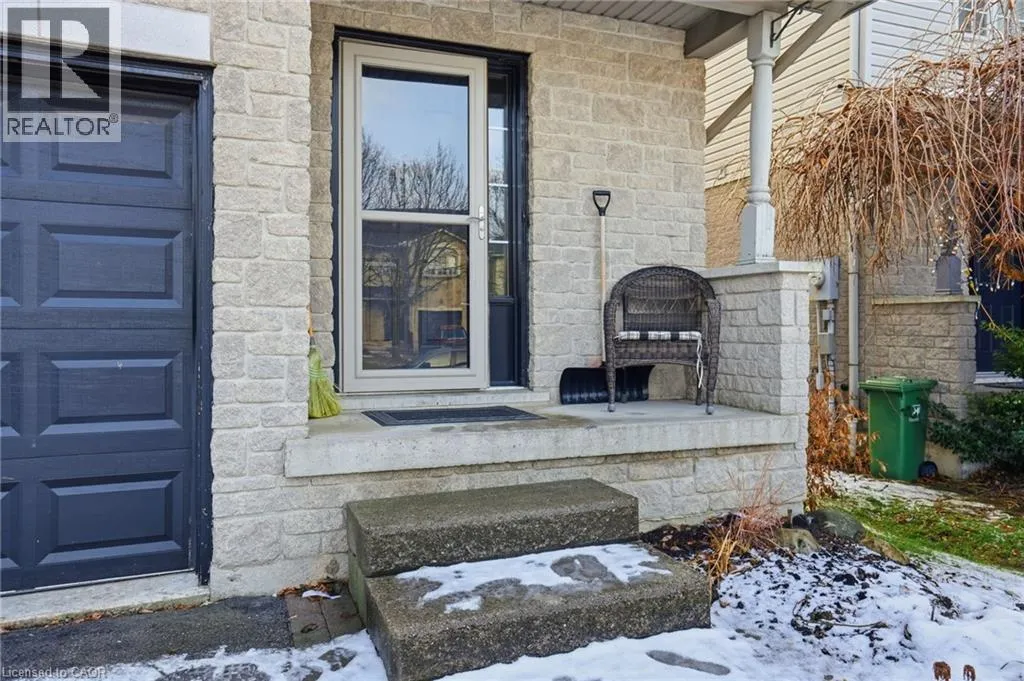 Turn right at the 1st cross street onto Derbyshire St, Turn left on Foxborough Dr Located in a prime Ancaster neighbourhood, this end-unit townhome offers exceptional convenience with quick highway access and nearby shopping. The well-designed layout features 3 bedrooms and 2 bathrooms, enhanced by an extra side window that fills the home with natural light. The spacious upper-level bathroom includes a soaker tub and separate shower with ensuite privilege. A finished basement provides additional living space, while the dining room offers a walkout to a fully fenced yard with a dedicated deck areaâideal for outdoor enjoyment. Curb appeal is highlighted by a stone front façade, and all appliances are included for added value and ease of move-in. (id:27476)
