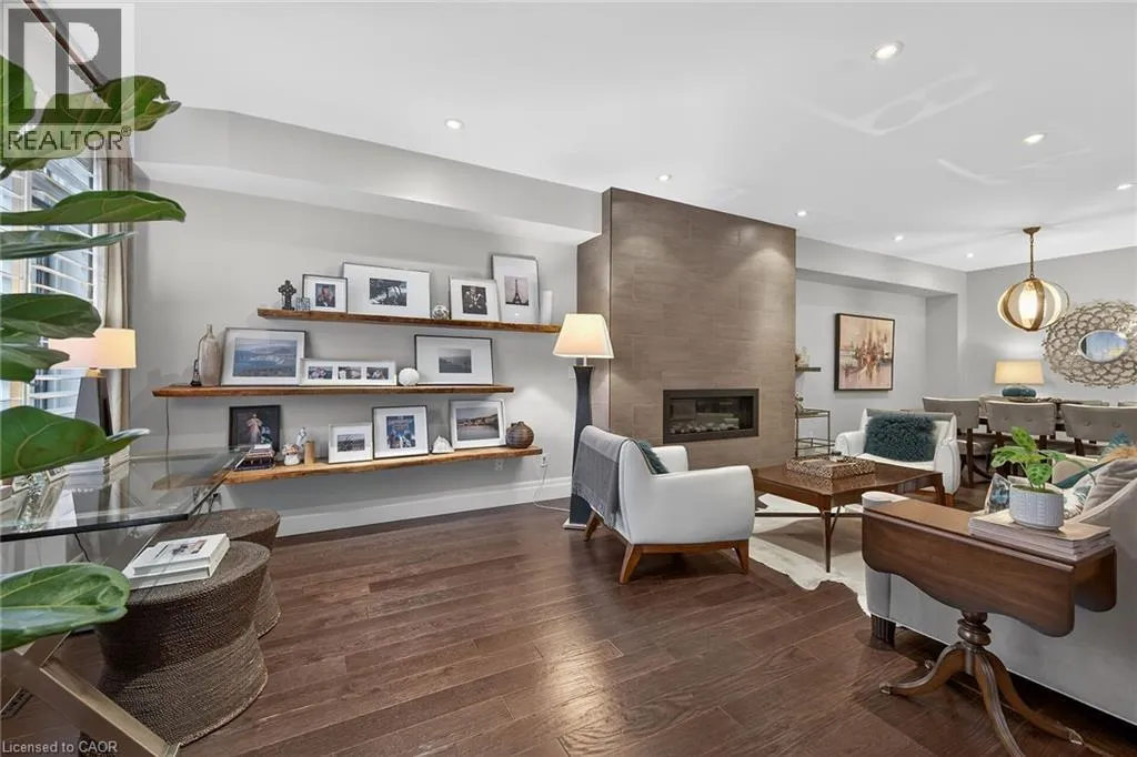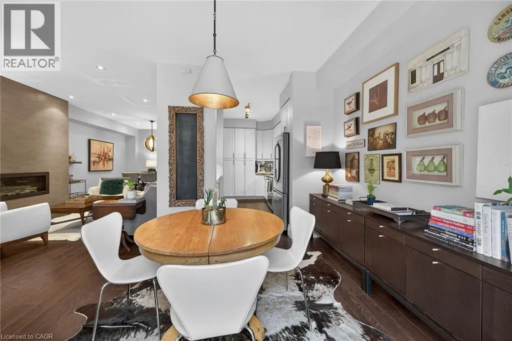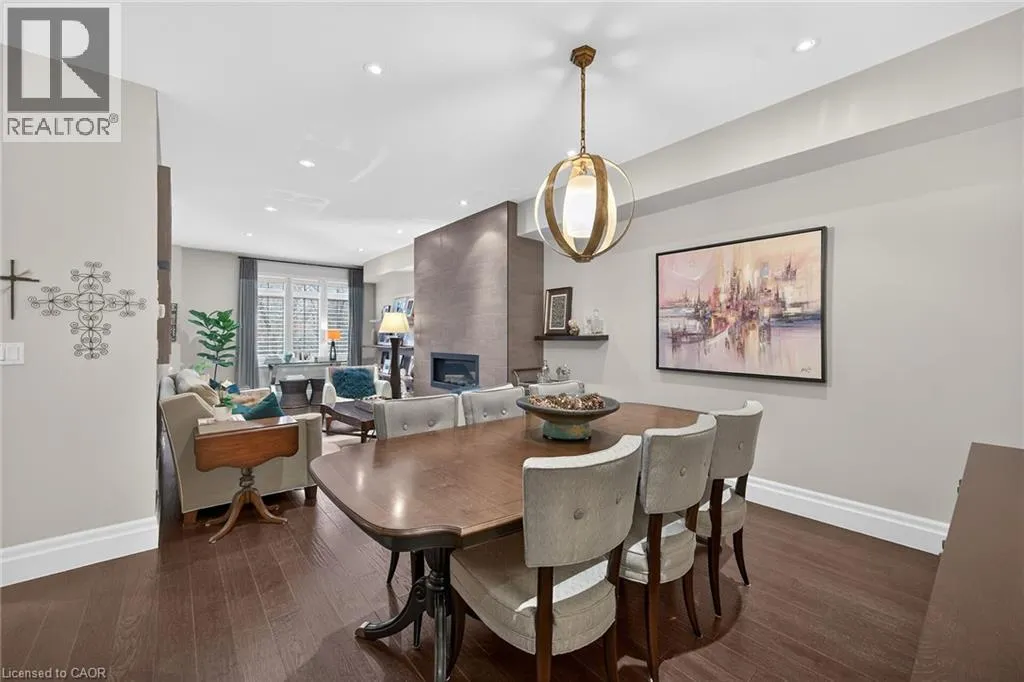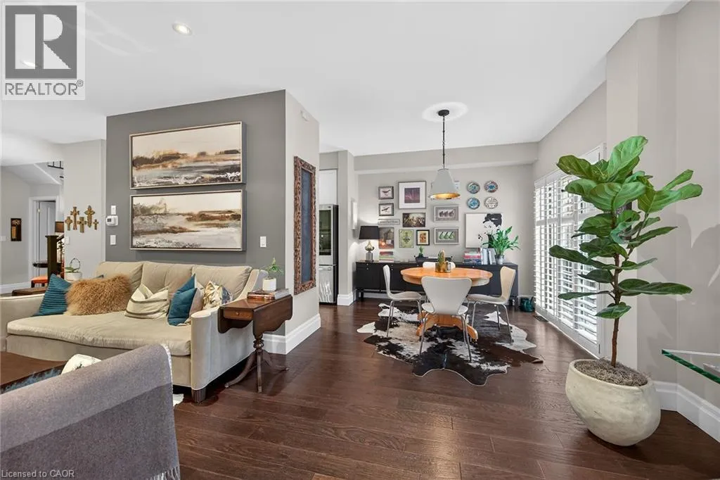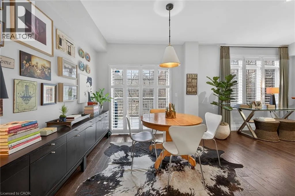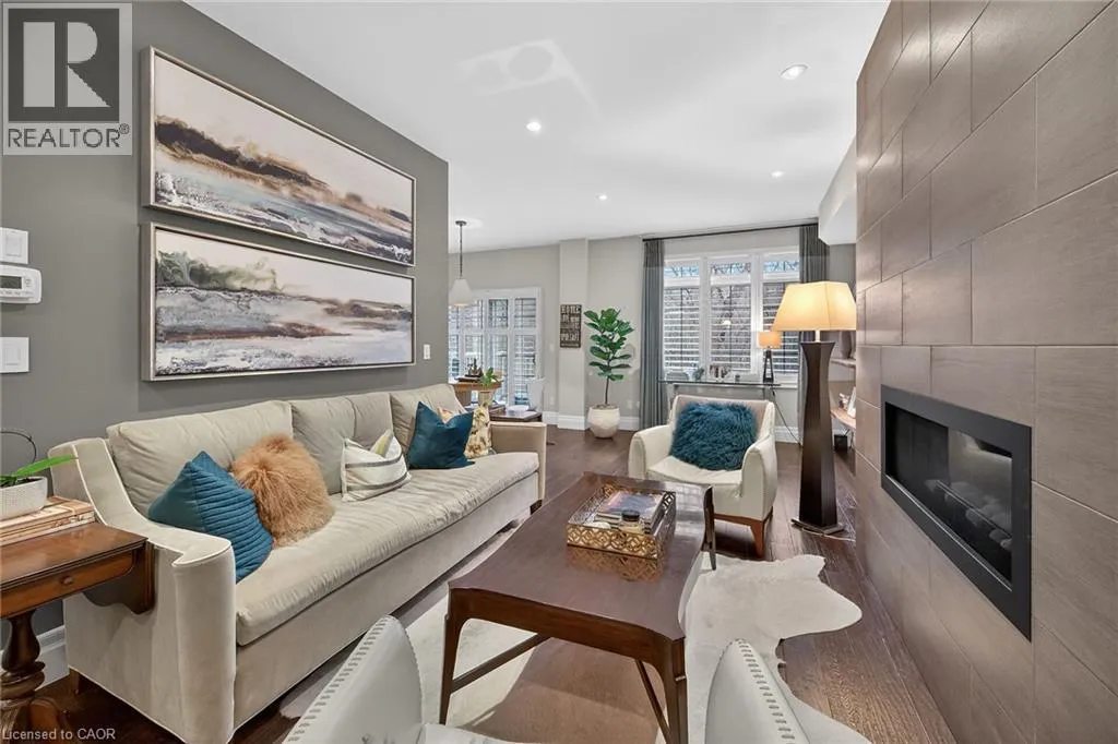 Wilson St to Sulphur Springs Coveted location on Sulphur Springs Road. Stroll to olde town and all amenities, while enjoying the peaceful, serene backdrop of nature. This town manor has been tastefully & professionally renovated & upgraded. From the sleek bright kitchen, the statement gas f/p in the liv room, staircase, engineered hardwood flooring on main & upper levels. All bathrooms have heated floors (3), furnace, a/c, lower level walk out with built-ins and stone gas fp, heated tile flooring, den, & 3pc bathroom, including recent rear patio. Minutes to the Hamilton Golf and Country Club and major road accesses. You'll appreciate the design details & renovations that makes this upscale townhome an easy choice to make it yours. There is approximately 2,600 square feet of luxury living. (id:27476)