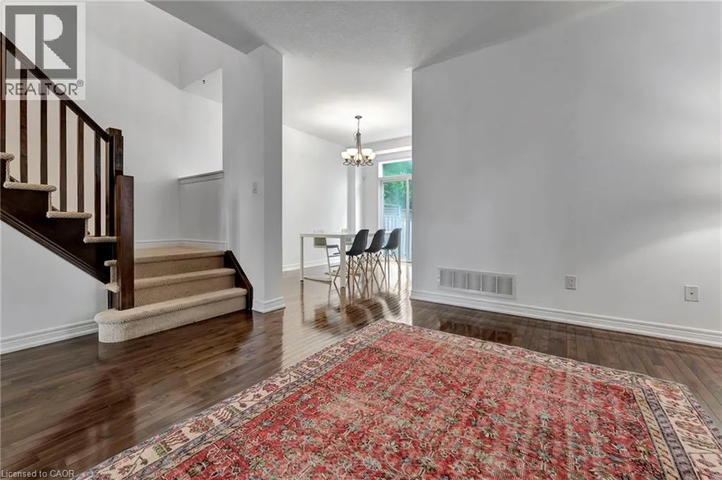 between Joshua and Raymond Remarkable Ancaster Meadowlands 3 BR Executive Style Townhouse. Located in a Charming Upscale Complex this Former Model Home Features a fireplace in the living room , Gourmet Kitchen with Rich Maple Cabinets, Granite Counters and Stainless Steel Appliances,9' Ceiling's on the Main Level, Hardwood Flooring on Main Level & Master Bedroom, Ensuite Bath with Deep Soaker Tub, Finished Lower Level, Private Rear Yard, Close to Amenities Schools, Park, Shopping - Meadowlands Power Centre, Transportation, Highway 403 & More! Tenant is responsible for driveway snow removal and grass. Garage is an oversized single. Available mid February. (id:27476)
