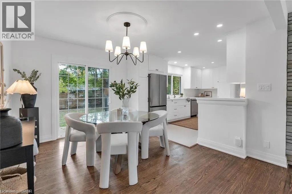 Off Old Mohawk Rd. Welcome to the popular and charming Old Meadows neighbourhood in Ancaster! This spacious bungalow features a fantastic layout, stunning updated kitchen and bathroom, 3 bedrooms on the main floor, hardwood floors throughout the main level along with large windows filling the home with natural sunlight. A walk-out from the dining room leads to a large backyard, perfect for building family memories or weekend entertaining with friends. Nestled on a LARGE 80' x 120' lot, you're just a short distance from the Old Ancaster Village charm and amenities while having easy highway access and minutes to Meadowlands Shopping Centre. This updated bungalow includes a separate entrance to the basement with a second kitchen AND separate laundry room as well as two additional bedrooms. A must-see property! (id:27476)