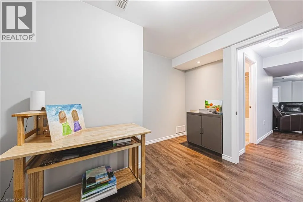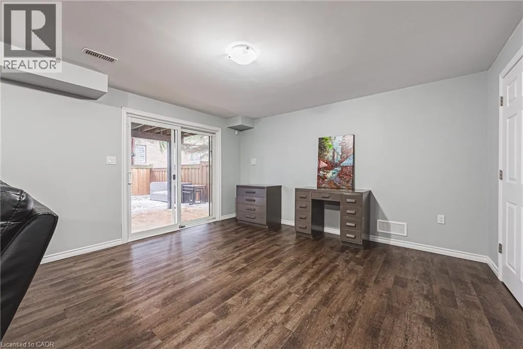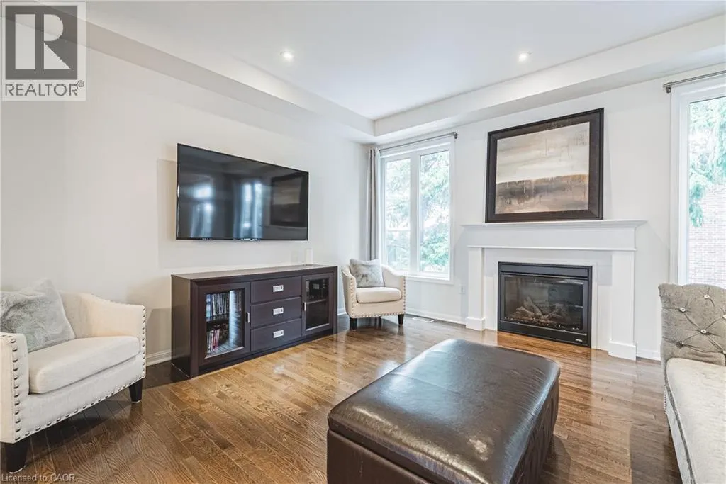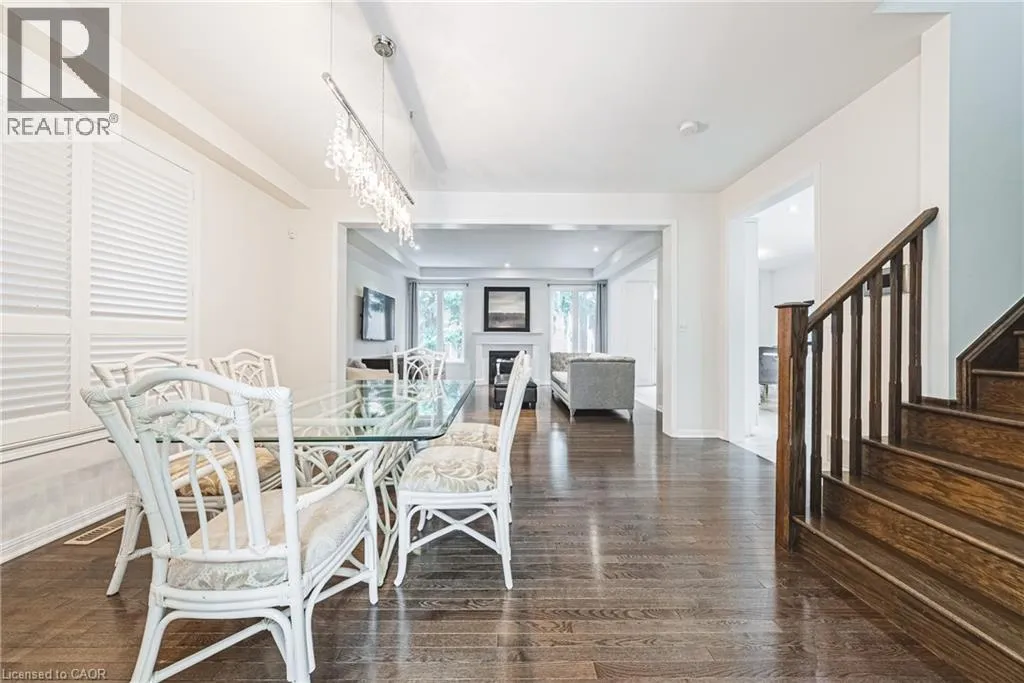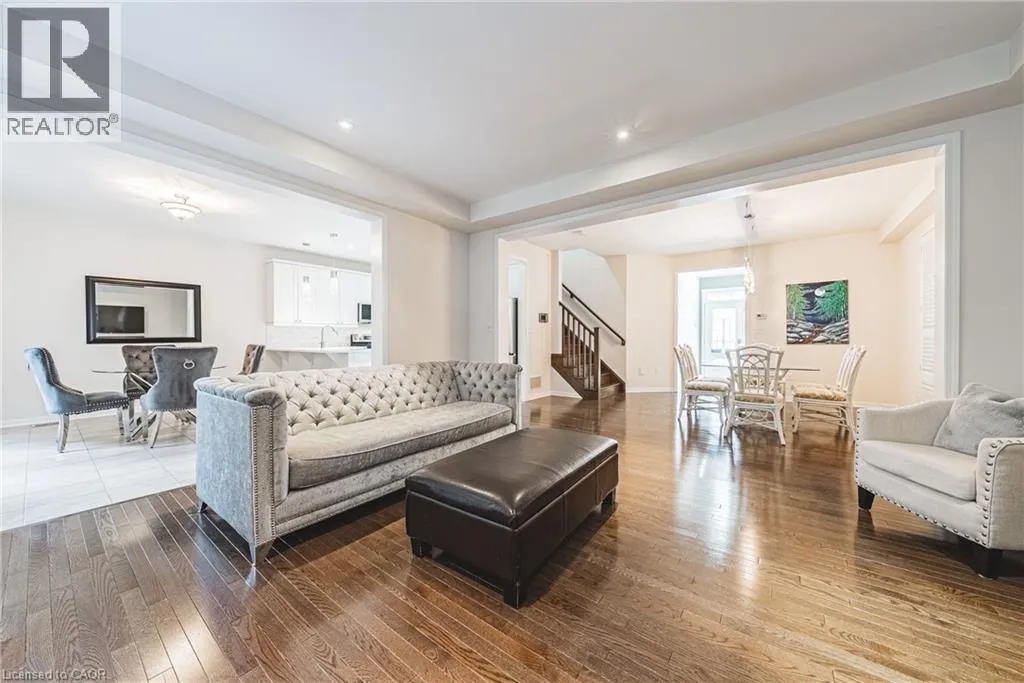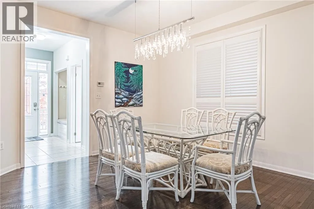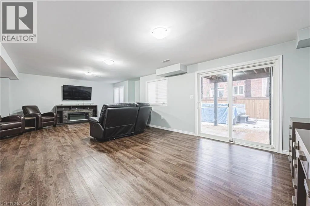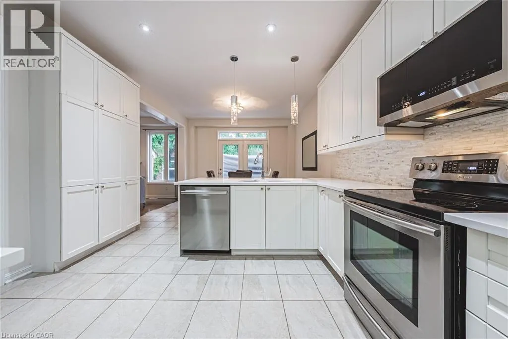 Kitty Murray - Emick - Peer Spectacular 4-bedroom home with walk-out basement, ideally located across from a park and within walking distance to schools. This beautifully designed residence features a sleek, open-concept layout with impressive kitchen including quartz countertops, stainless steel dishwasher and microwave, elegant marble backsplash, breakfast bar, kitchen dining area with patio doors to balcony, extended upper shaker cabinetry, full-wall pantry, pot drawers and a lazy Susanâperfect for both everyday living and entertaining. This family friendly home also offers a separate formal dining area, adding versatility and charm and open to the impressive great room showcasing coffered 9-foot ceilings, smooth finishes, rich darkstained hardwood floors, and an abundance pot lighting, creating a refined, magazine-worthy ambiance. The welcoming foyer features a custom niche seating area and the main floor also includes a guest powder room. Enjoy this carpet free home with hardwood flooring & ceramic throughout the first and 2nd floors. The fully finished basement showcases laminate flooring, 4 piece bath, office, spacious Rec room with walkout to the rear yard and ample storage. The second level boasts four generously sized bedrooms, including a luxurious primary suite with a spainspired ensuite featuring a glass shower, soaker corner tub, and elegant finishes. This 2nd floor also provides a second full bathroom and spacious laundry room for every day convenience. Close to all Ancaster has to offer, including shopping, restaurants, golf courses and more. Room sizes approximate. (id:27476)