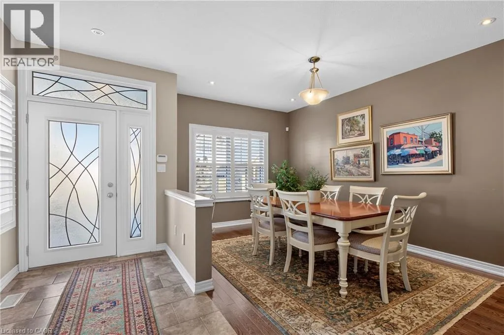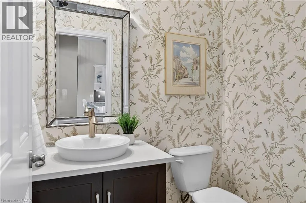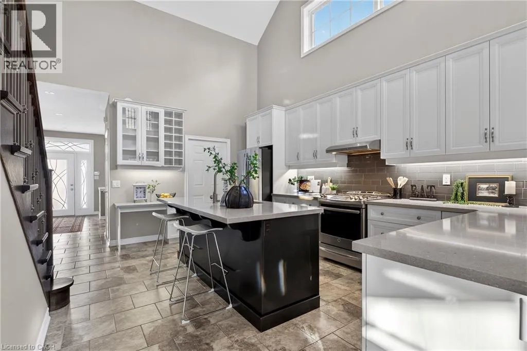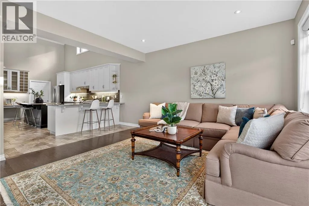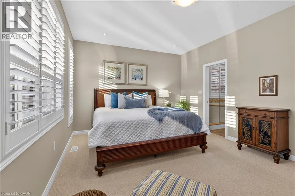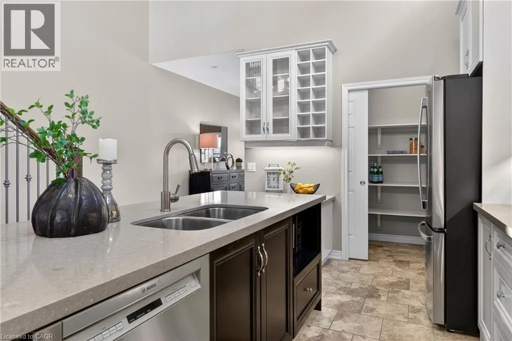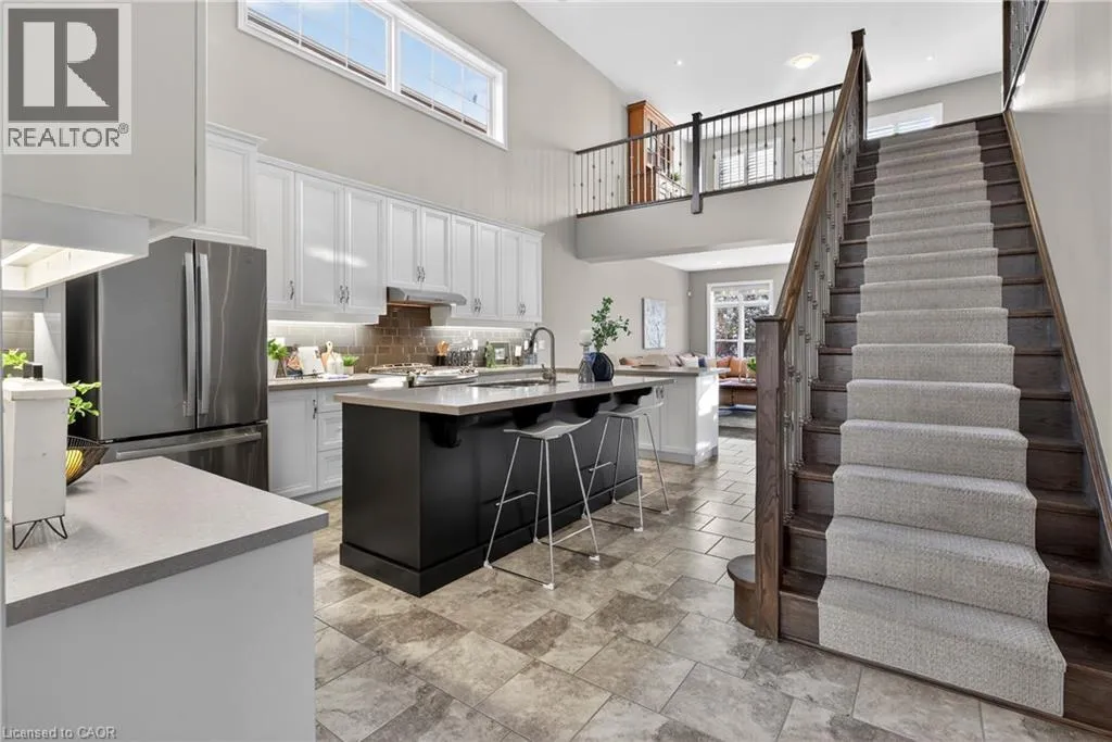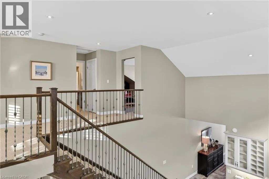 Stonehenge Dr to Butternut Grove Ln to Black Walnut Cres Welcome to 27 Black Walnut Crescent, nestled in one of Ancasterâs most sought-after detached condo lifestyle communities. This exclusive private-road enclave offers the perfect blend of privacy, prestige, and low-maintenance living, with exterior upkeep professionally managed so you can focus on enjoying your home and surroundings. Ideally located, youâre just minutes to major highways, shopping, dining, and everyday conveniences. Inside, the home impresses with a bright, open-concept design highlighted by vaulted ceilings and a dramatic second-floor loft overlooking the main living space, creating an airy, sophisticated atmosphere. Large windows throughout flood the home with natural light, enhancing the sense of space and warmth. The custom chefâs kitchen is both stylish and functional, featuring quartz countertops, a walk-in pantry, abundant prep space, and a seamless flow between counters and centre island, ideal for entertaining or everyday living. The adjoining family room offers built-ins, a gas fireplace, and a walk-out to a private patio. The upgraded staircase with modern metal pickets leads to a versatile second floor with theatre room with built-in shelving, perfect for movie nights, a home office, additional bedrooms or lounge space. Designed with convenience in mind, the home offers up to four spacious bedrooms, including a main-level primary suite complete with a walk-in closet and a generous 5-piece ensuite bath. This is an ideal layout for those seeking the ease of main floor living. The unfinished basement offers outstanding potential, excellent for storage today and ready for your custom vision in the future. This is a rare opportunity to enjoy space, style, and turnkey convenience in a prestigious, maintenance-supported Ancaster community. (id:27476)