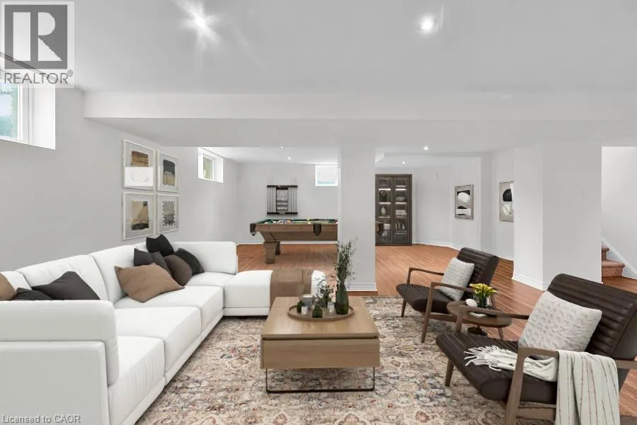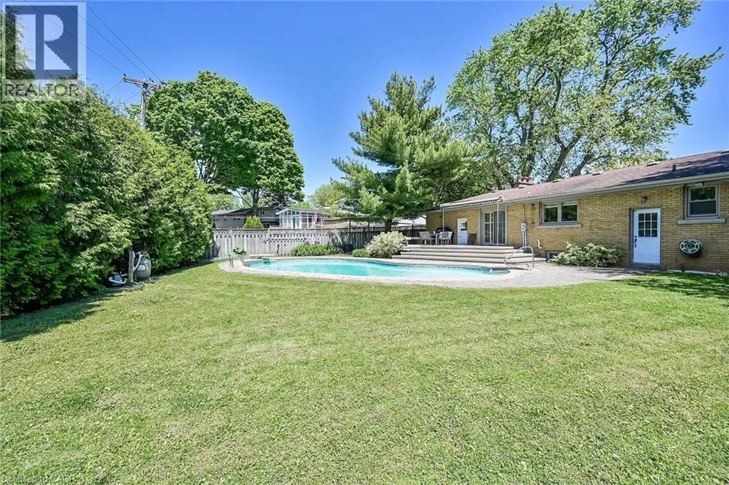 Mohawk Rd to Algonquin Ave to Oneida Blvd Welcome to this beautifully maintained 3 bedroom, 1.5 bath bungalow that sits on an oversized lot offering the perfect blend of comfort, and outdoor enjoyment. This gem is conveniently located close to schools, parks, Ancaster Memorial Arts Centre, scenic hiking trails, public transit, Meadowlands and is a short walk to the radial trail that leads you to the Ancaster Village where you will find the library, tennis club and unique shopping and dining experiences. An easy commute to McMaster University, downtown Hamilton, area hospitals, and quick access to the 403 and the Lincoln Alexander Parkway. As you step inside you are greeted with a cozy and bright living room w/wood fireplace that wraps around to the open concept kitchen & dining room with sliding doors to the fully fenced backyard featuring a large deck, inground swimming pool and lots of green space. This entire indoor/outdoor living space is set up great for entertaining family & friends or relaxing with a good book after a long day. Primary bedroom includes a âbonusâ 2pc ensuite bath. As you head to the basement you will notice the separate back entrance before you reach the fully finished recreation room with large windows that provide lots of natural light. The basement includes laundry, utility and cold rooms along with spaces that could easily be used as a den, craft room, workshop or storage. Tucked away on a low traffic street in the 'Mohawk Meadows' neighbourhood, the curb appeal is first rate w/ beautiful & mature landscaping, including an aggregate finished driveway with room for 3 cars along with a 1 car garage. This is a great find for families, couples, downsizers or anyone looking for one level living. The possibilities are endless as you make this your new home! (id:27476)
