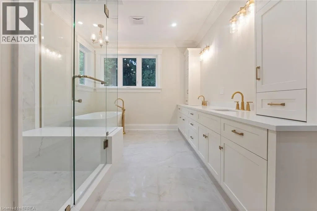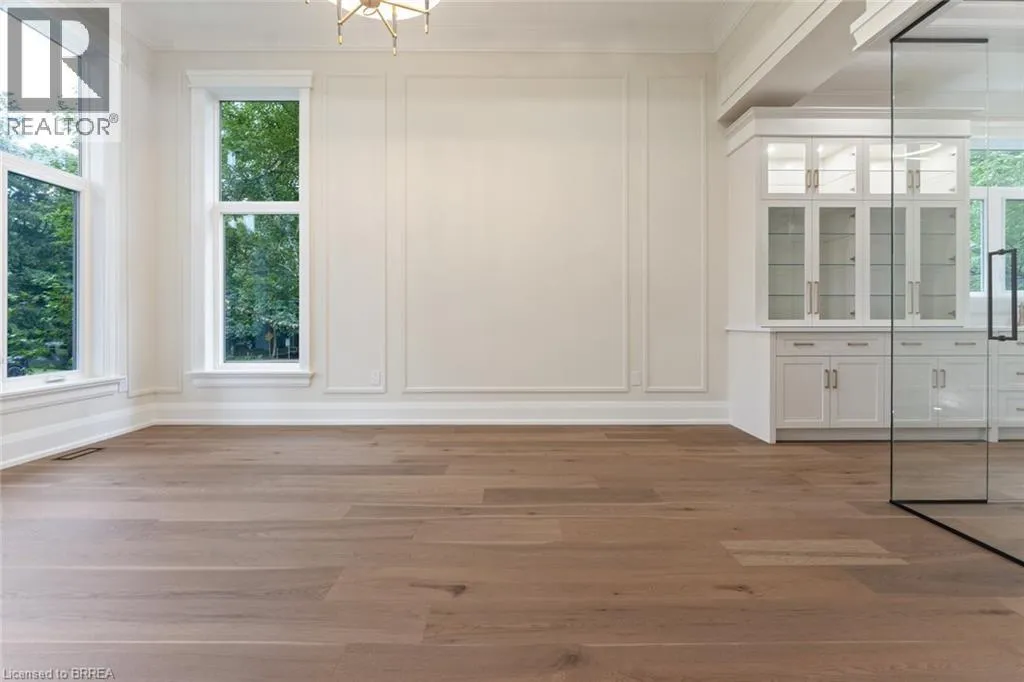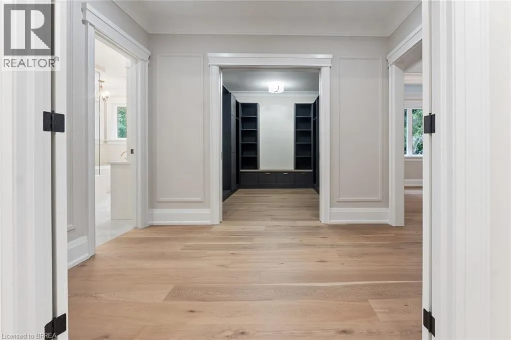 Fiddlers Green Road to Douglas Road, right onto St. Margarets Road LOCATION! Luxury Living at Its Finest in Ancaster. This elegant custom-built residence by one of Ancasterâs premier builders sits on a prestigious, quiet dead-end street adjacent to the Hamilton Golf & Country Club. Offering over 4,100 sq. ft. of refined living space plus a beautifully finished lower level, this exceptional home showcases outstanding craftsmanship throughout, including 10-foot ceilings, oversized doors, custom millwork, crown moulding, and wide-plank blonde oak flooring. The chefâs kitchen is the heart of the home, featuring custom cabinetry, high-end stainless steel appliances, and a full servery connecting to a walk-in pantry, glass-enclosed wine room, and formal dining room - ideal for entertaining. The inviting family room impresses with a coffered ceiling, gas fireplace, and views of the private backyard and covered patio. The main floor also includes a den/office/library, mudroom with secondary entrance, and two elegant bathrooms. Expansive windows flood the home with natural light. Upstairs are four spacious bedrooms, each with private ensuite and walk-in closet. The primary suite is a true retreat, complete with a fireplace, sitting area, custom walk-in closet, and luxurious 4-piece ensuite with double sinks and a freestanding soaker tub. A convenient laundry room serves the upper level. The finished lower level offers over 2,000 sq. ft. with 9-foot ceilings, a large recreation area, home gym, 4-piece bathroom, ample storage, and walk-up access to the oversized heated double garage with rear yard access. Step outside to a private backyard oasis with mature trees, covered patio, outdoor kitchen space, and stone fireplace - perfect for year-round enjoyment. This remarkable home delivers unmatched quality, luxury, and location in one of Ancasterâs most desirable settings. (id:27476)