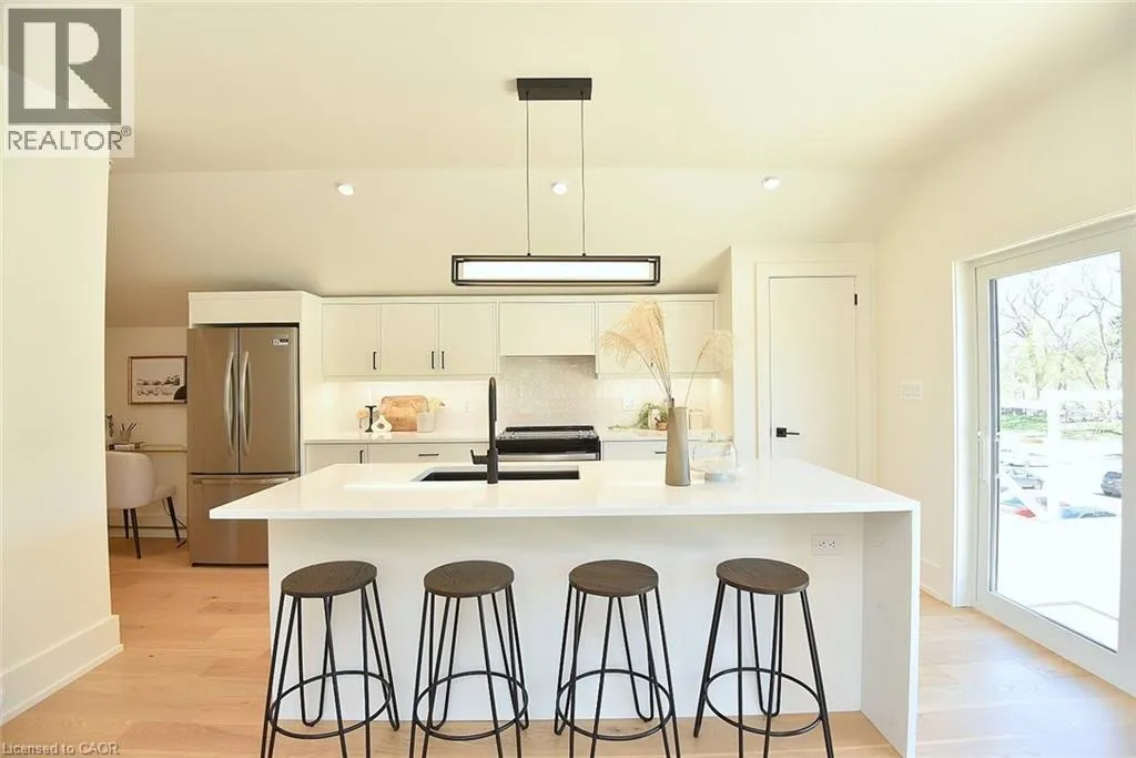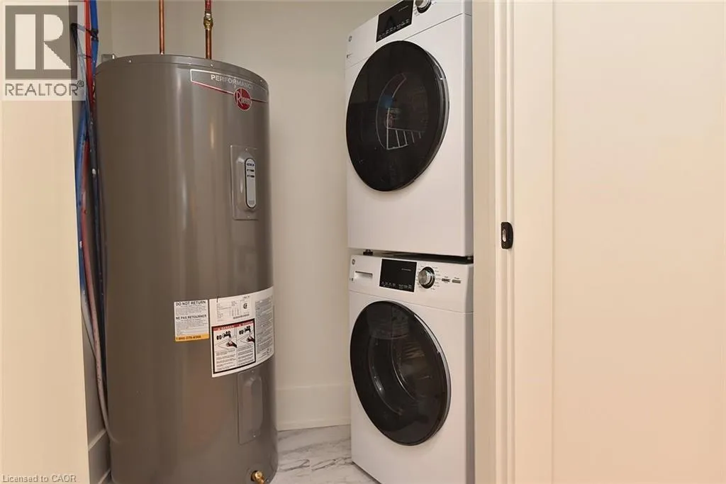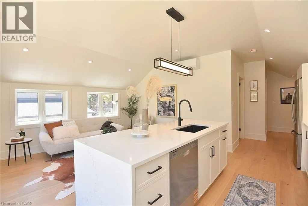 Never been lived in and fully renovated, this stylish one-bedroom, one-bath loft for lease is located in the heart of Old Ancaster. Gorgeous hardwood flooring runs throughout the open-concept living and kitchen space, enhanced by LED pot lights and large windows that flood the unit with natural light. The modern kitchen features quartz countertops, a large undermount sink, stainless steel appliances, and an eat-at islandâperfect for both everyday living and entertaining. Enjoy the convenience of in-suite washer and dryer and patio doors leading to your own private balcony, ideal for relaxing outdoors. The main bath offers a double vanity and mirrors, and large walk in shower. Additional features include as small office area, a locker, and a surface parking space. Surrounded by Old Ancasterâs sought-after shops, restaurants, and amenities, this never-lived-in loft presents a rare opportunity to lease a beautifully finished home in a prime location. AAA+ tenants, please send application run through Single Key with supporting documents only. Tenant to pay all utilities. (id:27476)