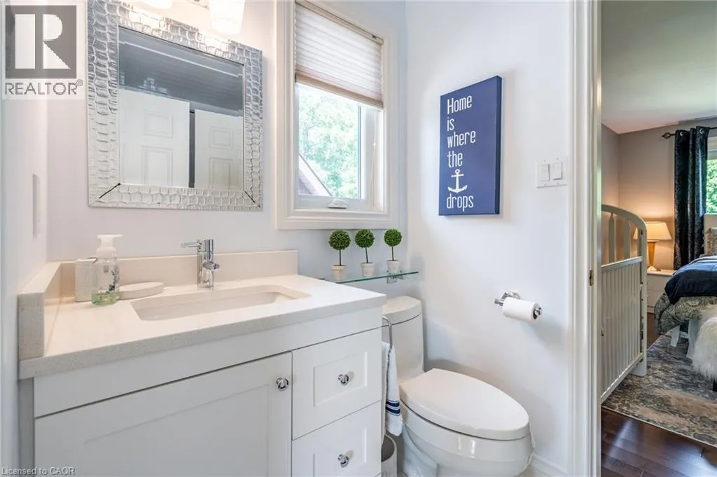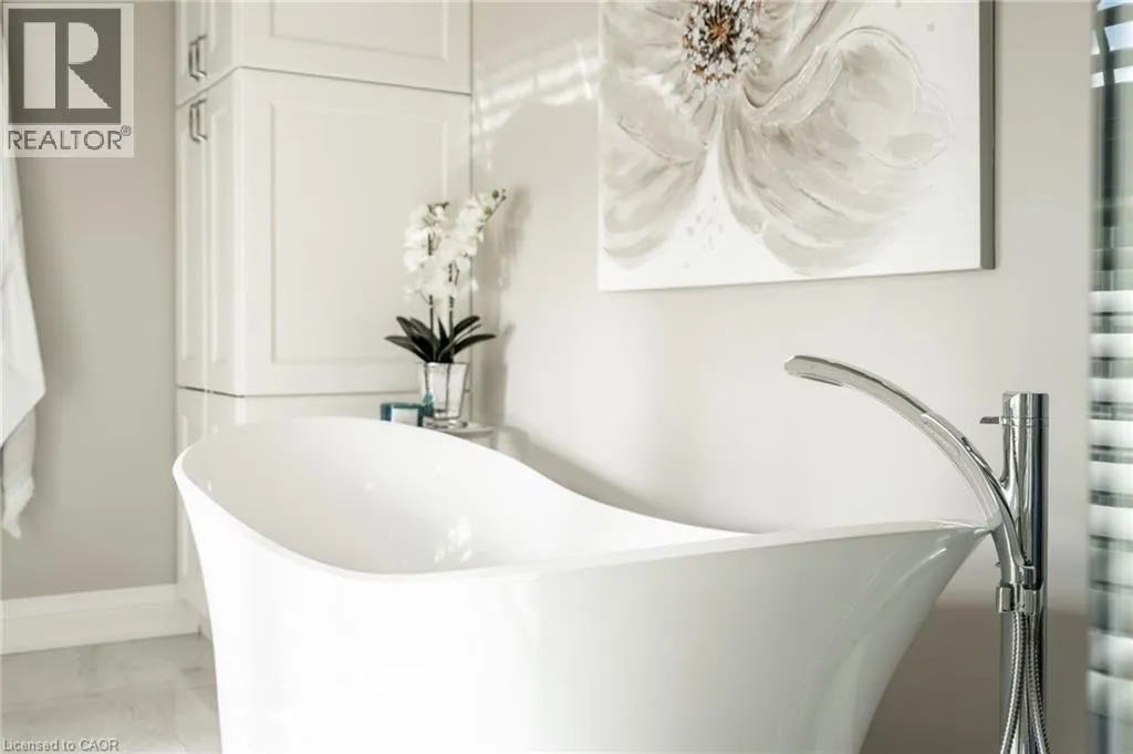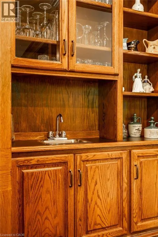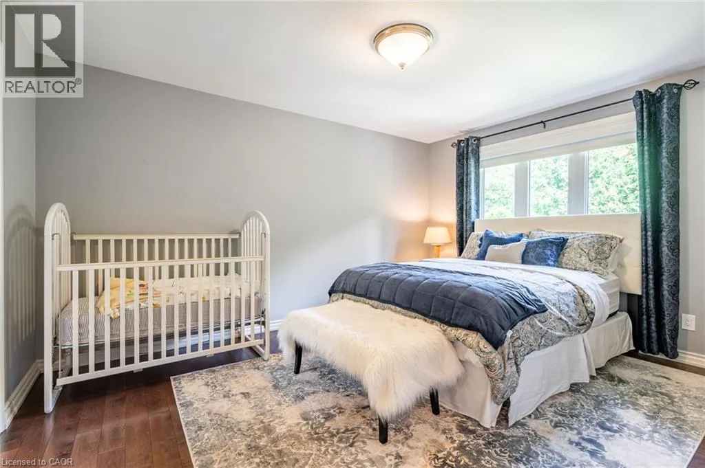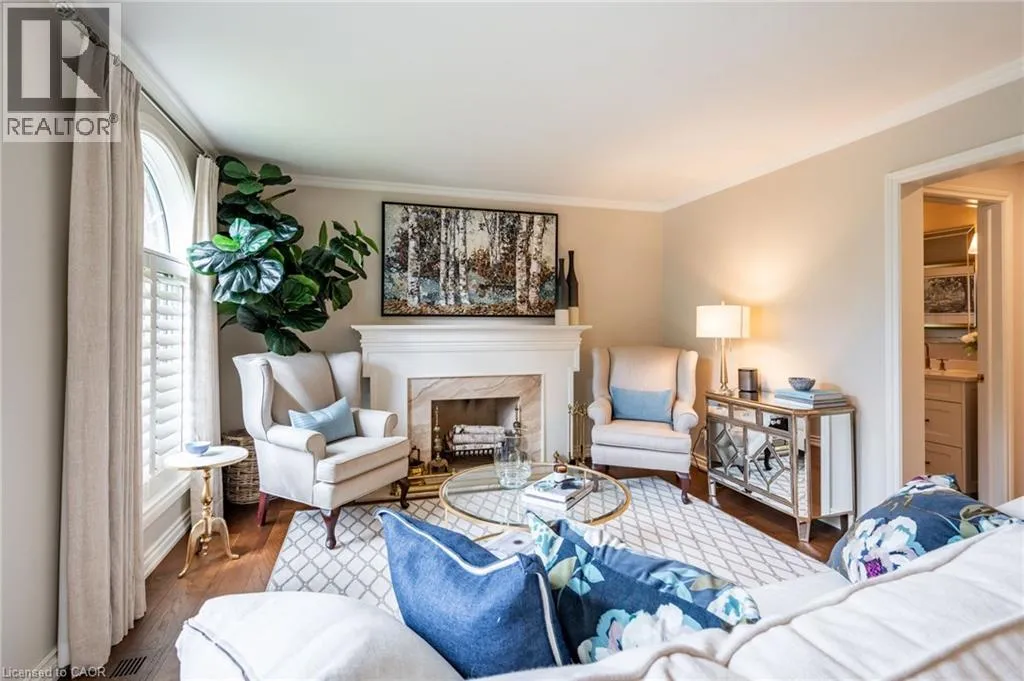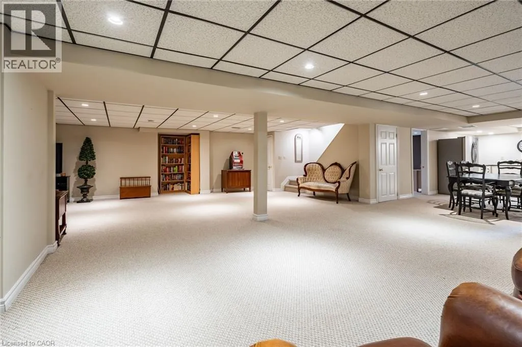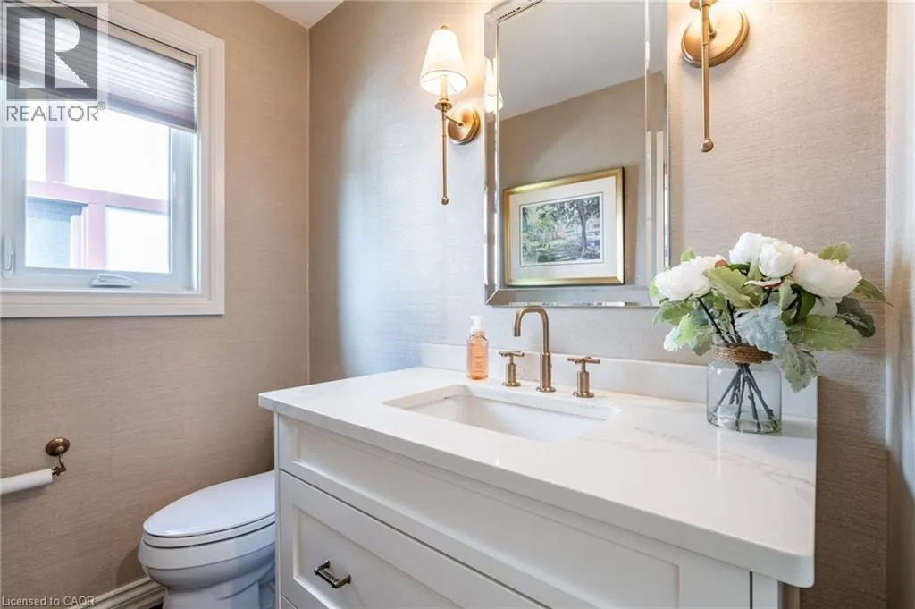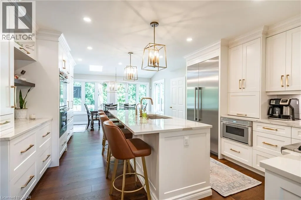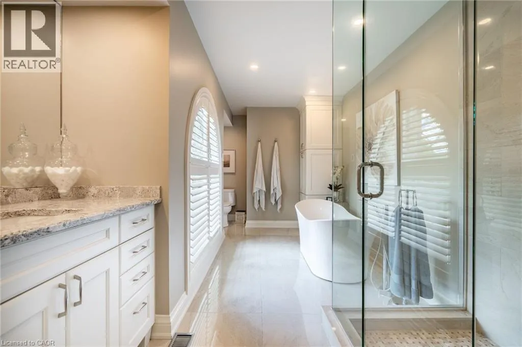 Golf Links Rd to Chancery Dr to Peppertree Cres Exceptional Estate in One of Ancasterâs most sought-after Neighbourhoods! Just steps from the prestigious Hamilton Golf & Country Club, this remarkable estate offers over 4000sqft above grade of living space on a generous pie-shaped lot w/ lush landscaping, inground pool & a resort-like bckyrd! The approach alone is unforgettable- youâre greeted by a picturesque streetscape, grand windows & exterior drs (replaced â11ââ15), extensive stonework & landscaping (â14) & an incredible architectural presence. Inside, a stunning dbl staircase (renoâd Spring â21) makes an immediate statement. Beneath the staircase, the elegant great rm feat rich oak wainscoting & a gas fp, creating a warm yet sophisticated gathering space. Main flr hdwd â21. The kitchen, fully renoâd in â21, boasts Cambria quartz countertops & premium Thermador appl. Step outside from the kitch to an extraordinary, bckyrd oasis designed for entertaining! Highlights include two gas fp, multiple outdoor entertaining areas, an impressive L-shaped pool & ample green space for children and pets. Landscaping by Cedar Springs in â11. The main lvl also offers a gracious living rm w/ a wood-burning fp, a formal dining rm, a regal office w/ oak detailing and wainscoting, a 2-pc bthrm and a convenient main-flr lndry rm off the grg w/ heated floors. Upstairs, youâll find 4 generously sized bdrms and 3 full bthrms. The childrenâs rms share a Jack & Jill bthrm reno'd in 15', while the luxurious primary suite feat his-and-hers w/i closets, a spa-like ensuite reno'd in 15' w/ Cambria Quartz countertops, heated flrs, and an addâl gym or private office. The lower lvl offers exceptional versatility, w/ a spacious bdrm, full kitch w/ granite countertops (â15), and a renoâd bthrm w/ heated flrs (â15). With a sep entrance, this lvl is ideal for summer entertaining, pool access, or extended family living. A truly rare offeringâprivate, elegant, and perfectly locatedâthis home delivers timeless design & an unmatched lifestyle. (id:27476)