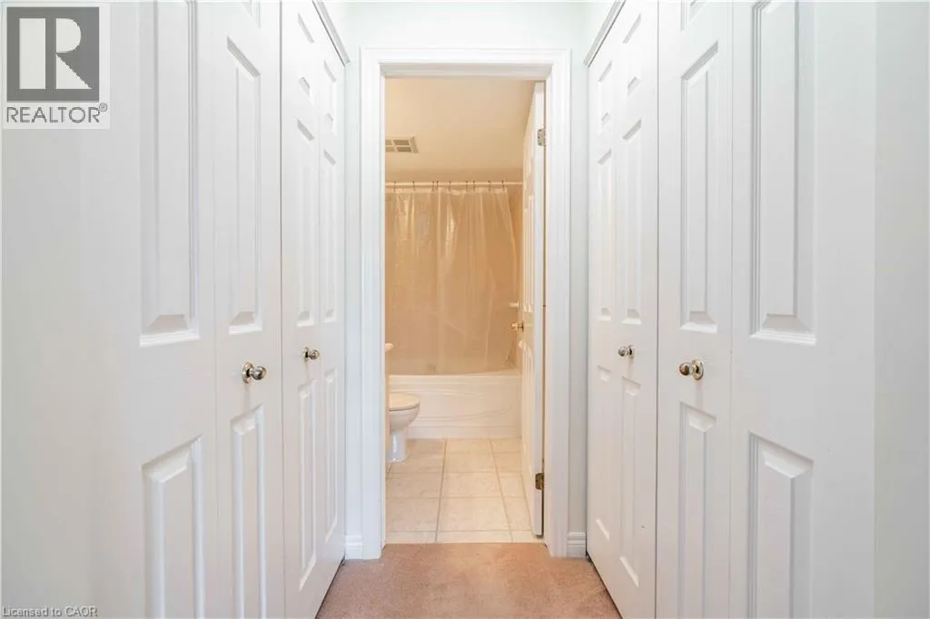 GOLF LINKS RD TO CLOVERLEAF Spacious and bright, this 2-bedroom, 2-bath condo in the heart of Ancasterâs Meadowlands offers over 1,150 sq ft of comfortable living with a smart layout and plenty of natural light. The living room features a cozy gas fireplace and opens to a private balcony with a quiet treed view â a rare, calming backdrop in the community. The primary bedroom includes a full ensuite with a soaker tub, while the second bathroom is finished with a walk-in shower. Freshly painted walls add a modern touch, with plenty of room to personalize. Set on the preferred second floor, this home provides a safe and accessible option for downsizers and retirees alike. The well-managed building includes an underground parking space with a private storage locker located directly behind, as well as amenities such as a car wash bay, workshop, seasonal storage, party room, gazebo, and ample visitor parking. A walking path just steps from the property leads to a landscaped reservoir area with trails and greenery, perfect for a morning walk or evening stroll. Condo fees conveniently include water, building insurance, and all exterior maintenance. Located just steps from shops, restaurants, Costco, Shoppers Drug Mart, and more, this condo combines everyday convenience with peace and quiet â an excellent opportunity in a highly sought-after Ancaster location. (id:27476)