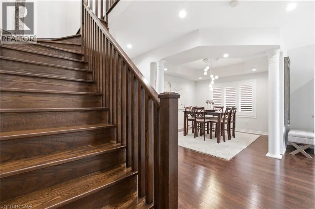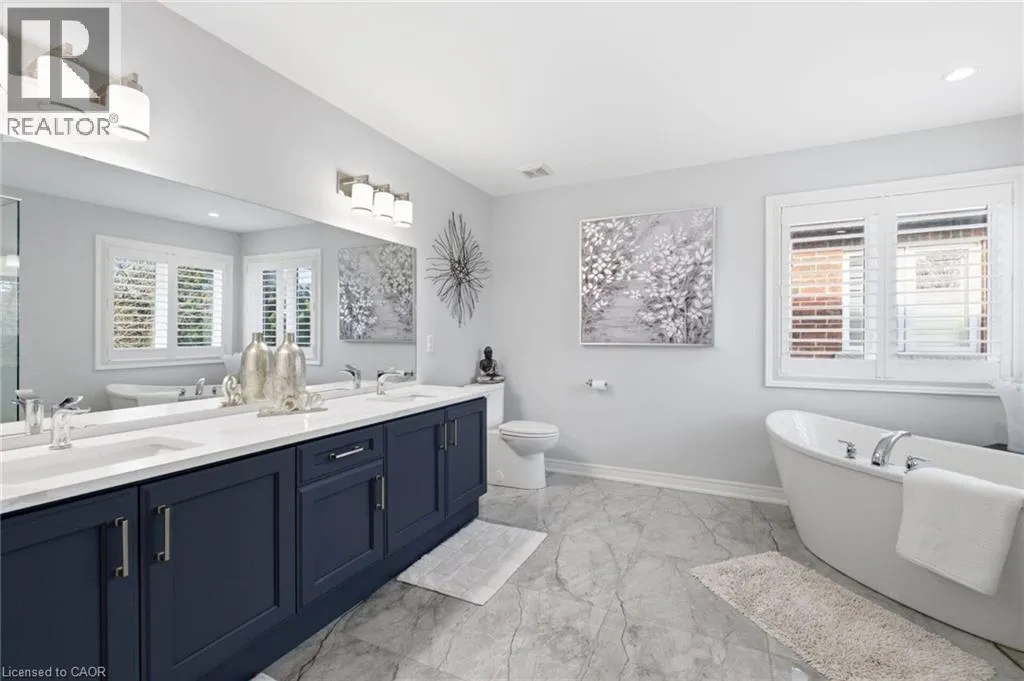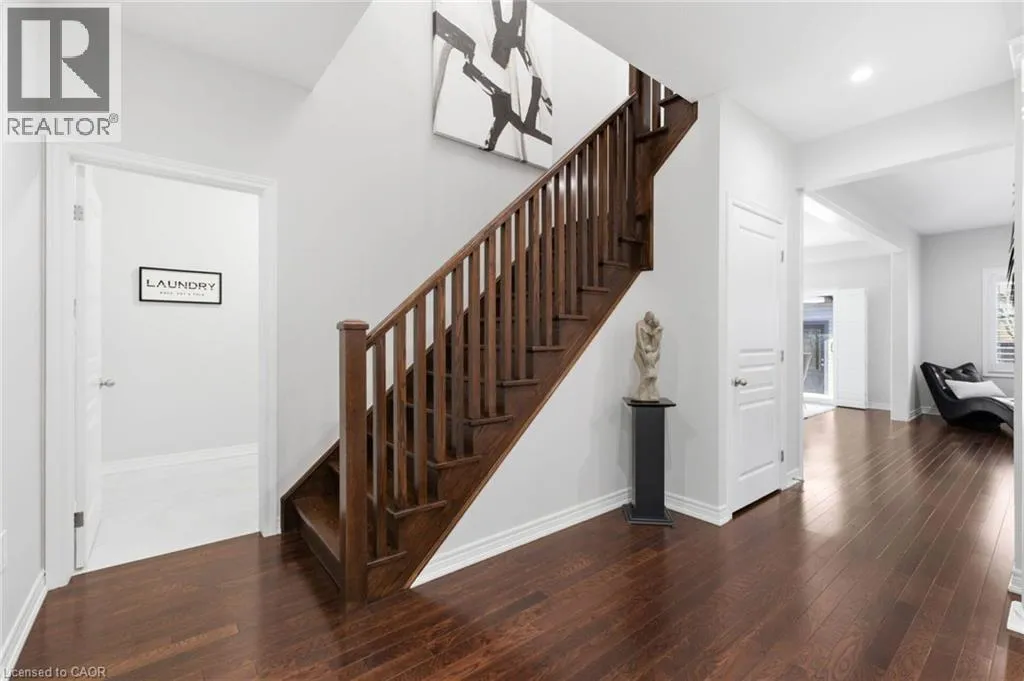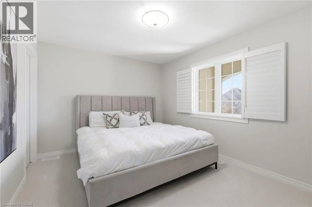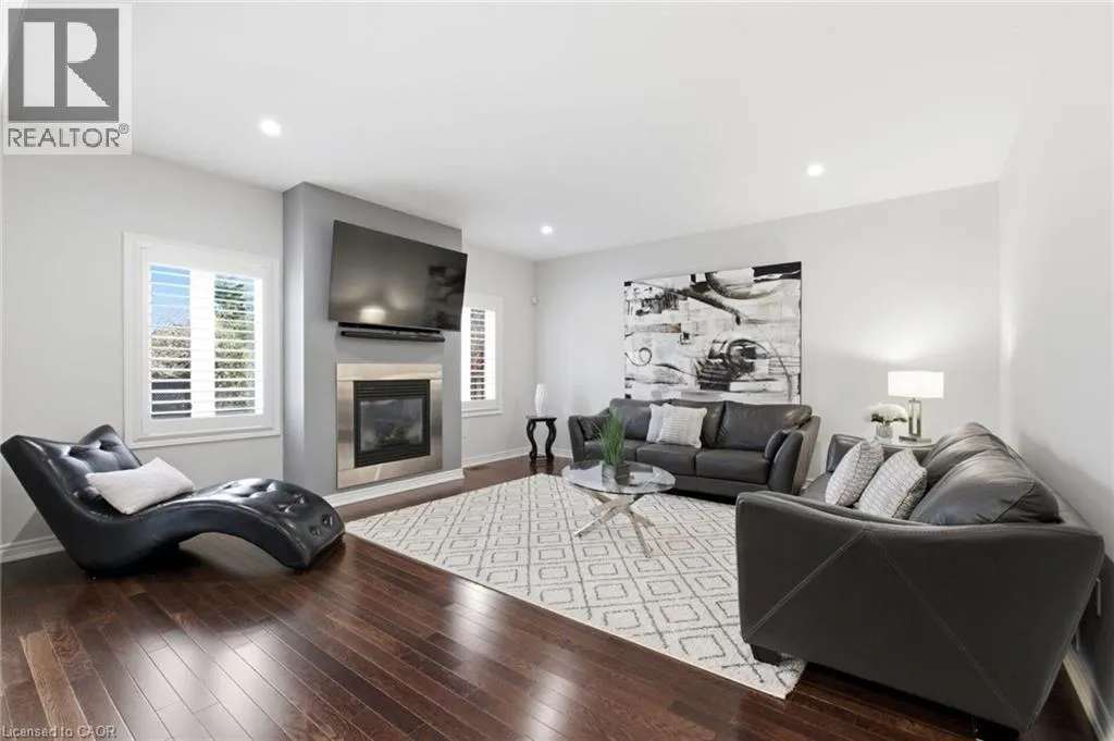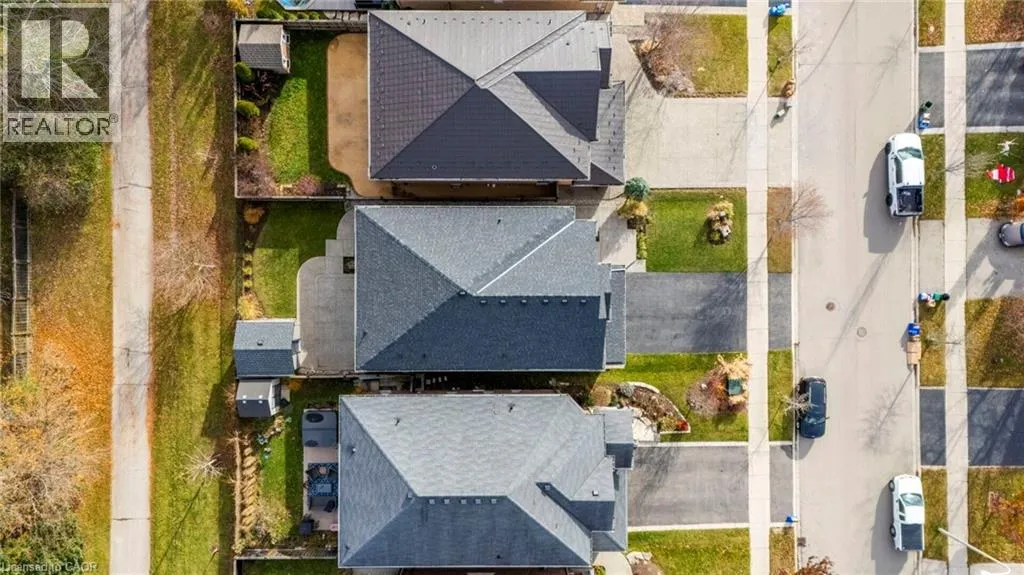 Meadownbrook Drive, West on Speers, North on Valridge Drive Welcome to the Hemlock model by DeSantis, a beautifully maintained 4+1 bedroom, 3.5 bathroom family home located in the sought-after community of Parkview Heights in Ancaster. Proudly owned by its original owner, this former builder's model showcases quality craftsmanship and thoughtful updates throughout. The main level features hardwood flooring, granite countertops, an oak staircase, California shutters, and a cozy natural gas fireplace in the great room-perfect for family living and entertaining. Upstairs, three of the four bedrooms offer walk-in closets, including a spacious primary retreat with a renovated, spa-inspired ensuite. All bedrooms are finished with new, plush carpeting for added comfort. The fully finished basement provides additional living space and includes a fifth bedroom-ideal for guests, teens, or a home office. Recent updates include a newer roof with lifetime warranty, heated double-car garage, and full irrigation system. Enjoy the private backyard with a large exposed aggregate concrete patio and a charming outbuilding perfect for a kids' play space. Backing onto a quiet walkway, the home offers added privacy with no direct rear neighbours. With approximately 3,200 sq. ft. of total living space, this move-in-ready home is steps to top-rated schools, conservation area, community centre, shopping, and offers quick access to the 403-an ideal choice for growing families.*For Additional Property Details Click The Brochure Icon Below* (id:27476)