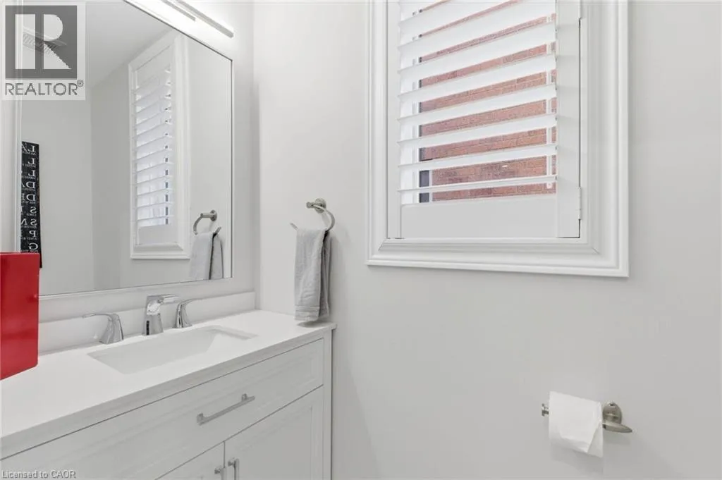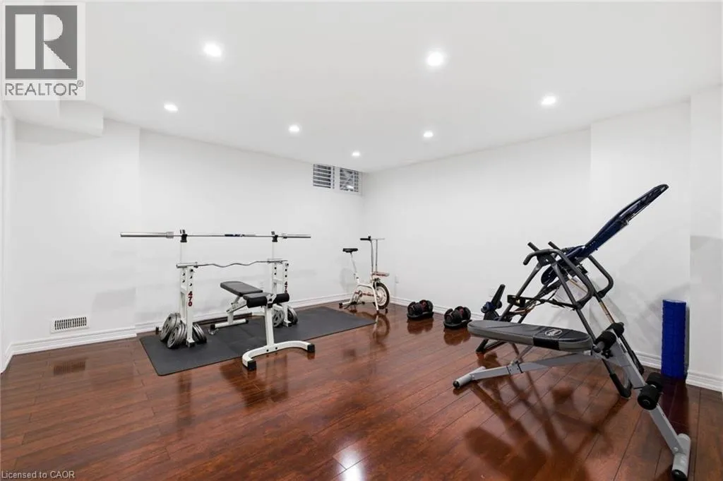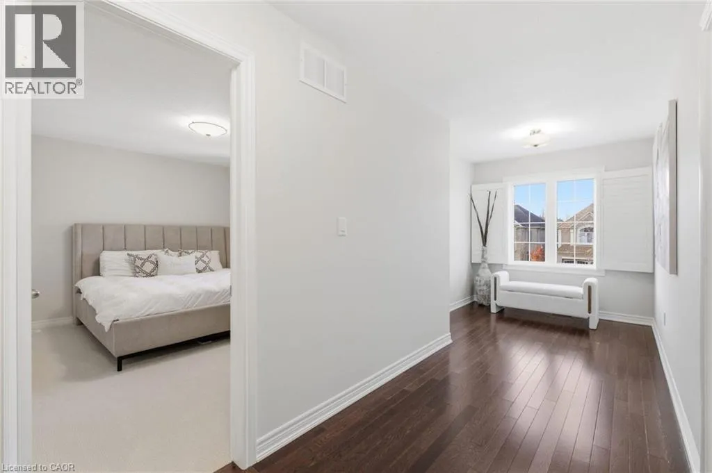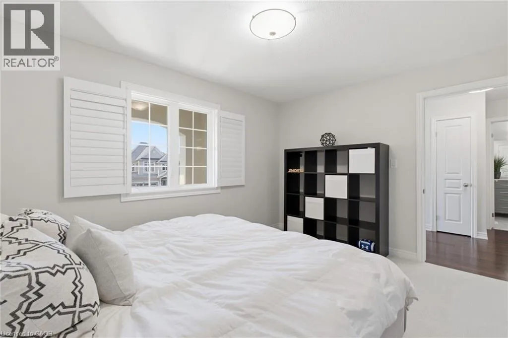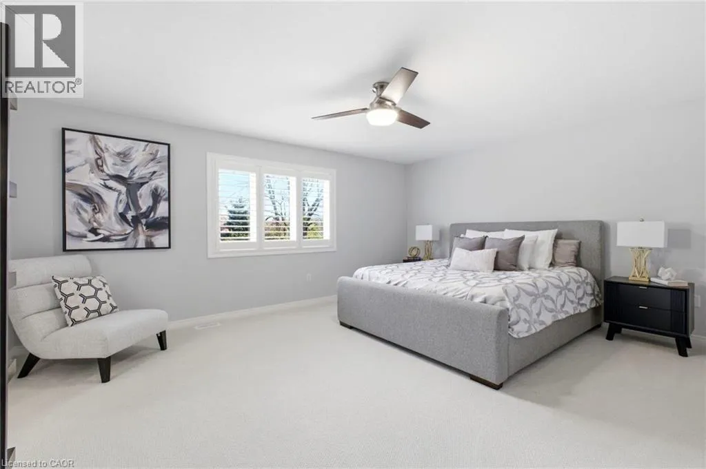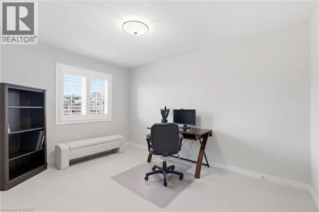 Meadownbrook Drive, West on Speers, North on Valridge Drive Welcome to the Hemlock model by DeSantis, a beautifully maintained 4+1 bedroom, 3.5 bathroom family home located in the sought-after community of Parkview Heights in Ancaster. Proudly owned by its original owner, this former builder's model showcases quality craftsmanship and thoughtful updates throughout. The main level features hardwood flooring, granite countertops, an oak staircase, California shutters, and a cozy natural gas fireplace in the great room-perfect for family living and entertaining. Upstairs, three of the four bedrooms offer walk-in closets, including a spacious primary retreat with a renovated, spa-inspired ensuite. All bedrooms are finished with new, plush carpeting for added comfort. The fully finished basement provides additional living space and includes a fifth bedroom-ideal for guests, teens, or a home office. Recent updates include a newer roof with lifetime warranty, heated double-car garage, and full irrigation system. Enjoy the private backyard with a large exposed aggregate concrete patio and a charming outbuilding perfect for a kids' play space. Backing onto a quiet walkway, the home offers added privacy with no direct rear neighbours. With approximately 3,200 sq. ft. of total living space, this move-in-ready home is steps to top-rated schools, conservation area, community centre, shopping, and offers quick access to the 403-an ideal choice for growing families.*For Additional Property Details Click The Brochure Icon Below* (id:27476)