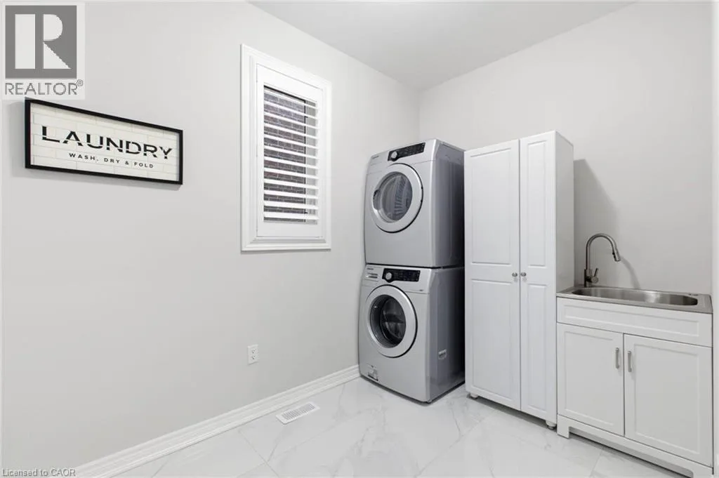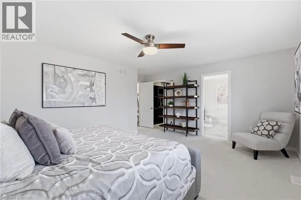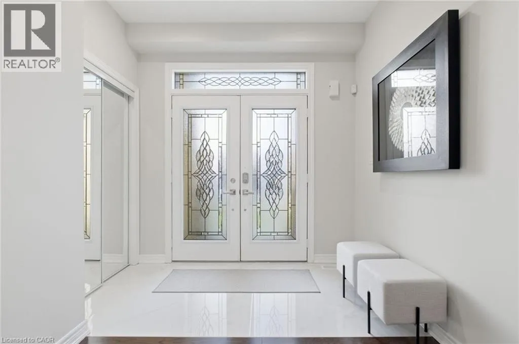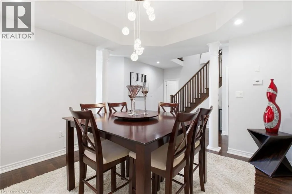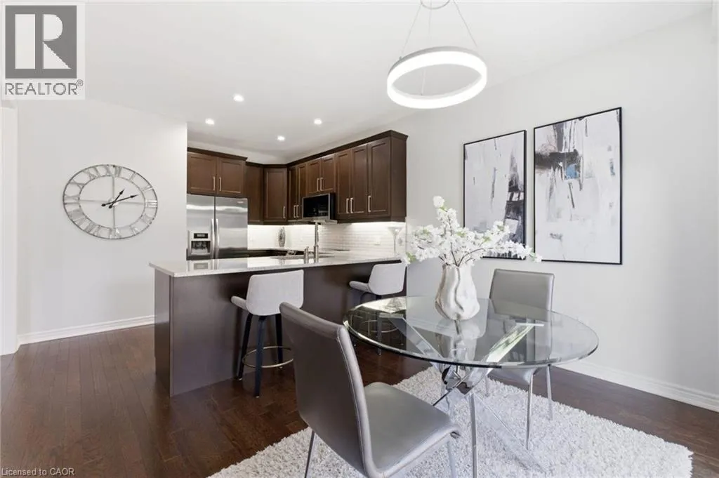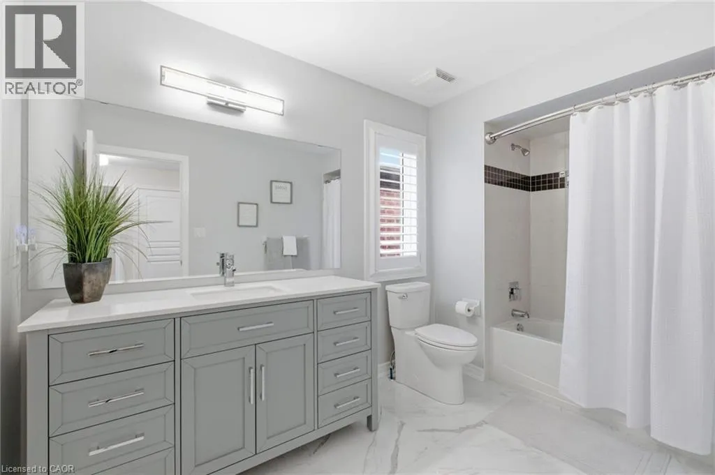 Meadownbrook Drive, West on Speers, North on Valridge Drive Welcome to the Hemlock model by DeSantis, a beautifully maintained 4+1 bedroom, 3.5 bathroom family home located in the sought-after community of Parkview Heights in Ancaster. Proudly owned by its original owner, this former builder's model showcases quality craftsmanship and thoughtful updates throughout. The main level features hardwood flooring, granite countertops, an oak staircase, California shutters, and a cozy natural gas fireplace in the great room-perfect for family living and entertaining. Upstairs, three of the four bedrooms offer walk-in closets, including a spacious primary retreat with a renovated, spa-inspired ensuite. All bedrooms are finished with new, plush carpeting for added comfort. The fully finished basement provides additional living space and includes a fifth bedroom-ideal for guests, teens, or a home office. Recent updates include a newer roof with lifetime warranty, heated double-car garage, and full irrigation system. Enjoy the private backyard with a large exposed aggregate concrete patio and a charming outbuilding perfect for a kids' play space. Backing onto a quiet walkway, the home offers added privacy with no direct rear neighbours. With approximately 3,200 sq. ft. of total living space, this move-in-ready home is steps to top-rated schools, conservation area, community centre, shopping, and offers quick access to the 403-an ideal choice for growing families.*For Additional Property Details Click The Brochure Icon Below* (id:27476)