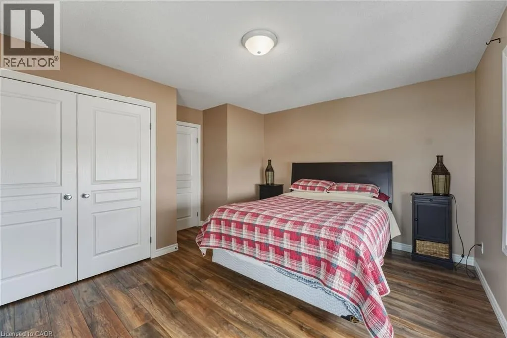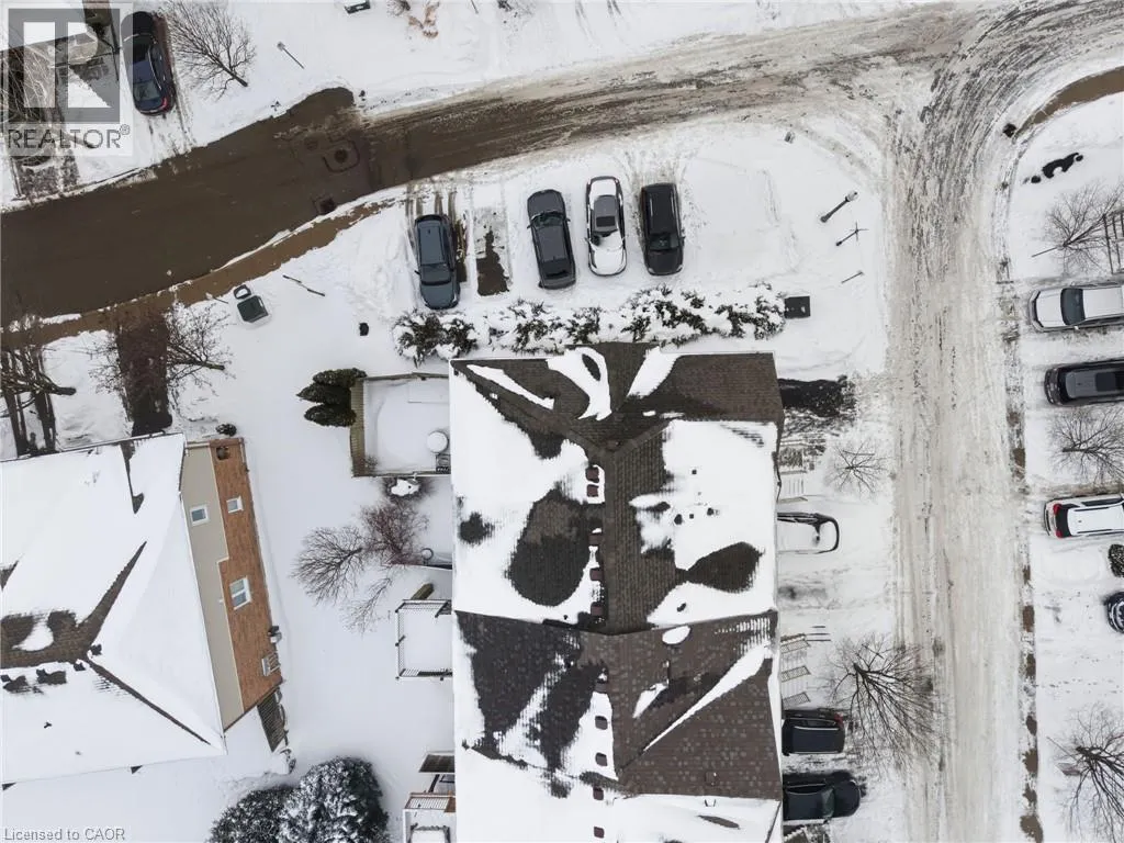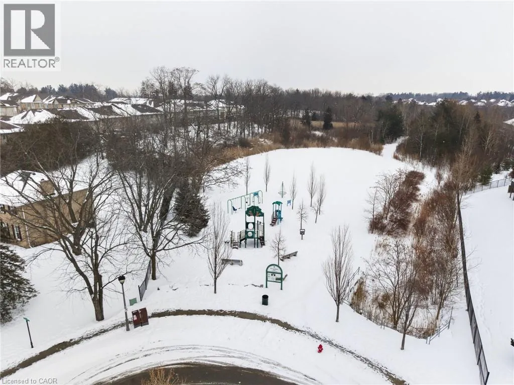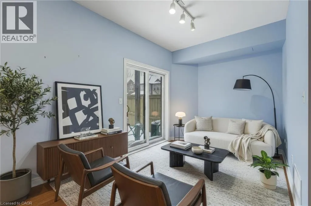 Rymal or Wilson to Shaver to Myers Situated in a quiet Ancaster neighbourhood, this well maintained corner unit townhouse offers bright, comfortable living across three finished levels. The open concept main floor includes a gas fireplace and access to a private balcony. The eat in kitchen is finished with granite countertops, maple cabinetry, stainless steel appliances, a pantry, and breakfast bar. Upstairs are two spacious bedrooms, a full 4 piece bath, and convenient second floor laundry. The finished lower level provides a walkout to a private backyard and a flexible space ideal for a rec room, home office, or additional bedroom. An attached garage, nearby visitor parking, low road fees, and easy access to the 403 complete the home. (id:27476)