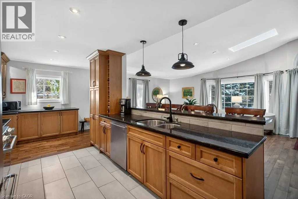 Wilson St to Jerseyville Rd to Lovers Lane Elegant, Timeless, Classy...are just beginning to describe this 2350 sq. ft. bungalow on Ancaster's most coveted street, Lover's Lane. Remarkably unassuming and private, yet filled with wonder! The home was completely transformed and nearly doubled in size in 2008 by reputable local architects and builders, Jim and James Ling. The design maximizes the layout and function of the original footprint, while the rear addition seamlessly blends in a great room, dining area with vaulted ceilings + skylight, and your spacious primary retreat.The home exudes warm and natural finishes that include: hand-scraped maple throughout the main floor, maple cabinetry and granite countertops in the kitchen and a mixture of slate and marble tile in the bathrooms. Enjoy your natural backyard Oasis with stone patio, plenty of grass/gardens, lush foliage, spruce tree line, 40' I/G saltwater pool and hot tub right outside of the primary bedroom. You're steps away from the Old Ancaster core, where you'll find charming stone century buildings in the form of pubs, restaurants, coffee shops, churches, and local businesses. Nature lovers will appreciate the short drive and access to Sulphur Springs Rd and the Dundas Valley trail system. Make this your 'Forever', right-size today! (id:27476)