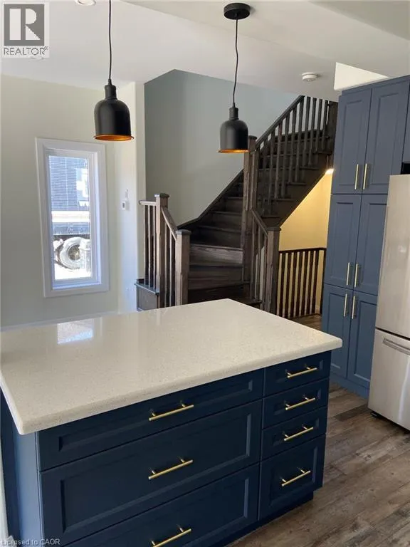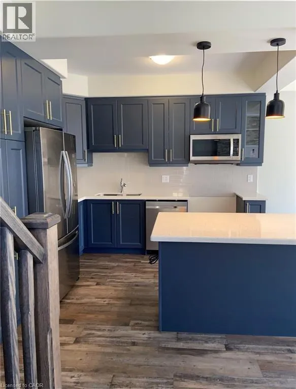 Garner Road E to Raymond Road to Robertson Road Stunning & impeccably maintained end-unit townhouse in the highly sought-after Ancaster Meadowlands! Enjoy modern living in this beautifully upgraded 3-bedroom, 2.5-bath home offering an open-concept main level with 9-ft ceilings and abundant natural light. The farmhouse-inspired kitchen features gold hardware, stainless steel appliances, including a gas range, and flows seamlessly into the spacious living area, complete with an electric fireplace. An oak staircase leads to the upper level, where youâll find three generously sized bedrooms. The primary suite offers a walk-in closet and a private ensuite with an oversized glass shower. Convenient upper-level laundry adds to the thoughtful layout. Ideally located just minutes to the Lincoln Alexander Parkway (LINC) and Hwy 403, and steps to Tiffany Hills Elementary School. A short drive to Meadowlands Power Centre with Costco, Sobeys, Staples, Dollarama, Winners, HomeSense, LCBO, restaurants, and more. All utilities extra, including tankless water heater and HRV. AAA tenants only. Available May 15. (id:27476)