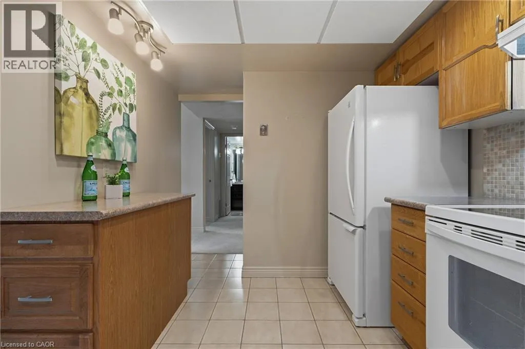 Wilson St W and Fiddlers Green Rarely offered, immaculate one-bedroom suite featuring an updated bathroom with granite countertop and a refreshed oak kitchen complete with backsplash, additional storage cabinetry, under-cabinet lighting, pot lights, double sink, built-in dishwasher, fridge, and stove. Convenient in-suite laundry with stackable washer and dryer plus extra storage. The spacious open-concept living and dining area is filled with natural light and offers a walk-out through oversized patio doors to a generous balcony overlooking mature trees and beautifully manicured grounds. The large principal bedroom features a picture window with views of the front gardens and a walk-in closet. Includes one underground parking space and a locker. Ideally located close to shopping, restaurants, easy access to the 403, scenic hiking trails, Golf & Country Clubs, and numerous parks. Don't miss this opportunity! WOW! (id:27476)