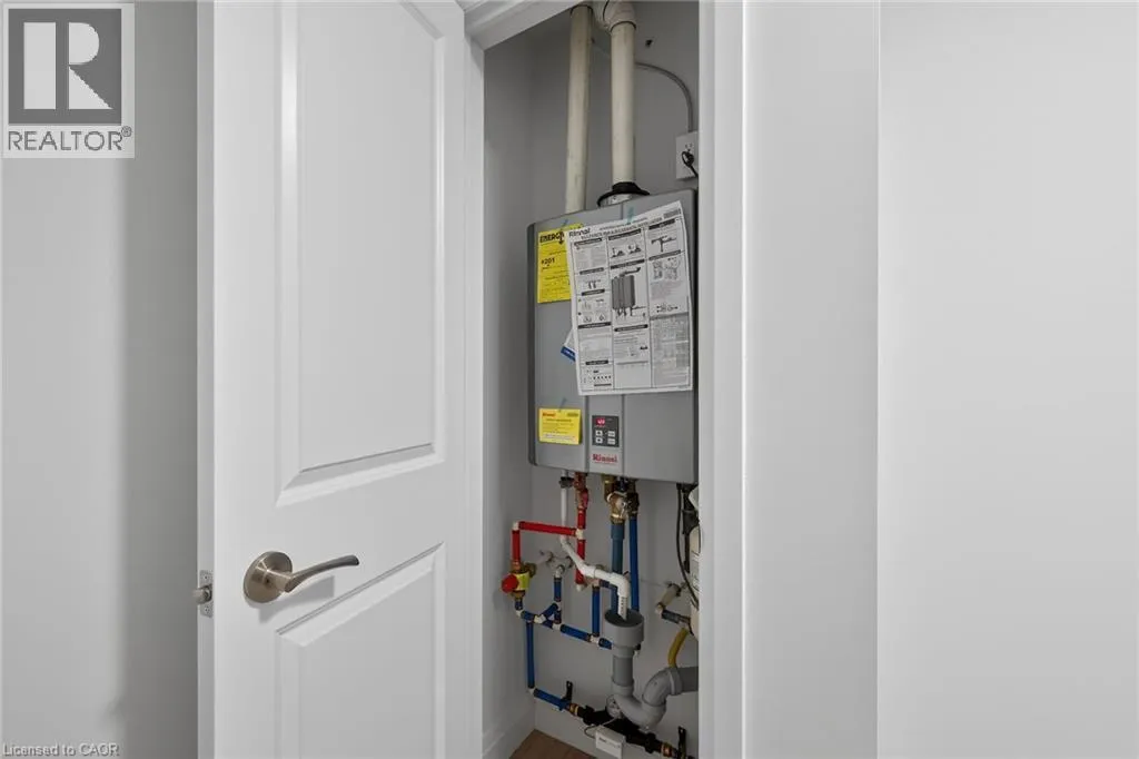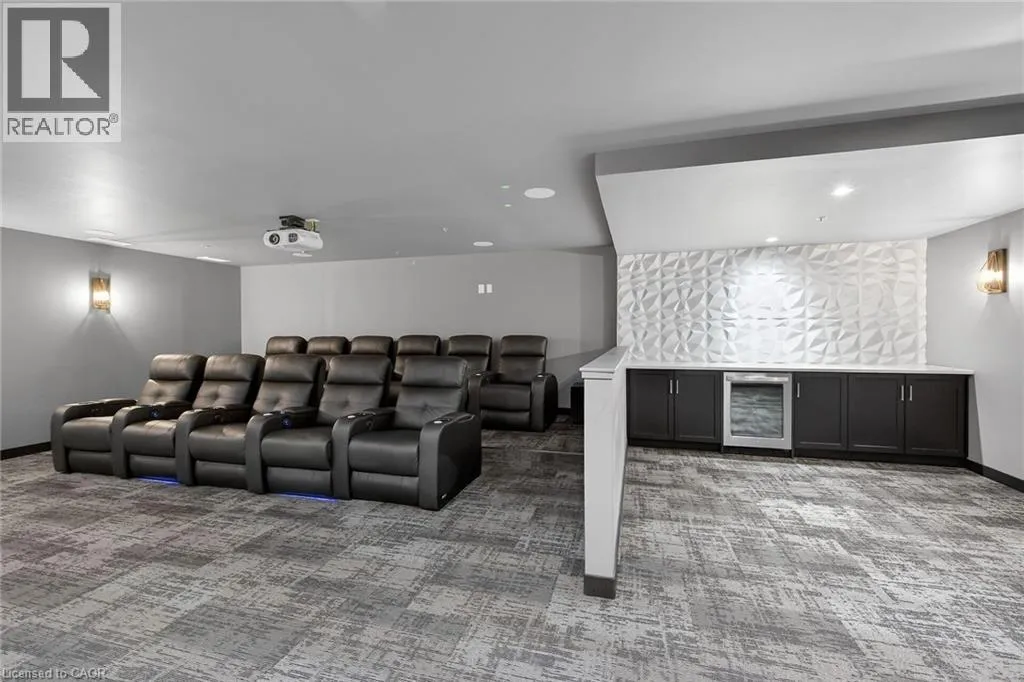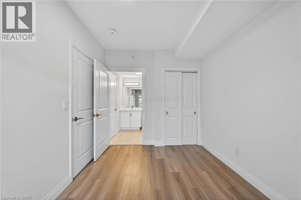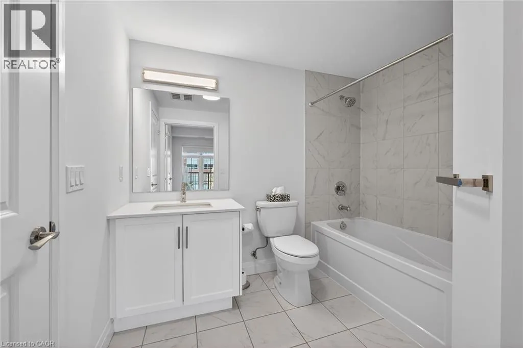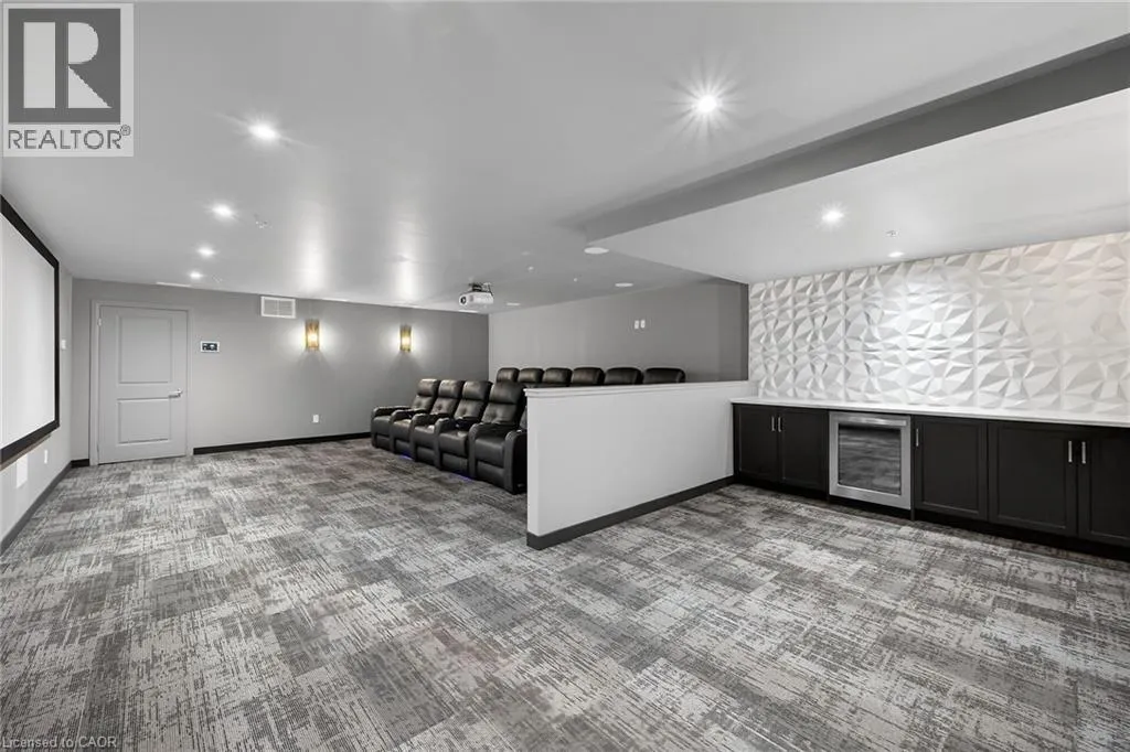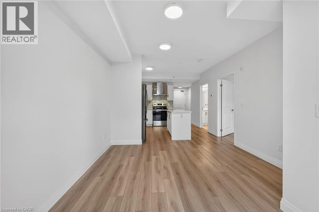 Fiddlers Green Rd to Wilson St W Immaculate 1 bedroom PLUS den condo located in a luxury low rise building in desirable Ancaster Village. Modern lobby, fitness studio, stylish party room, media room, rooftop outdoor entertaining space with putting green & BBQ area just to name a few of the excellent amenities. This open concept freshly painted unit is perfectly designed for comfort & style. The bright kitchen features a large island, breakfast bar, quartz countertops, backsplash & stainless steel appliances. The spacious bedroom offers ensuite privileges. The den provides a perfect space for a home office or a cozy reading nook. The condo is complete with a 4 piece bathroom & convenient in-suite laundry. Enjoy your morning coffee on the large balcony. Includes 1 underground parking space & a storage locker located just down the hall. Just minutes to Hwy 403, public transit, shopping, restaurants, parks & golfing! This condo offers a perfect blend of style, function & location! (id:27476)