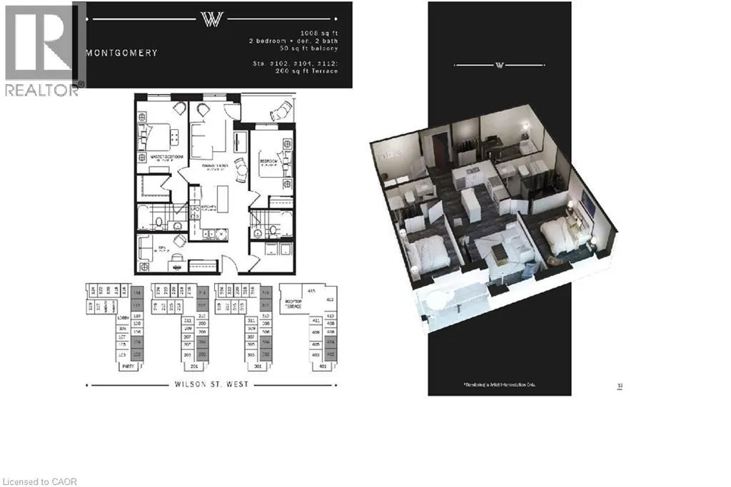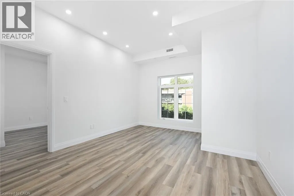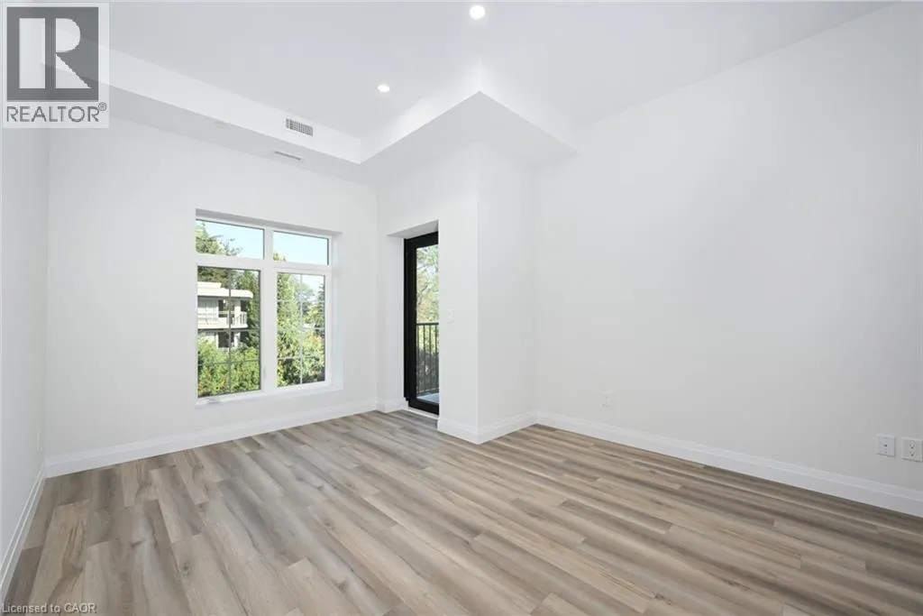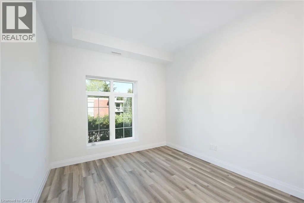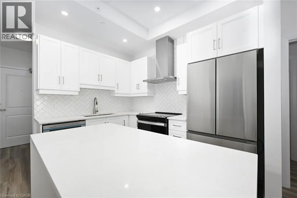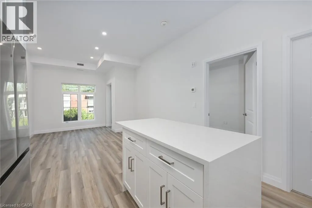 FIDDLERS GREEN WEST ON WILSON. Penthouse living at its finest. Brand new condo in the heart of Ancaster Village! Walk to schools, banks, restaurants, grocery stores, shopping & parks. The unit is facing a ravine and street with views of the valley and all the way to downtown. This 2 bedroom plus den allows for the 1008 sq ft of space to flow into each room beautifully. Open the terrace door and sit and enjoy the 50 sq ft balcony. The 2 modern baths have plenty of space with modern finishes and custom glass enclosures. The unit also features 9 foot high ceilings, pot lights and luxury vinyl flooring throughout. The numerous windows allow for natural light to pour in. The kitchen has quartz countertops, stainless steel appliances, breakfast bar and upgraded, full height cupboards. Laundry room is spacious and neat to allow for storage and function. This penthouse level unit offers a stunning rooftop entertaining space with putting green, BBQ area, fireplaces and lounge area. 2 lockers and 2 underground parking spaces included. In addition, there is also a Fitness studio, party room and media room. Easy highway access and walking trails near by. Security cameras and key fob entry. Stress free living in the heart of Ancaster! This on won't last (id:27476)