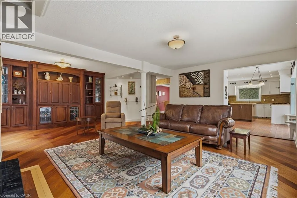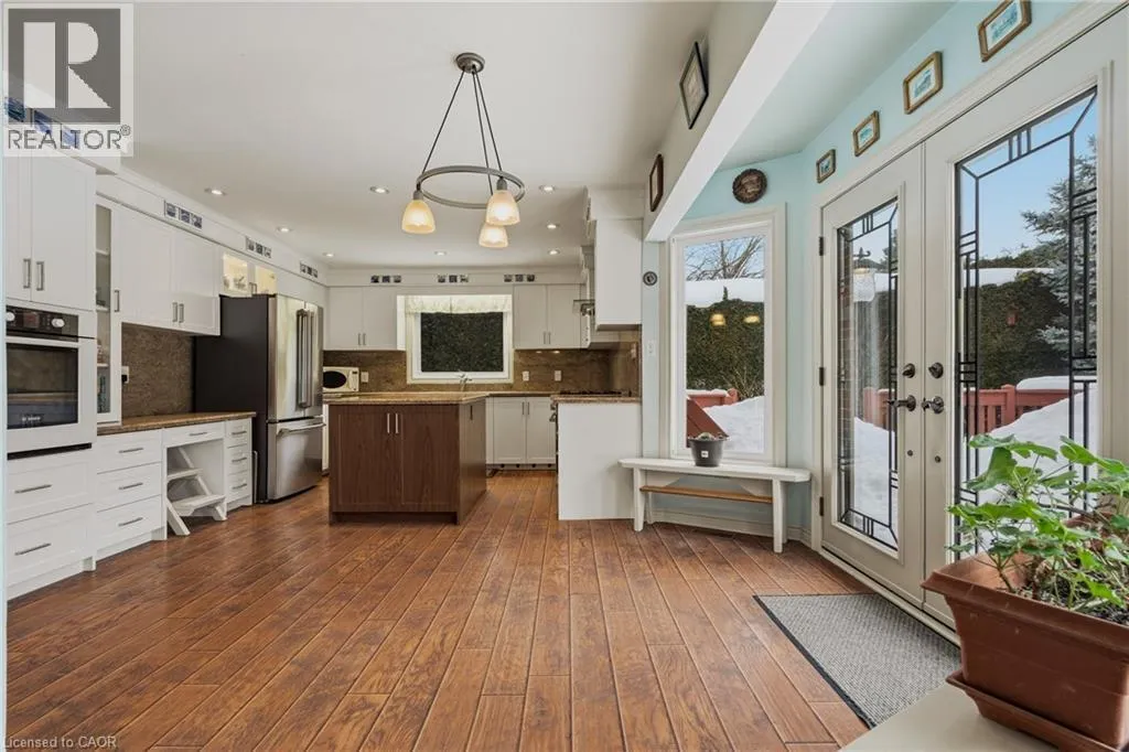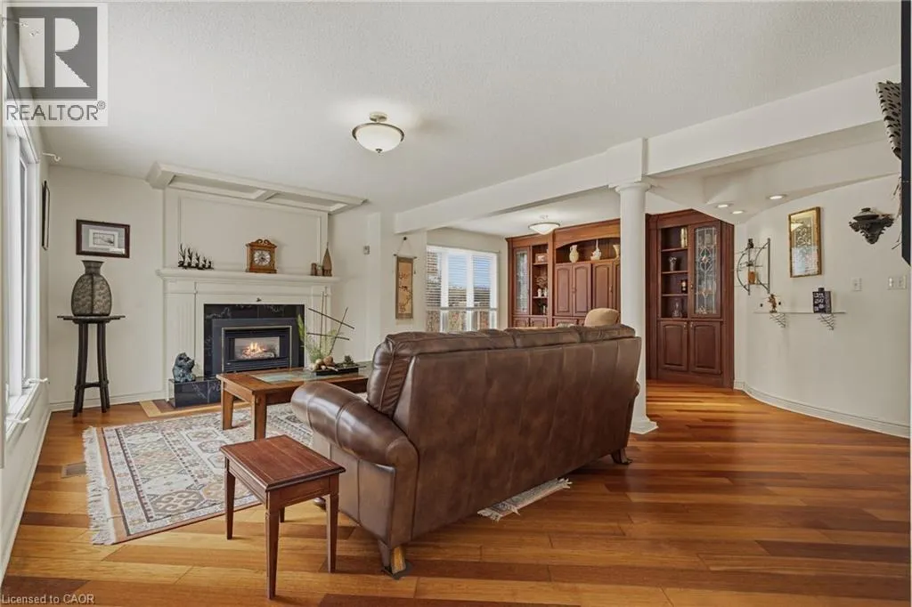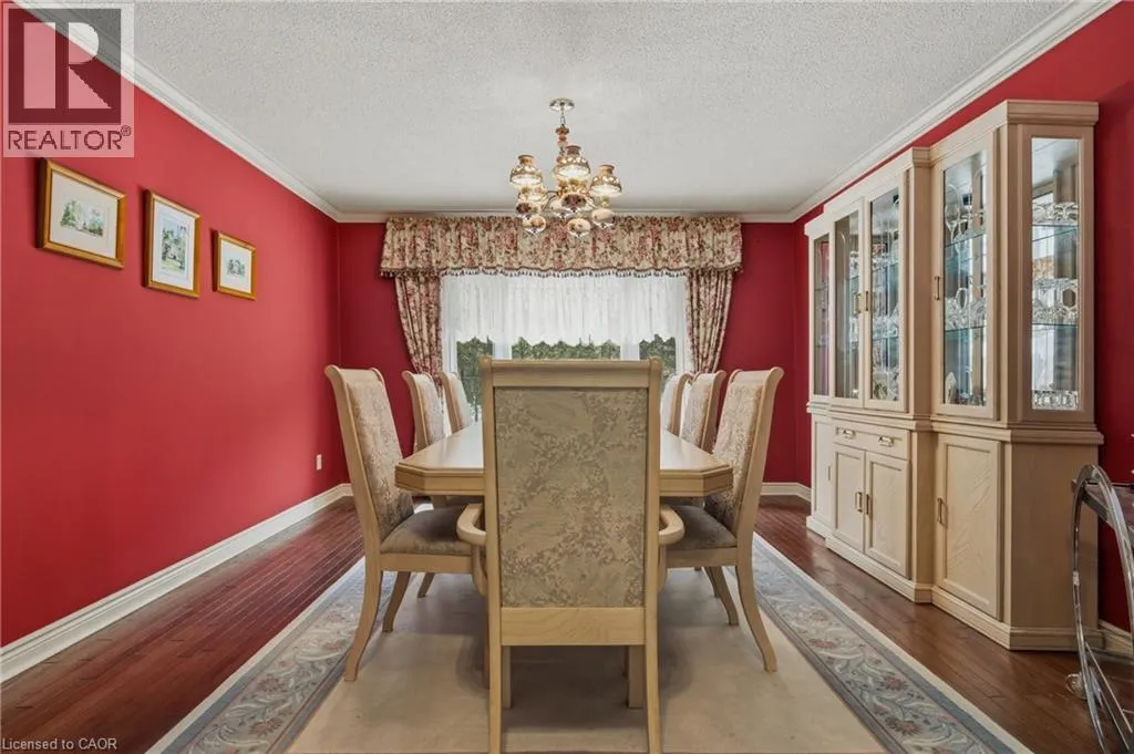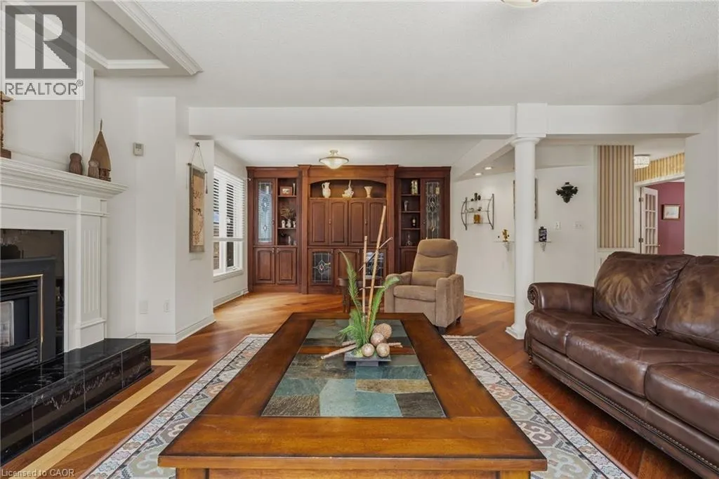 Garner Rd E to Miller Dr to Garden Ave Set in one of Ancasterâs most prestigious pockets, this impressive 4-bedroom, 3-bathroom home delivers over 3,500 sq ft of executive living â and exceptional value for the location. Truly enjoy the hardwood and tile flooring throughout, crown mouldings, a grand oak staircase, a formal living room with gas fireplace and built-in entertainment unit, a main floor family room with wall-to-wall bookshelf and dining room - both with French doors - designed for effortless entertaining. The kitchen is both stylish and functional, featuring extended pantry space and a bright eat-in dinette that flows seamlessly out to the expansive backyard deck - offering the perfect setting for quiet mornings or summer gatherings. Upstairs, the spacious primary suite boasts a sitting or dressing area, walk-in closet, and a luxurious six-piece ensuite with soaker tub, separate shower, and bidet. Three additional bedrooms are spacious and ideal for growing families or hosting guests in comfort, with one enjoying its own ensuite privilege. A rec room, a large laundry room with hanging rack, cold storage rooms, a cedar closet, and spacious utility room outfitted as a workshop await you in the partially finished basement. All of this in an upscale neighbourhood just minutes to highways, top-rated schools, golf, recreation centres, boutique shopping, dining, transit, and every amenity you need. A rare opportunity to secure space, quality, and location â without compromise. Some photos have been virtually staged. (id:27476)