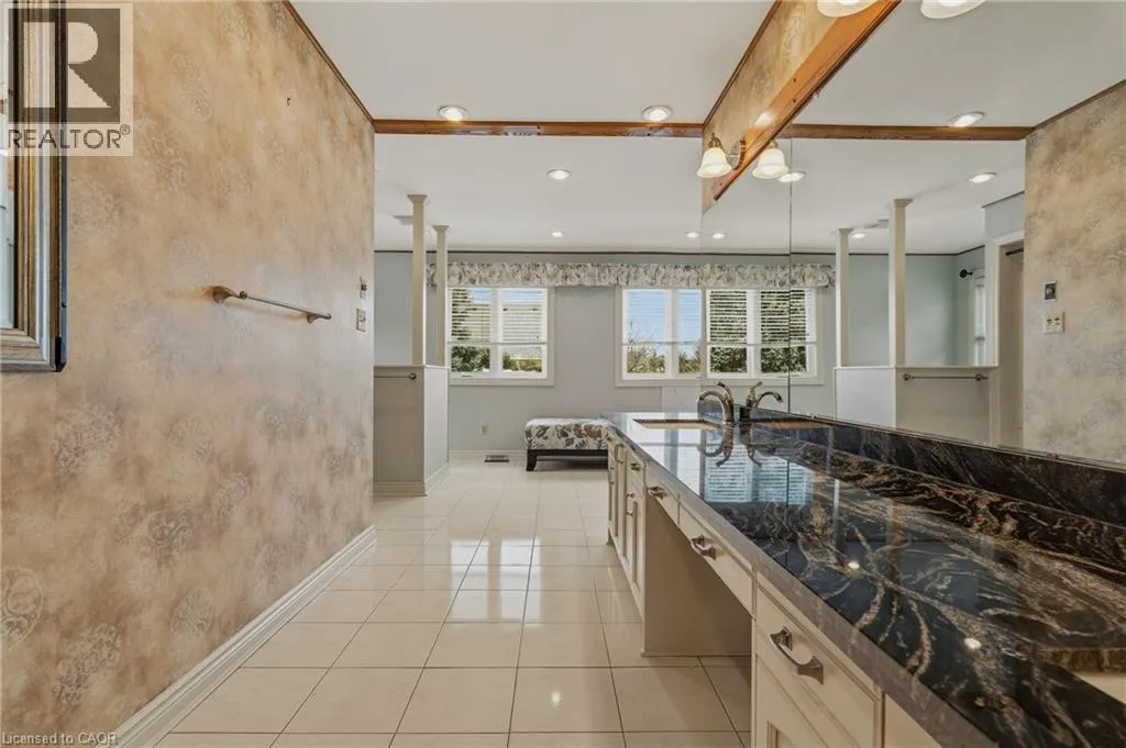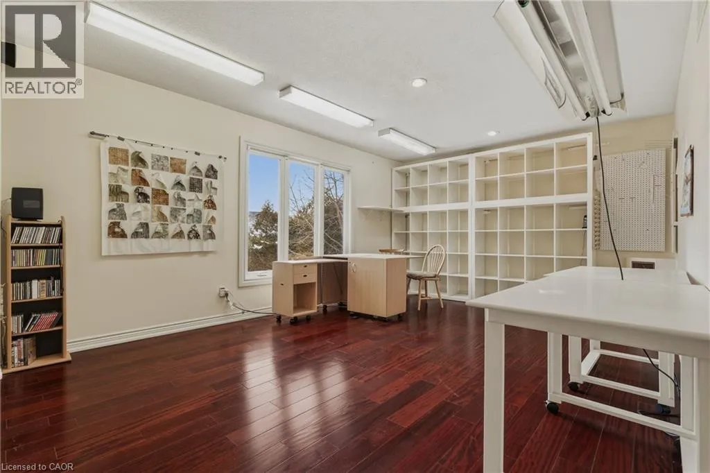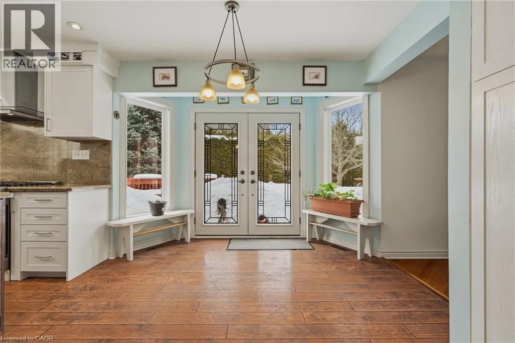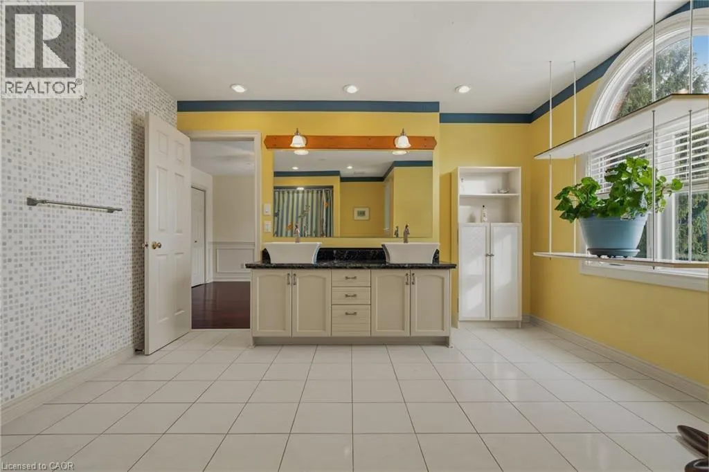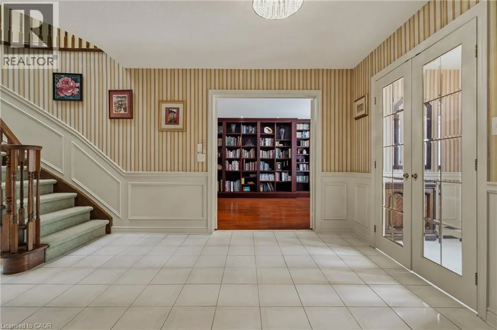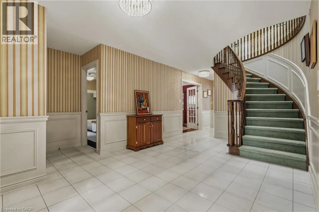 Garner Rd E to Miller Dr to Garden Ave Set in one of Ancasterâs most prestigious pockets, this impressive 4-bedroom, 3-bathroom home delivers over 3,500 sq ft of executive living â and exceptional value for the location. Truly enjoy the hardwood and tile flooring throughout, crown mouldings, a grand oak staircase, a formal living room with gas fireplace and built-in entertainment unit, a main floor family room with wall-to-wall bookshelf and dining room - both with French doors - designed for effortless entertaining. The kitchen is both stylish and functional, featuring extended pantry space and a bright eat-in dinette that flows seamlessly out to the expansive backyard deck - offering the perfect setting for quiet mornings or summer gatherings. Upstairs, the spacious primary suite boasts a sitting or dressing area, walk-in closet, and a luxurious six-piece ensuite with soaker tub, separate shower, and bidet. Three additional bedrooms are spacious and ideal for growing families or hosting guests in comfort, with one enjoying its own ensuite privilege. A rec room, a large laundry room with hanging rack, cold storage rooms, a cedar closet, and spacious utility room outfitted as a workshop await you in the partially finished basement. All of this in an upscale neighbourhood just minutes to highways, top-rated schools, golf, recreation centres, boutique shopping, dining, transit, and every amenity you need. A rare opportunity to secure space, quality, and location â without compromise. Some photos have been virtually staged. (id:27476)