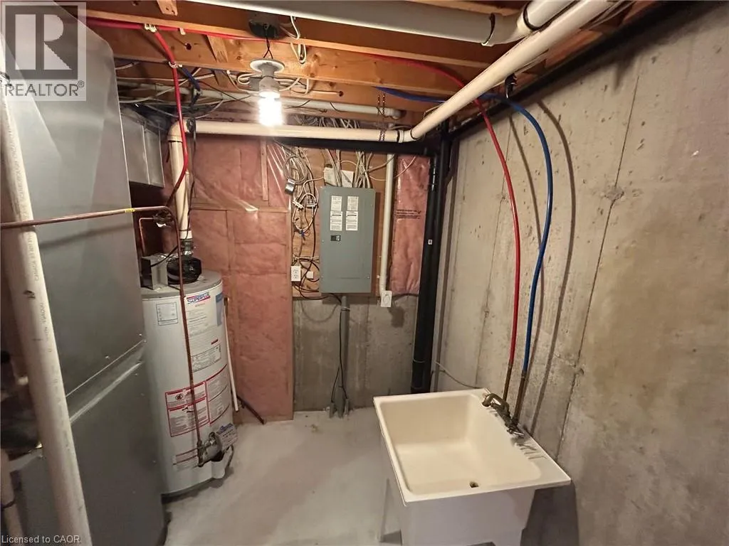OFF SHAVER BTWN WILSON & GARNER EXQUISITELY FINISHED, FULLY UPGRADED EXECUTIVE TOWNHOUSE IN BEAUTIFUL ANCASTER. In a quiet enclave nestled within Shaver Estates Park and Trails close to the New Power Centre with shopping, restaurants, health and wellness facilities and ease of access to Highway for Commuters. This quality built 3 bedroom, 2.5 bathroom home boasts approx 1518 sqft of living space with an additional 949 sqft fully finished basement space (per MPAC). Main floor is OPEN CONCEPT with 9ft. ceilings with desirable natural light, stylish kitchen with maple cabinetry, stainless steel appliances and sliding patio door to a private rear Patio. Master bedroom with ensuite bathroom and walk in-closet. Plus loft-perfect space for a home office. Convenient bedroom level laundry. Home features Hardwood Floors, California Shutters, generous closets/storage and single car garage. Condo fee covers building insurance, roof and exterior maintenance, snow removal, lawn care, irrigation system, weed control, pest control and even exterior window cleaning. The selling agent is the property owner. (id:27476)