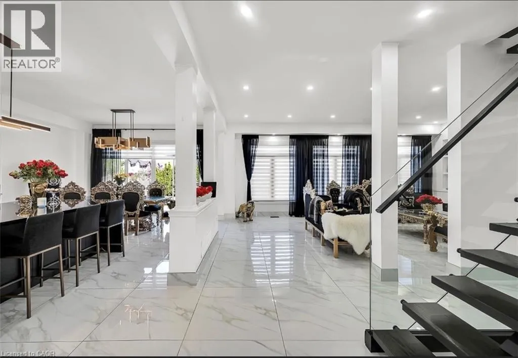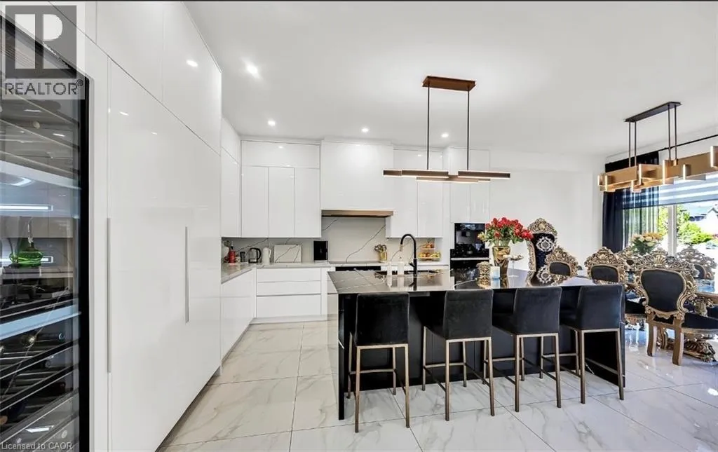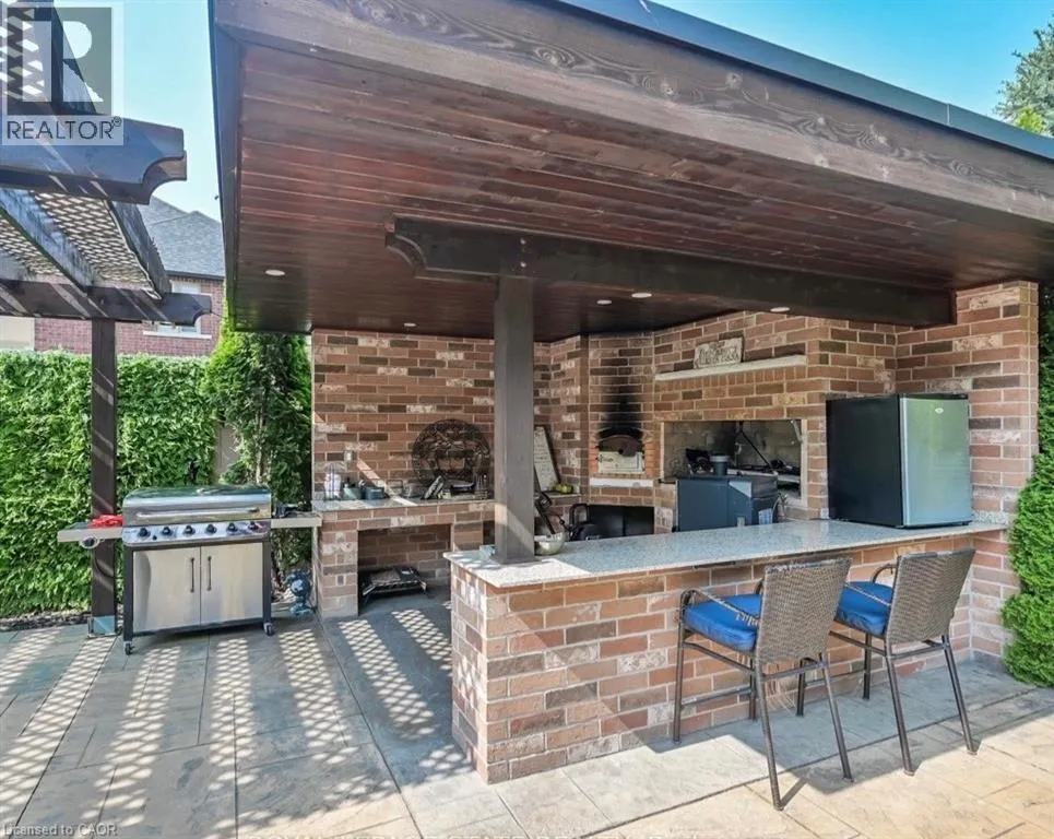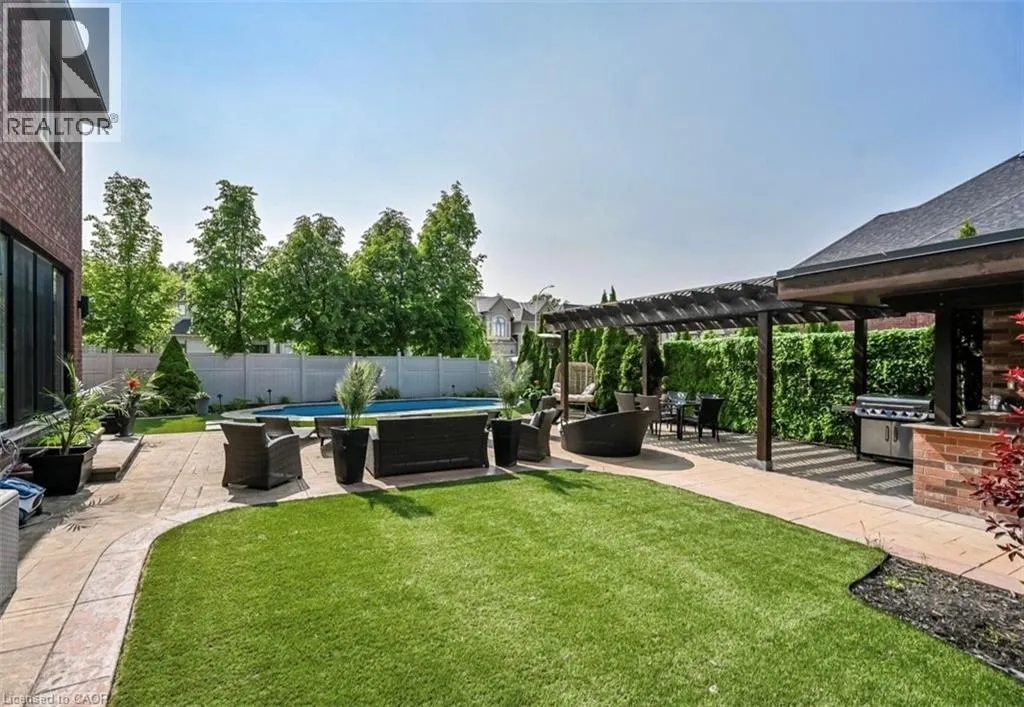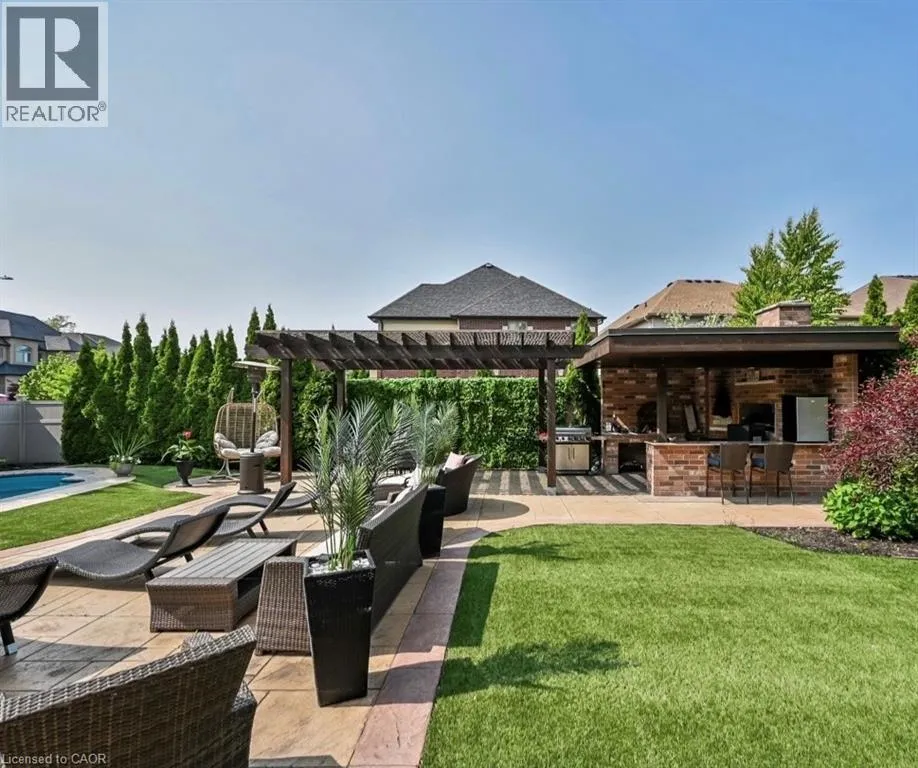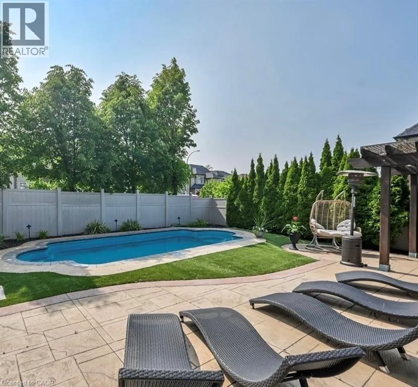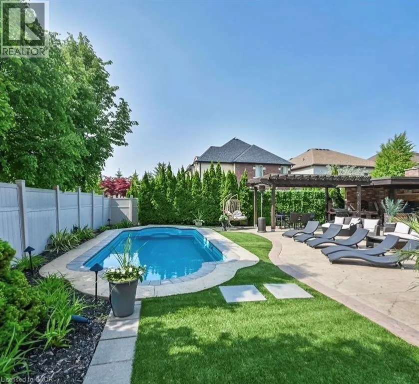 STONE CHURCH ROAD TO STONEHENGE DRIVE TO DIIORIO CIRCLE This beautiful and spacious 2 storey dream home, situated in Ancaster, in a prime location of Meadowlands directly facing the conservation area. This is truly remarkable and offers an unparalleled living experience, with 4+1 bedrooms, 4.5 bathrooms, over 4000 square feet of finished living space. The interior boasts desirable upgrades such as elegant granite countertops, a stunning kitchen, hardwood flooring throughout, and impressive high ceilings that enhance the sense of space and light. Furthermore, the property offers a fully finished basement, a significant added value, which includes a bedroom and washroom, a substantial bar with sink, 2 wine fridges and 2 beverage fridges, also a Den with a filter system. Additionally providing flexibility and privacy for a growing family or for hosting guests. The backyard has been thoughtfully designed as a private resort-like oasis, perfect for relaxation and entertainment. It features an inground pool for those warm summer days, a charming wood burning oven ideal for outdoor gatherings, and a patio where one can comfortably lounge and dine. Landscaped, both in the front and back yard. This property truly presents a wealth of additional features that must be seen to be fully appreciated and represents a significant opportunity for discerning buyers seeking luxury and convenience in a sought-after neighborhood. You'll find yourself just minutes away from all grocery stores, schools, shopping centers, etc. Plus you're conveniently close to highways like Lincoln Alexander Parkway and the 403 for easy commuting. (id:27476)