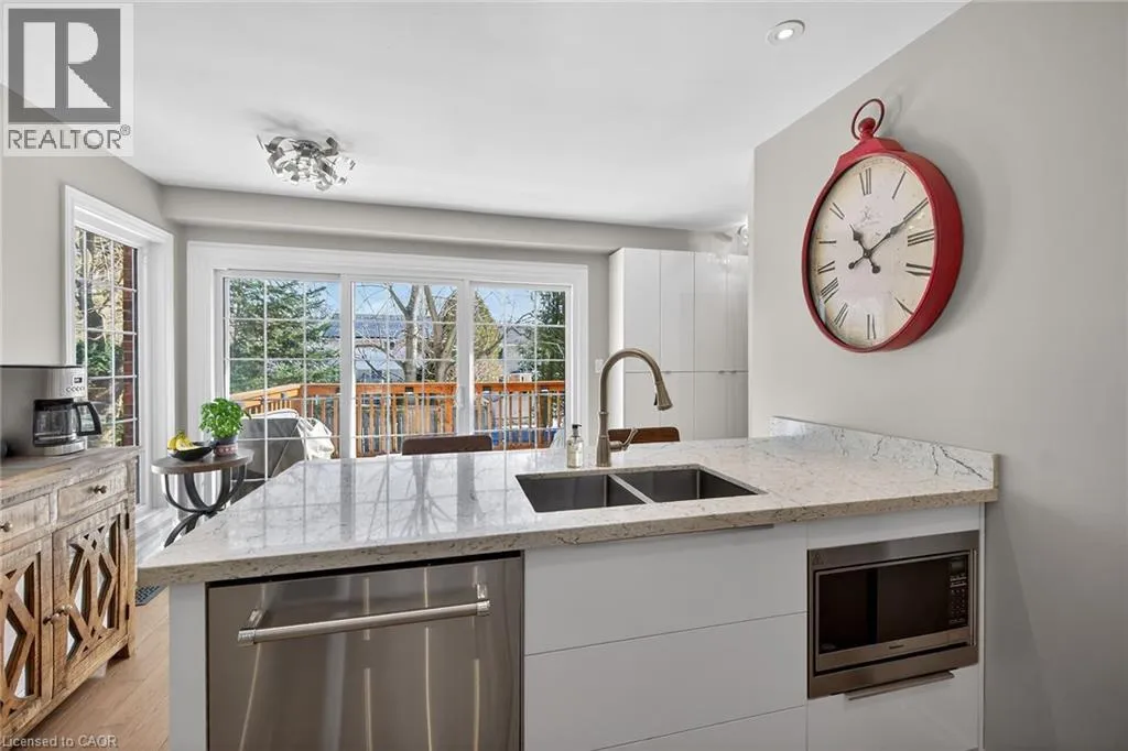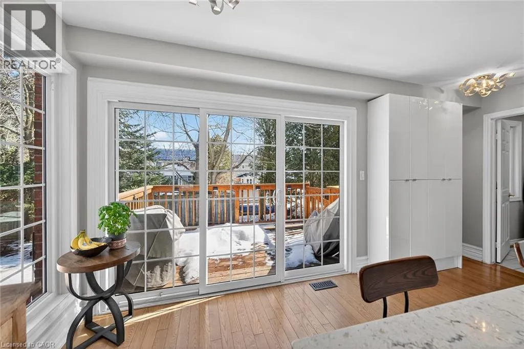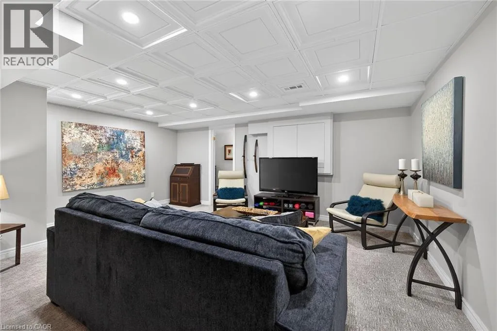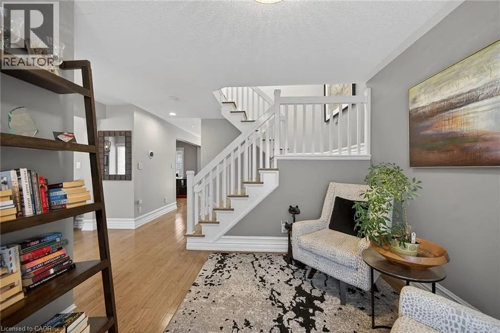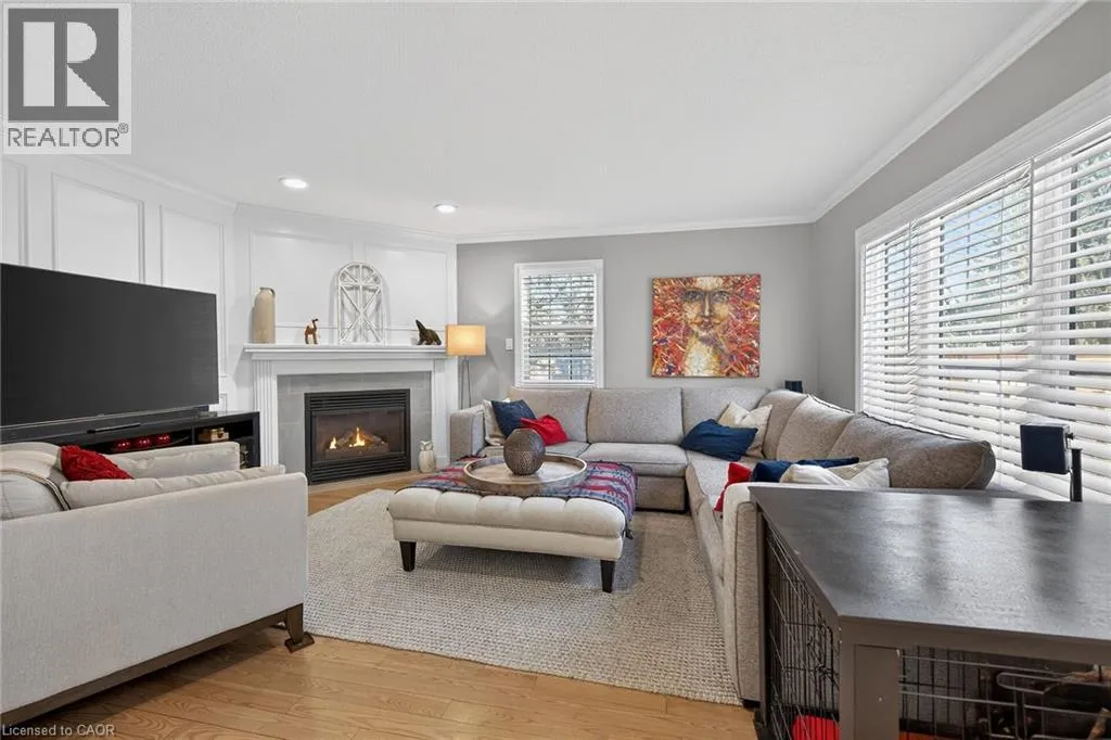 Wilson St. W. between Amberly Blvd. & Hamilton Dr. Spacious 2-storey end-unit condo townhouse providing 2946 sq ft of beautifully updated living space in sought-after Ancaster. This bright and airy home features vaulted ceilings, oversized windows and an abundance of skylights, filling the interior with natural light. Thoughtfully designed layout includes a ground-floor family room with cozy gas fireplace, as well as separate living and dining rooms ideal for entertaining. Elegant ash flooring runs throughout the first and second floors. The stunning renovated kitchen showcases white high-gloss cabinetry, a full pantry wall, premium quartz countertops, glass backsplash, pot lights, and top-of-the-line stainless steel AGA appliances. The basement was renovated in 2020, featuring a spacious recreation room, office space, additional bedroom, and a large 3-piece bathroom. A rare opportunity to enjoy spacious, low-maintenance living (including snow removal from driveway and walkway), close to highway access, shopping, and amenities in one of Ancaster's most desirable neighborhoods. RSA. SQFTA. (id:27476)