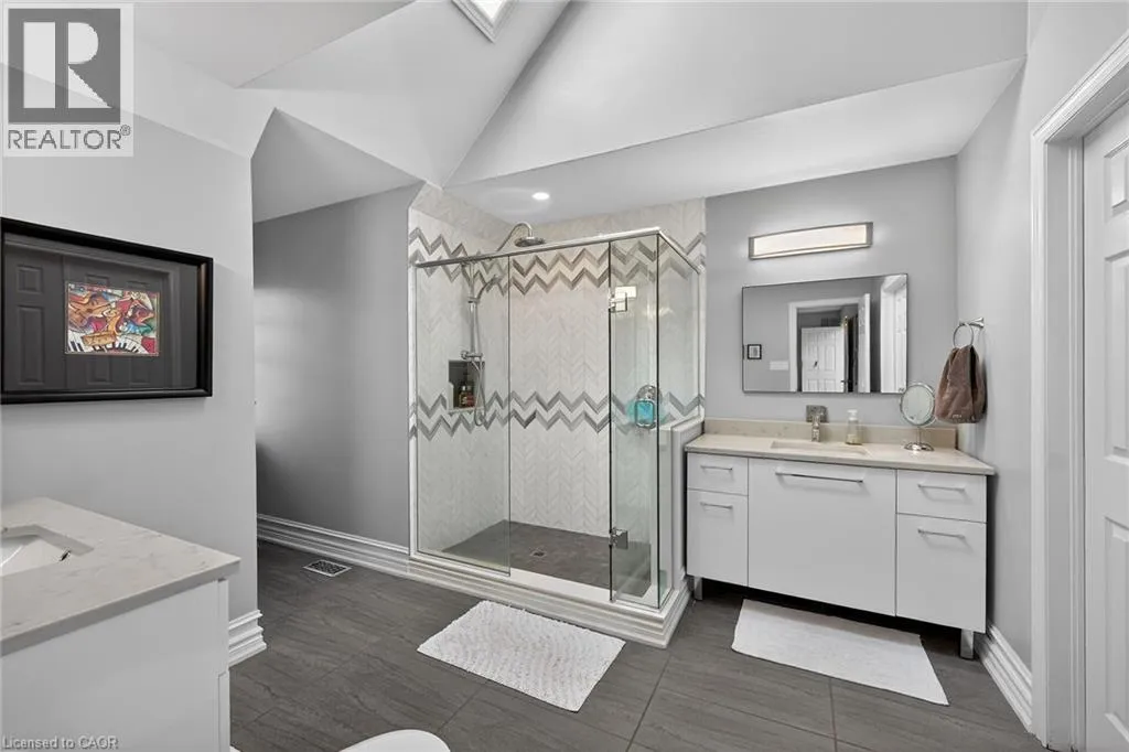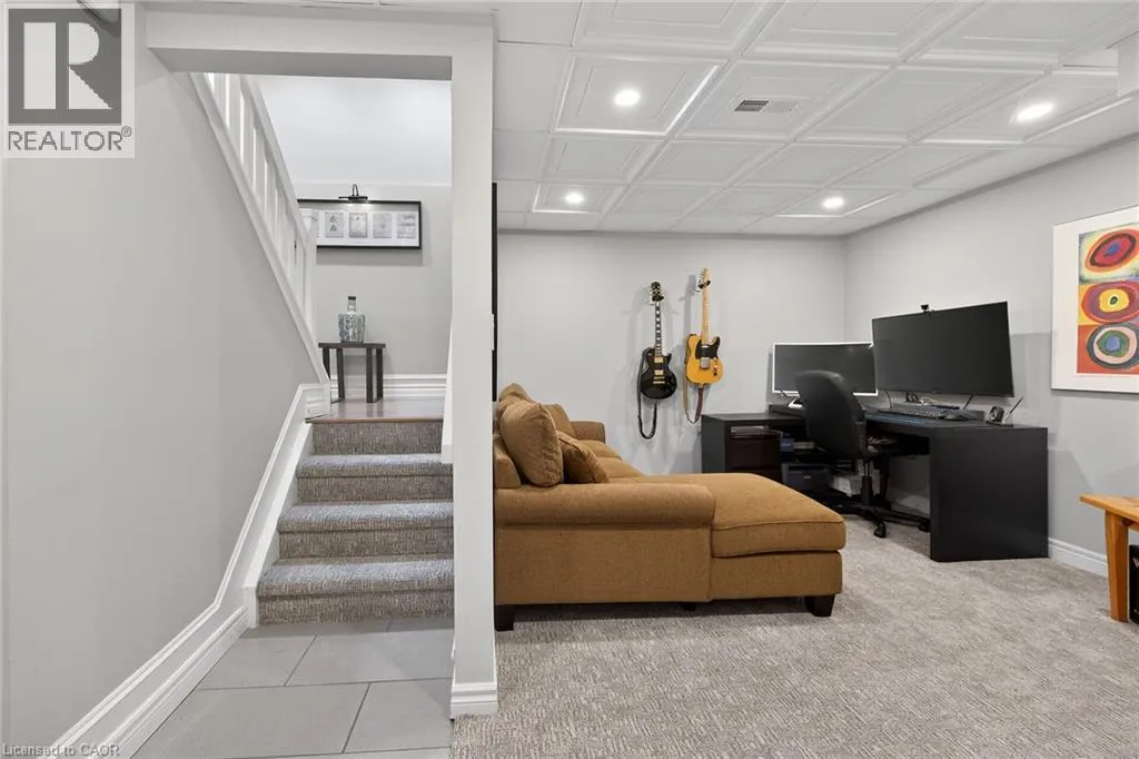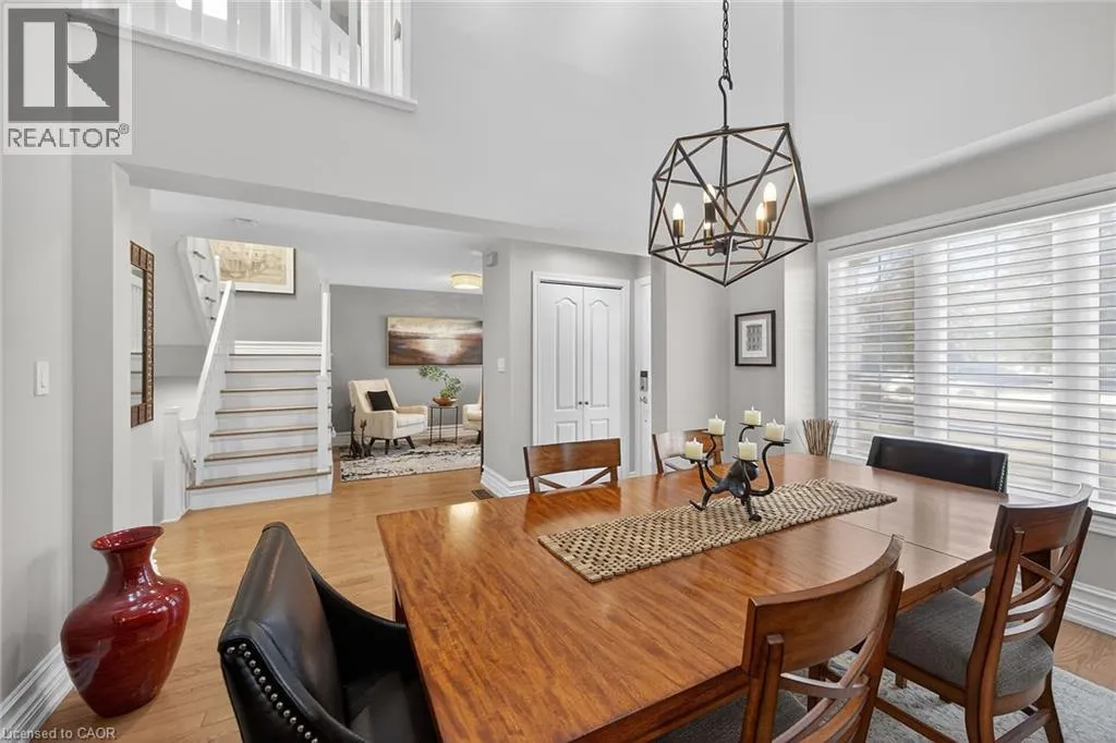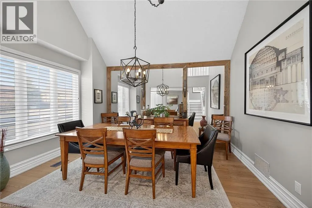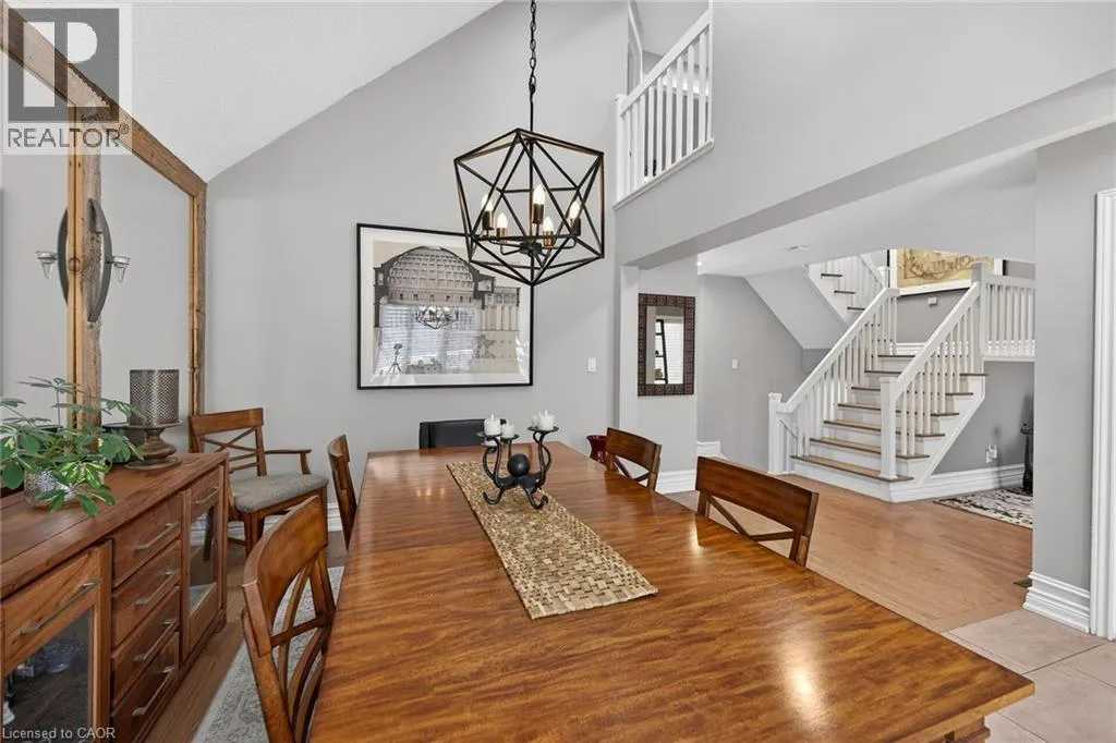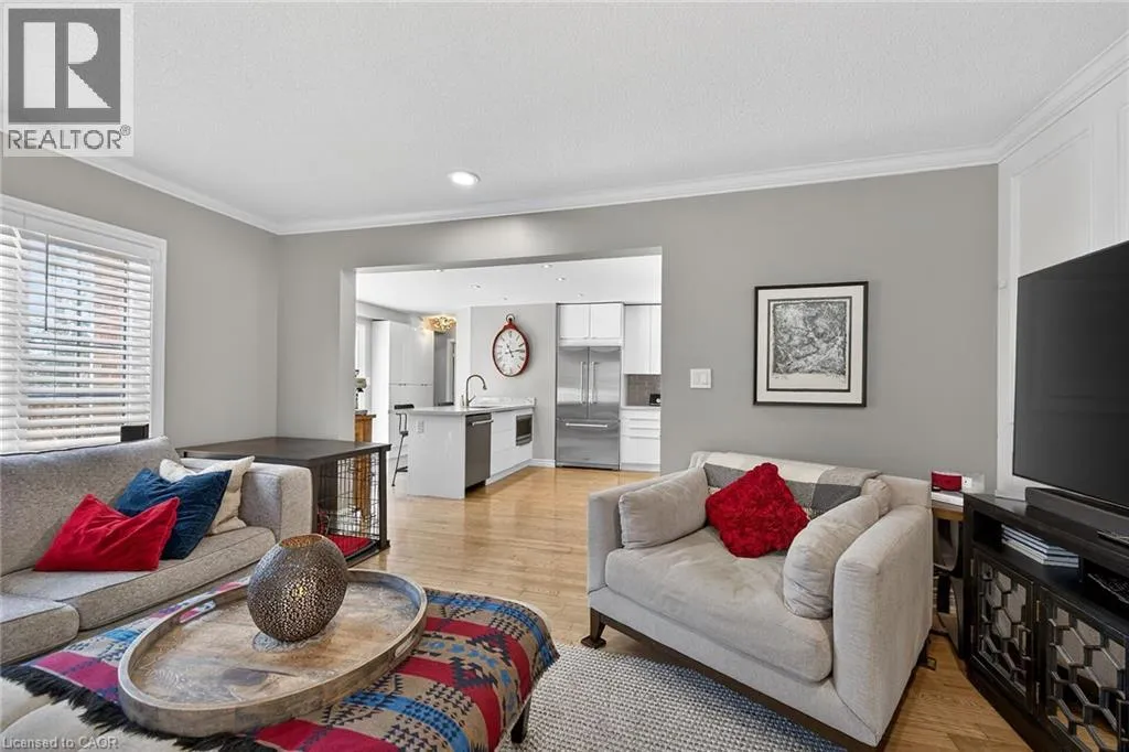Wilson St. W. between Amberly Blvd. & Hamilton Dr. Spacious 2-storey end-unit condo townhouse providing 2946 sq ft of beautifully updated living space in sought-after Ancaster. This bright and airy home features vaulted ceilings, oversized windows and an abundance of skylights, filling the interior with natural light. Thoughtfully designed layout includes a ground-floor family room with cozy gas fireplace, as well as separate living and dining rooms ideal for entertaining. Elegant ash flooring runs throughout the first and second floors. The stunning renovated kitchen showcases white high-gloss cabinetry, a full pantry wall, premium quartz countertops, glass backsplash, pot lights, and top-of-the-line stainless steel AGA appliances. The basement was renovated in 2020, featuring a spacious recreation room, office space, additional bedroom, and a large 3-piece bathroom. A rare opportunity to enjoy spacious, low-maintenance living (including snow removal from driveway and walkway), close to highway access, shopping, and amenities in one of Ancaster's most desirable neighborhoods. RSA. SQFTA. (id:27476)