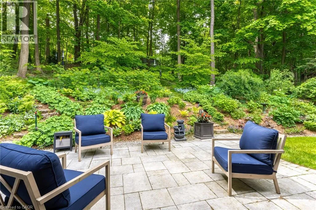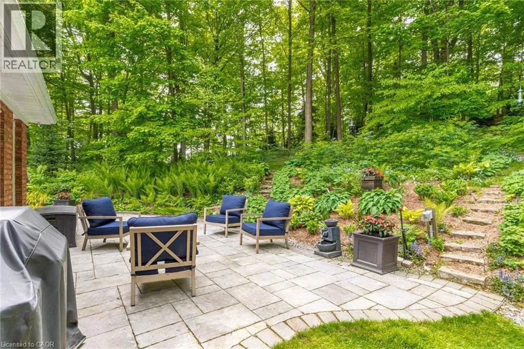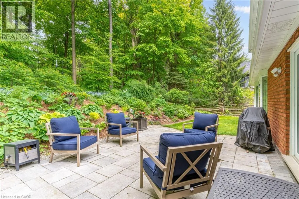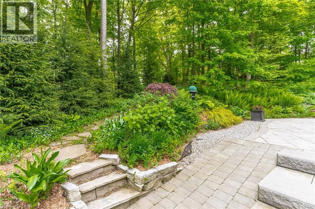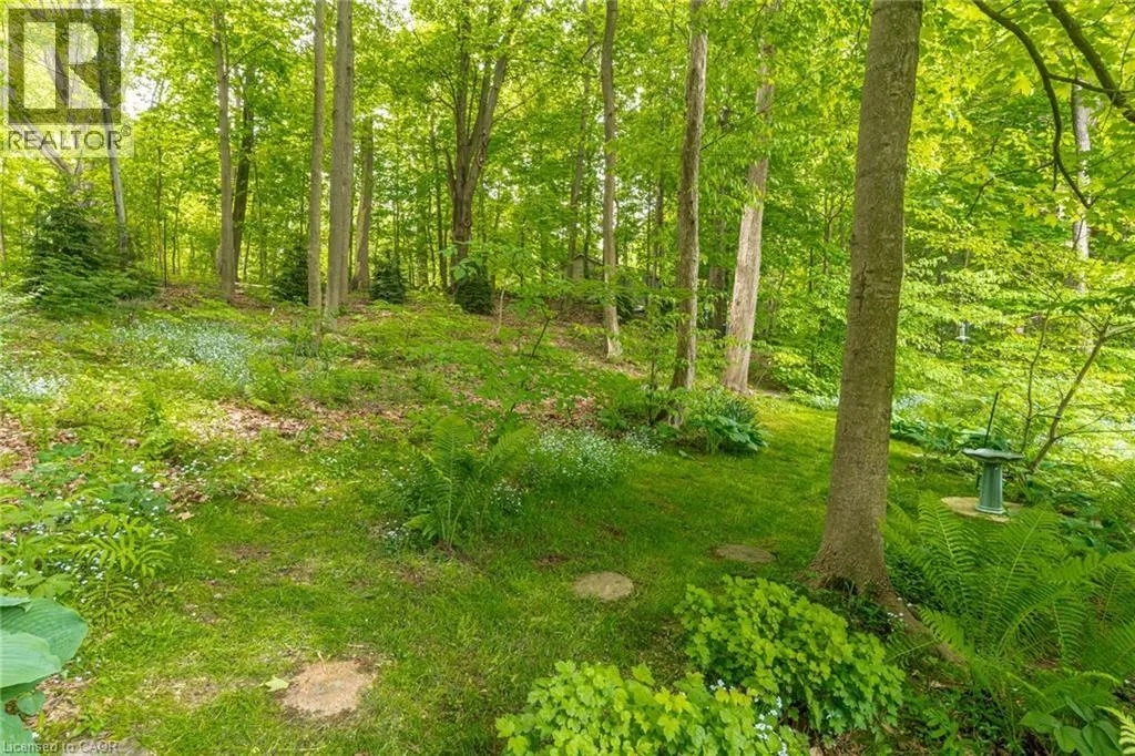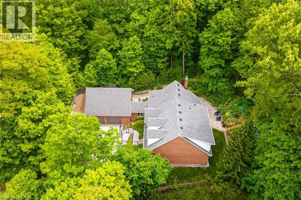From Wilson St E turn West onto Sulphur Springs Rd. The property is on the South side of Sulphur Springs between Mansfield Dr and Lovers Lane. Luxury bungaloft surrounded by nature on Sulphur Springs. Welcome to one of Ancasterâs most prestigious and picturesque streetsâa tranquil, tree-lined stretch of Sulphur Springs Road just steps to Ancaster Village, the Ancaster Memorial Arts Centre, the Hamilton Golf & Country Club, and the scenic trails of Dundas Valley Conservation. Itâs a rare opportunity to live in a location that offers both natural beauty and walkable convenience to some of Ancasterâs most desirable amenities. Tucked away on a professionally landscaped, nearly half-acre lot, this custom-built 3-bedroom bungaloft is surrounded by nature and offers a lifestyle defined by elegance and comfort. Extensively renovated between 2017 to 2025 by top-tier trades, this home showcases quality craftsmanship and refined finishes throughout, all in a private, wooded setting. From the exposed aggregate driveway to the oversized double garage, every approach reflects pride of ownership. Inside, engineered hardwood and Italian porcelain tile flooring set a sophisticated tone. At the heart of the home is a fully redesigned chefâs kitchen with quartz countertops, premium Miele and KitchenAid appliances, in-floor radiant heating, and expansive windows that frame stunning views of the forest beyond. The great room features a cathedral ceiling and gas fireplace, creating a warm and inviting atmosphere, while the formal dining room is ideal for hosting. Designed for effortless one-floor living, the main level includes a primary suite with brand new ensuite vanity, an elegant powder room, and a spacious mudroom/laundry with garage access. Upstairs, two generous bedrooms and a beautifully renovated bathroom offer comfort for family or guests. The full-height basement adds even more potential, enhanced by a separate walk-up entrance to the garageâperfect for a future in-law suite, studio, or custom recreation space. A truly exceptional home where craftsmanship, setting, and lifestyle meet. See extensive list of upgrades. (id:27476)