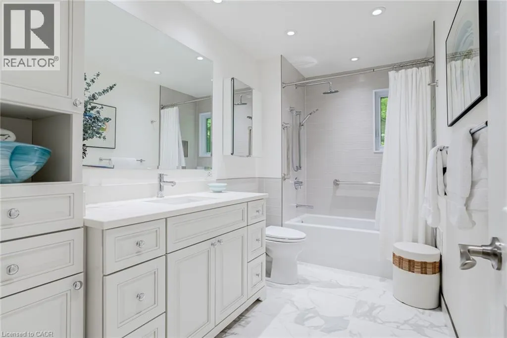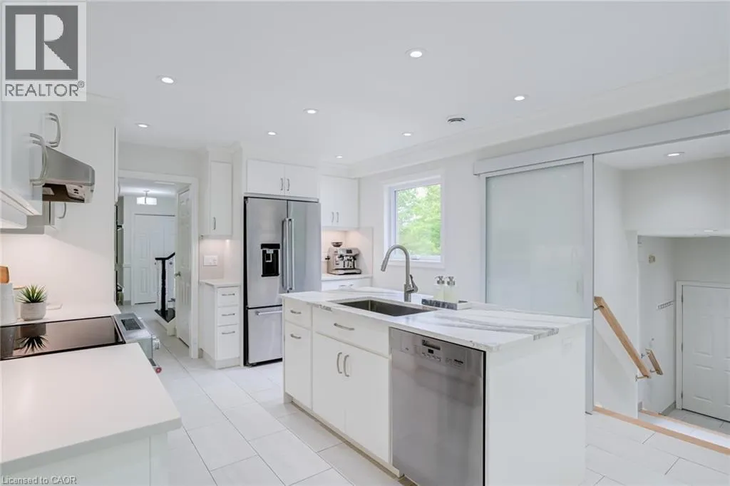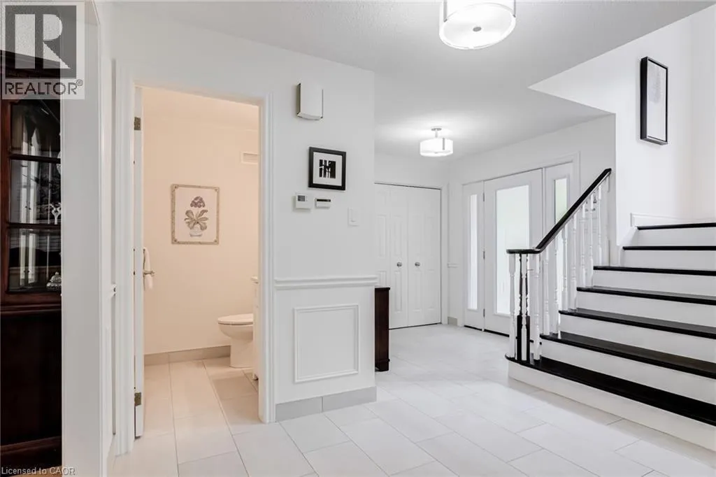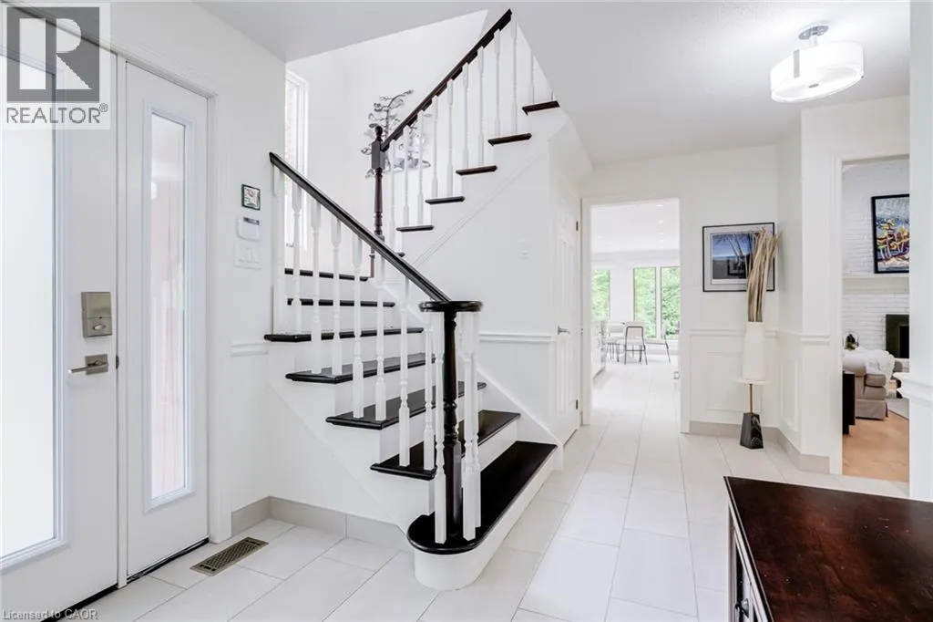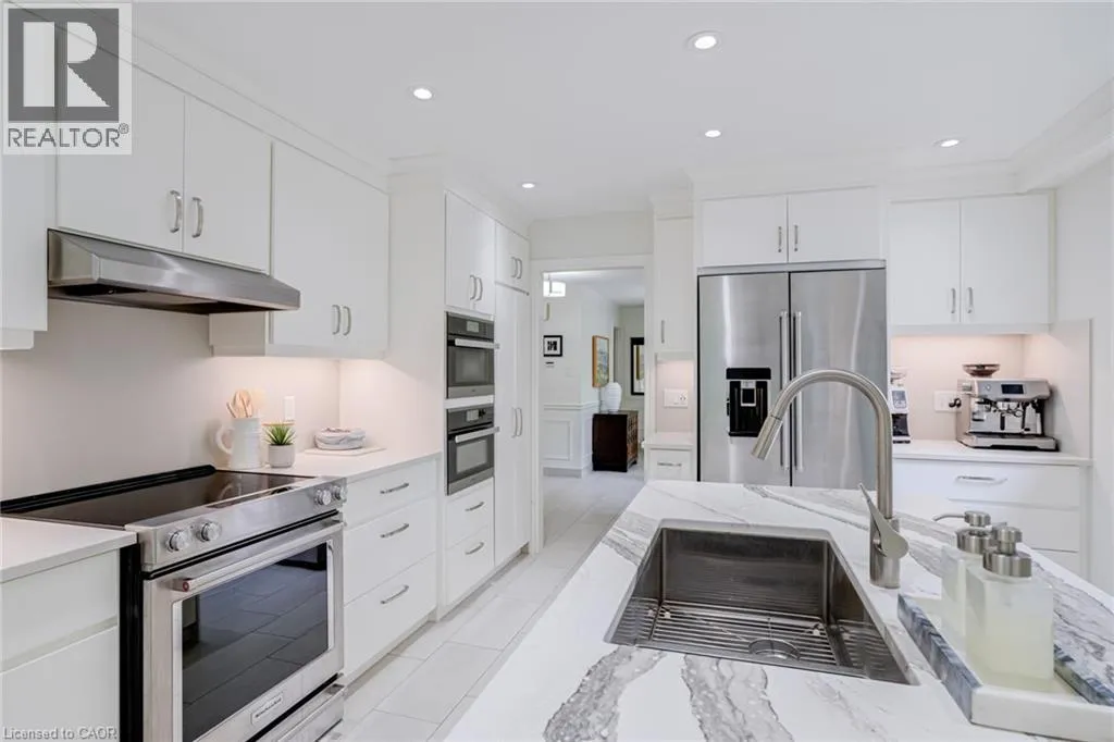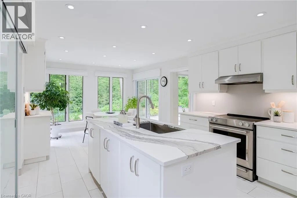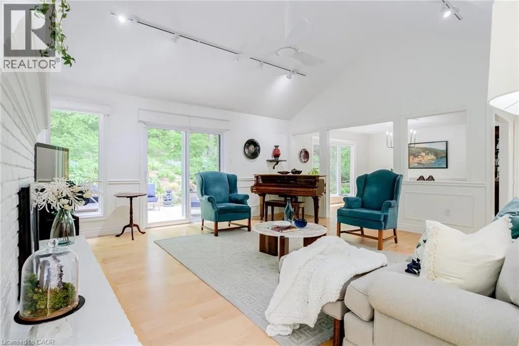 From Wilson St E turn West onto Sulphur Springs Rd. The property is on the South side of Sulphur Springs between Mansfield Dr and Lovers Lane. Luxury bungaloft surrounded by nature on Sulphur Springs. Welcome to one of Ancasterâs most prestigious and picturesque streetsâa tranquil, tree-lined stretch of Sulphur Springs Road just steps to Ancaster Village, the Ancaster Memorial Arts Centre, the Hamilton Golf & Country Club, and the scenic trails of Dundas Valley Conservation. Itâs a rare opportunity to live in a location that offers both natural beauty and walkable convenience to some of Ancasterâs most desirable amenities. Tucked away on a professionally landscaped, nearly half-acre lot, this custom-built 3-bedroom bungaloft is surrounded by nature and offers a lifestyle defined by elegance and comfort. Extensively renovated between 2017 to 2025 by top-tier trades, this home showcases quality craftsmanship and refined finishes throughout, all in a private, wooded setting. From the exposed aggregate driveway to the oversized double garage, every approach reflects pride of ownership. Inside, engineered hardwood and Italian porcelain tile flooring set a sophisticated tone. At the heart of the home is a fully redesigned chefâs kitchen with quartz countertops, premium Miele and KitchenAid appliances, in-floor radiant heating, and expansive windows that frame stunning views of the forest beyond. The great room features a cathedral ceiling and gas fireplace, creating a warm and inviting atmosphere, while the formal dining room is ideal for hosting. Designed for effortless one-floor living, the main level includes a primary suite with brand new ensuite vanity, an elegant powder room, and a spacious mudroom/laundry with garage access. Upstairs, two generous bedrooms and a beautifully renovated bathroom offer comfort for family or guests. The full-height basement adds even more potential, enhanced by a separate walk-up entrance to the garageâperfect for a future in-law suite, studio, or custom recreation space. A truly exceptional home where craftsmanship, setting, and lifestyle meet. See extensive list of upgrades. (id:27476)
