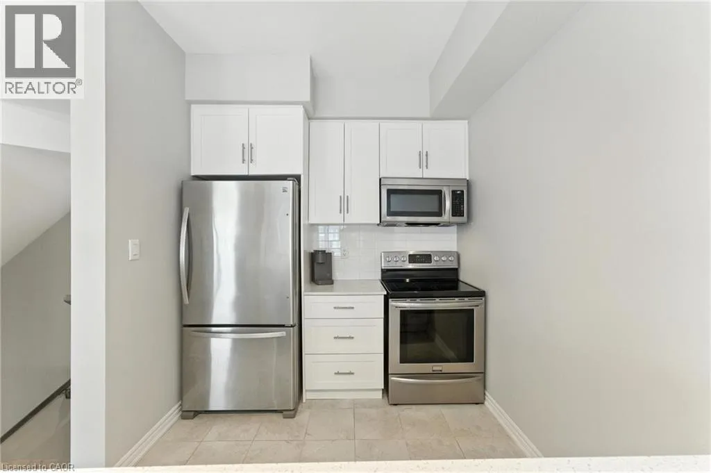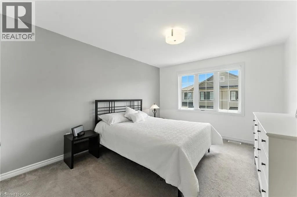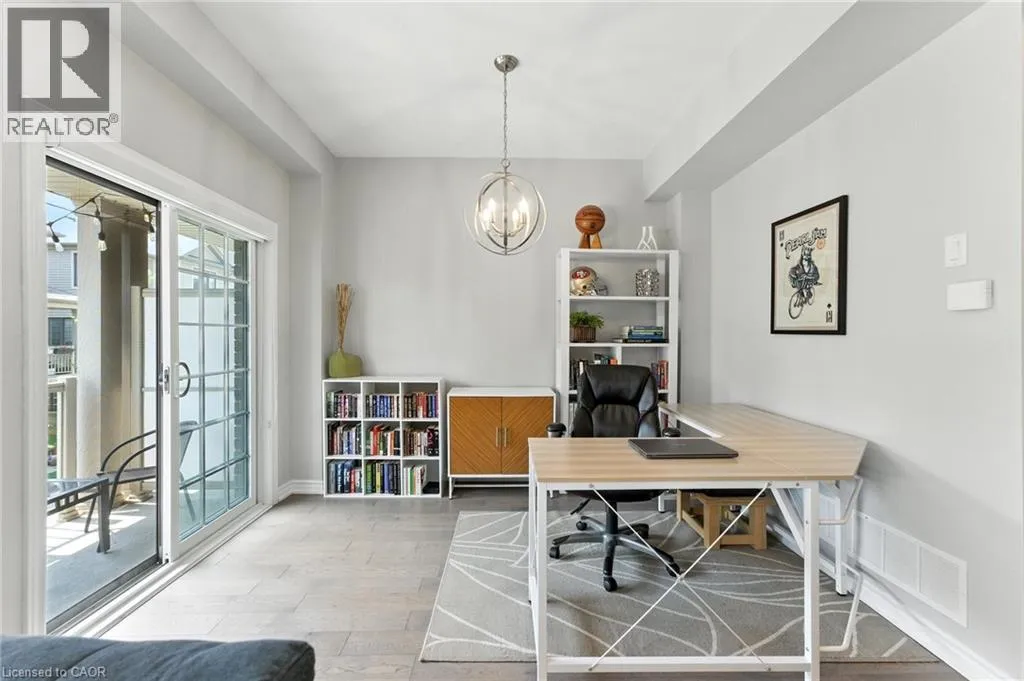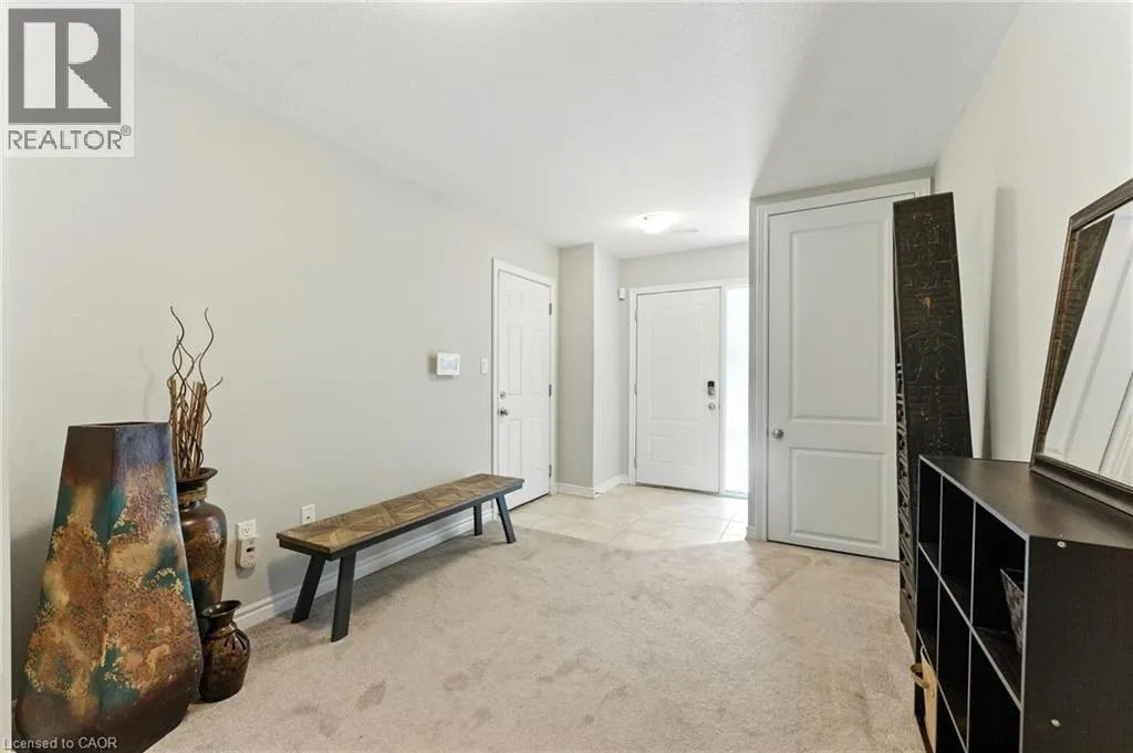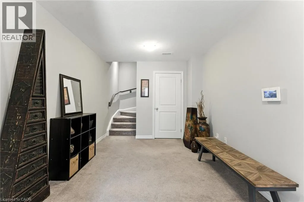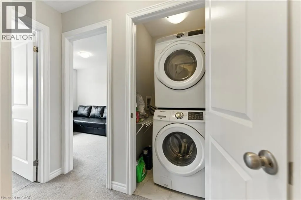 Welcome to this bright and spacious 2-bedroom, 2-bathroom townhome nestled in a quiet and desirable Ancaster neighbourhood. Designed with both comfort and functionality in mind, this home wonât disappoint! The main floor features a versatile multi purpose den, perfect for a home office, workout area, or cozy retreat, along with a large closet for ample storage. Upstairs, discover a stunning open-concept living space bathed in natural light from expansive windows and patio doors leading to a Juliet balcony. Entertain with ease in the upgraded kitchen, complete with stainless steel appliances, quartz countertops, pot lights, a breakfast bar that comfortably seats four, and a seamless flow into the dining area. The living room is equally inviting, featuring wide-plank hardwood floors and brilliant natural light by day, transitioning to warm, ambient lighting at night. The third floor offers an upgraded primary bedroom with a generous walk-in closet and a large window that fills the space with light. A spacious second bedroom also features a walk-in closet, offering plenty of room for guests, family, or additional office space. Convenient bedroom-level laundry adds modern practicality, while the main bathroom impresses with a double vanity and a sleek glass-enclosed shower. Ideally located just minutes from the vibrant Meadowlands shopping and dining district, highway access, and scenic nature trails, ensuring the perfect balance of urban convenience and peaceful surroundings. (id:27476)