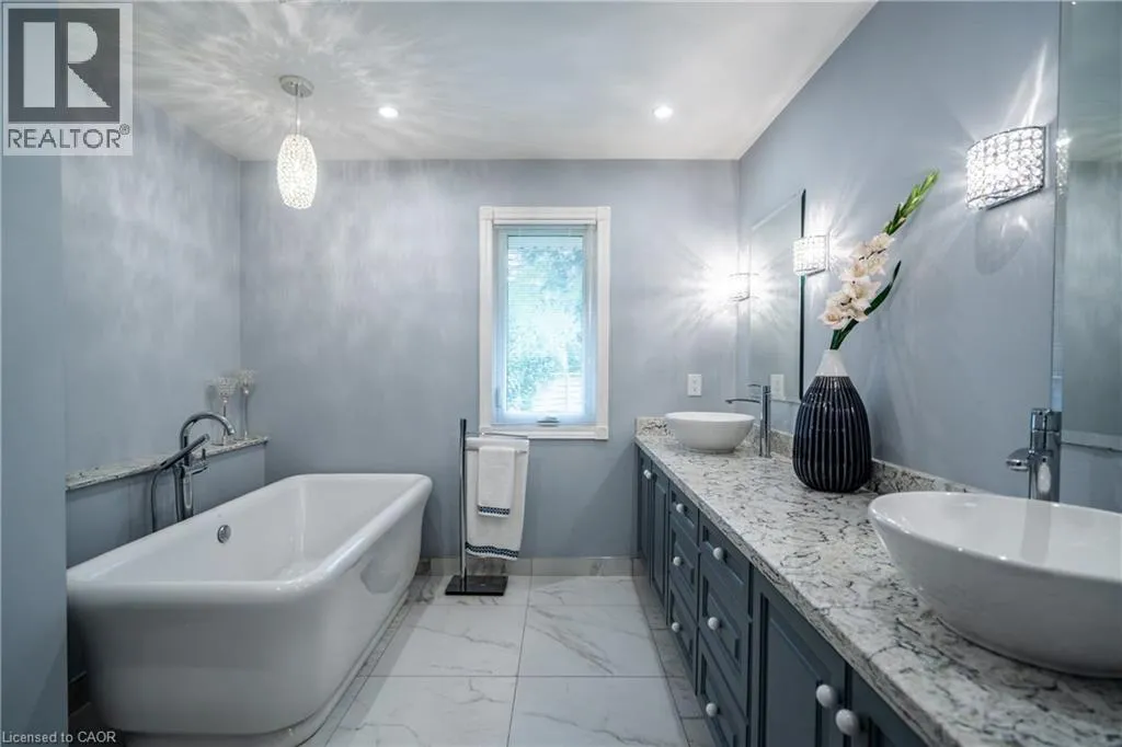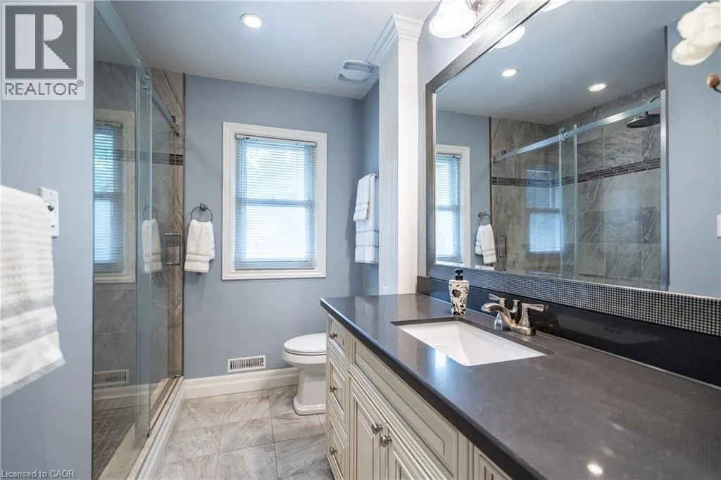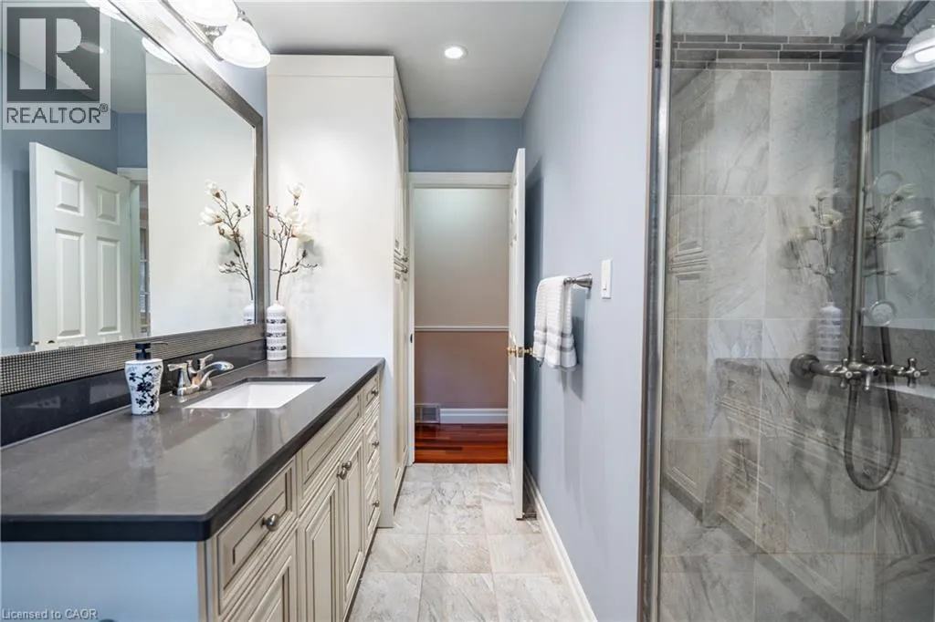 Lovers Lane to Parker to Hadley Step into something special at 98 Hadley Drive-a rare and captivating 4-bedroom, 3-bathroom bungalow with 3,231 sqft of total living space, seton an impressive corner lot in one of Ancaster's most coveted neighbourhoods. Thoughtfully updated and beautifully maintained, this homeblends timeless charm with modern comfort in all the right ways. From the moment you walk in, you'll feel the warmth of the sun-filled diningarea with skylight, the inviting family room and formal living room each with its own fireplace-and the custom-designed kitchen built foreveryday life and entertaining alike. The expansive primary suite feels like a private retreat, featuring a walk-in closet and a spa-like ensuitecomplete with heated floors, a soaker tub, and double sinks. Plush carpeting in the bedrooms offers comfort, while the finished lower level-with aseparate entrance, full bathroom, and generous rec space-adds flexibility for multi-generational living, guests, or your dream home office. Abright, modern laundry area, dedicated workshop, and ample storage space add even more function. Outside, the oversized double car garageand wide driveway offer room for all your vehicles and toys. The real showstopper? The private, fenced backyard with space to dine, play,unwind-and even room for a future inground pool. This is more than a home-it's a lifestyle. 98 Hadley is where memories are made, wherecomfort meets convenience, and where your next chapter begins. (id:27476)