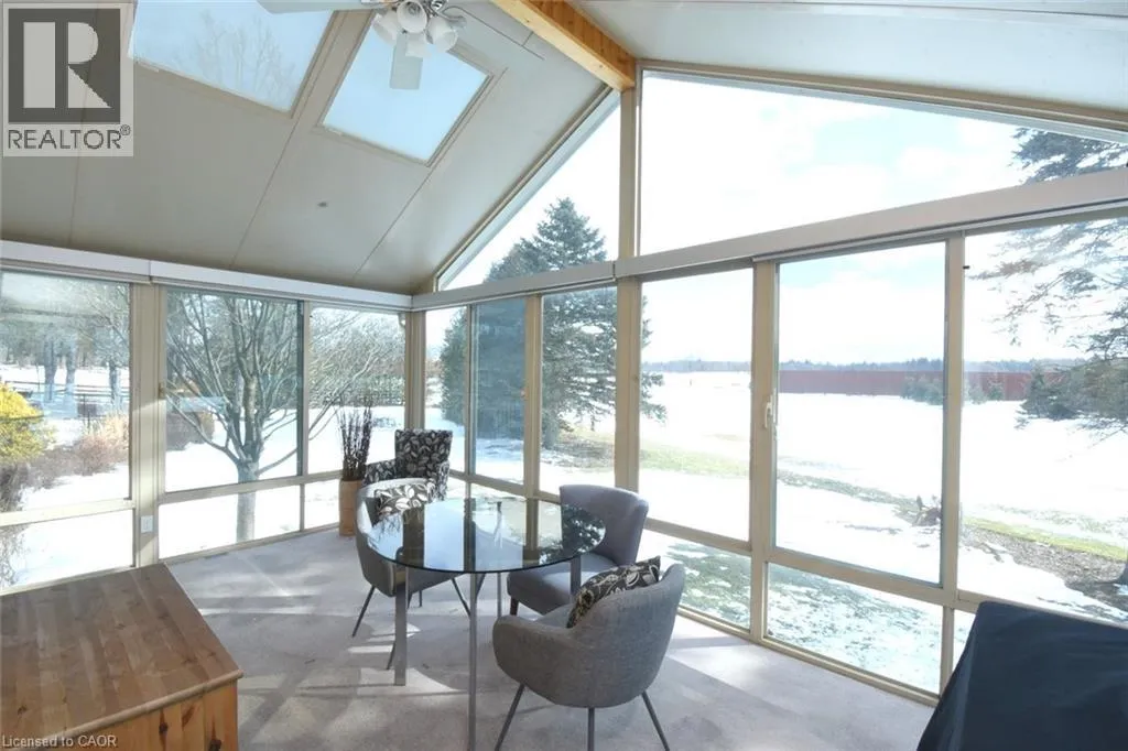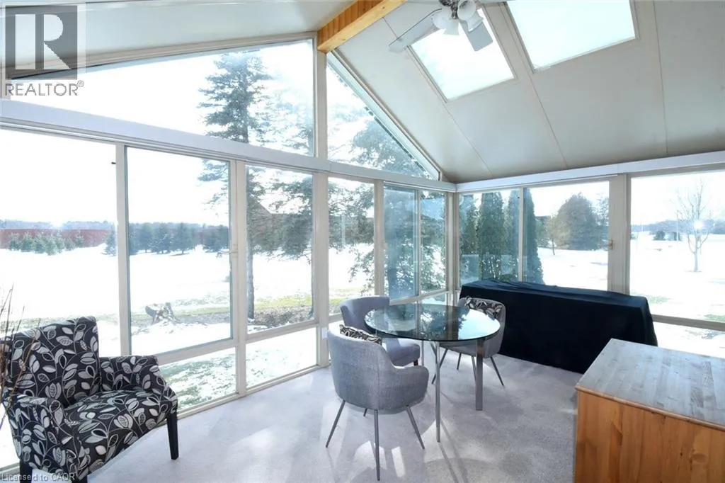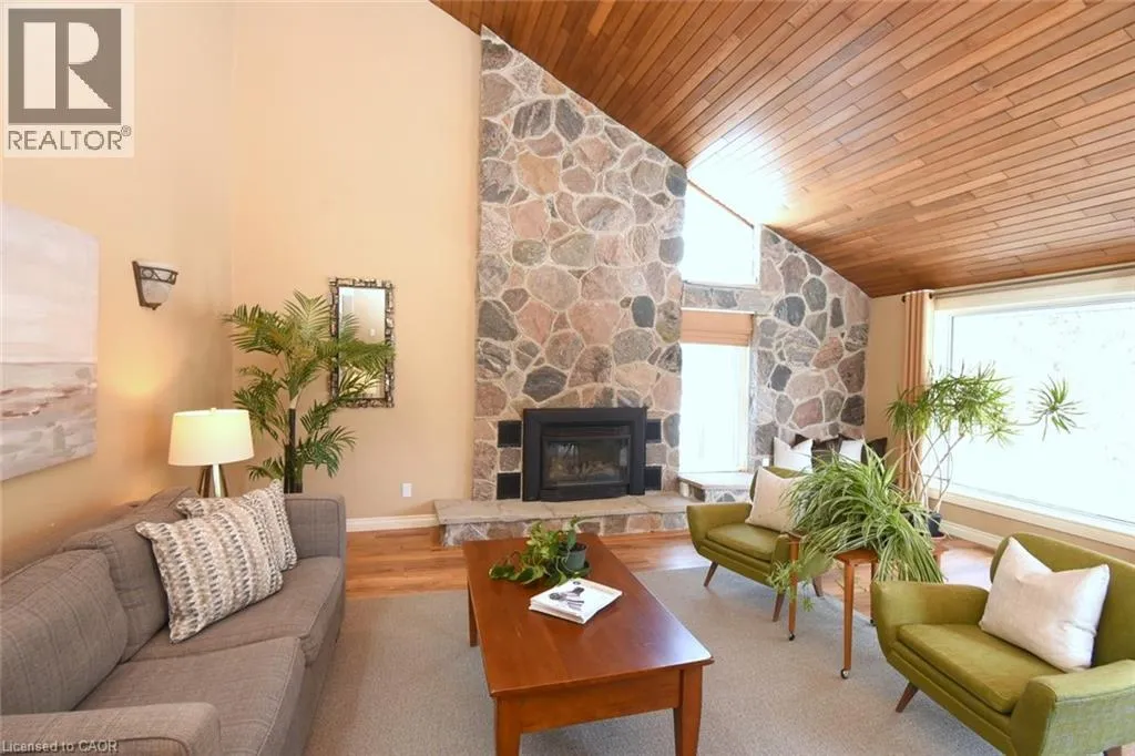 Lovely 3-bedroom home with 2 full baths and 2 powder rooms set on a private, expansive 1.5-acre treed country lot, surrounded by nature at every turn. Large picture windows throughout flood the home with natural light and offer peaceful views from nearly every room. The spacious primary suite features a fireplace, 3-piece ensuite, and walk-in closet with convenient laundry. A second bedroom offers its own 3-piece ensuite and walk-in closet, while the third bedroom provides flexible space for family, guests, or home office use. The open main floor offers generous living space, including a powder room and private office. The large country kitchen features abundant cabinetry, bonus pantry /coffee service area, and dinette with French doors leading to a multi-level deck. The sunken great room with vaulted ceilings, stone feature wall, and gas fireplace creates a warm gathering space with a walkout to the private yard. A formal living room with a coffered ceiling and gas fireplace leads to a large, three-season sunroom to add additional living and entertaining options. Inside entry from the double garage adds everyday convenience. The fully finished, partial basement provides additional living space with carpeted floors, a 2-piece bath, a hobby/bedroom area and 2nd laundry roughed in . Step outside to a private backyard oasis featuring an in-ground pool, beautifully landscaped grounds, and a solid wood gazebo with metal roof for shaded enjoyment. This home is tastefully refreshed in neutral tones and move-in ready. RSA. (id:27476)