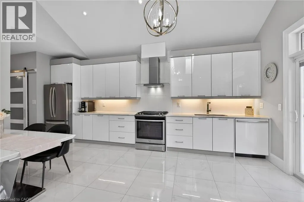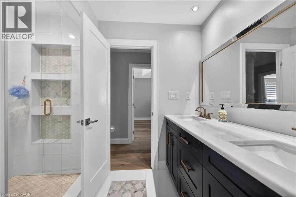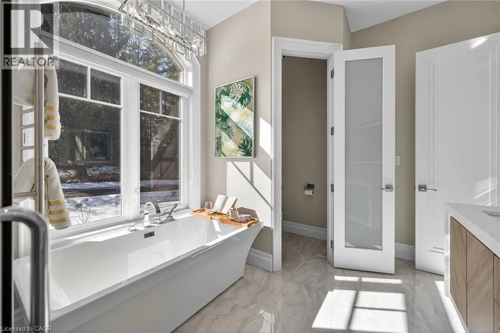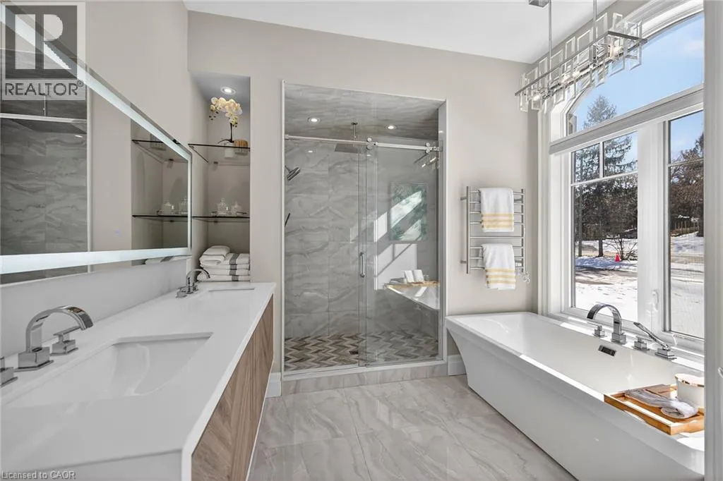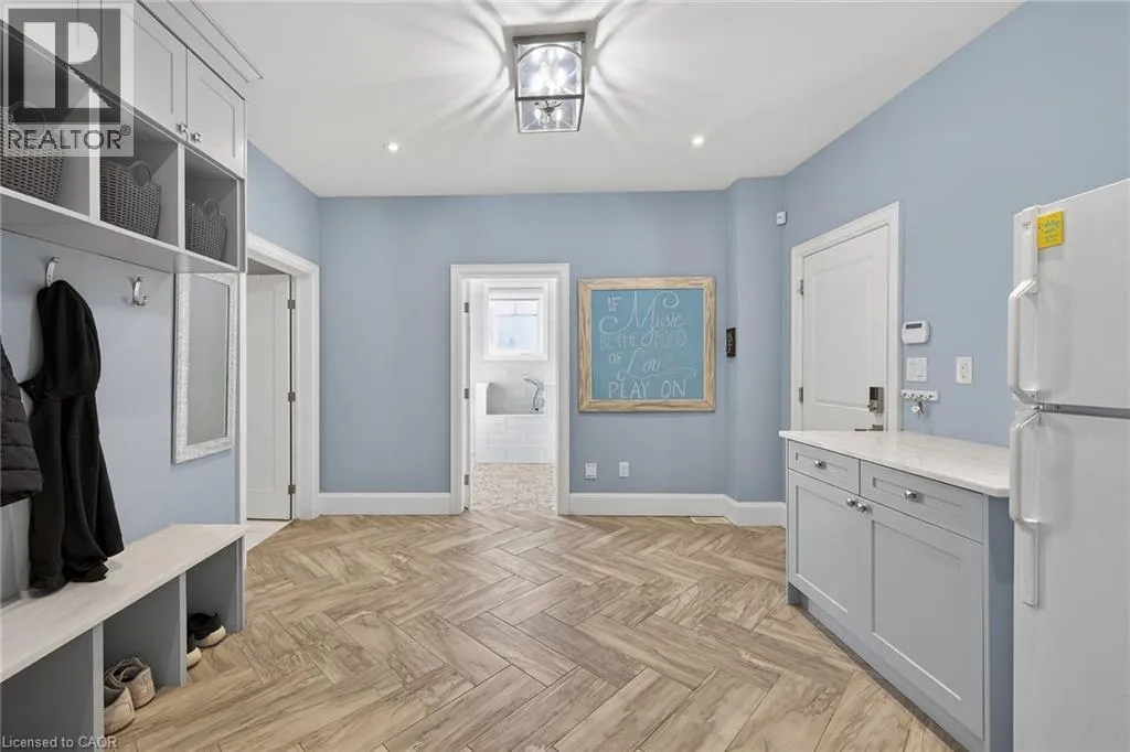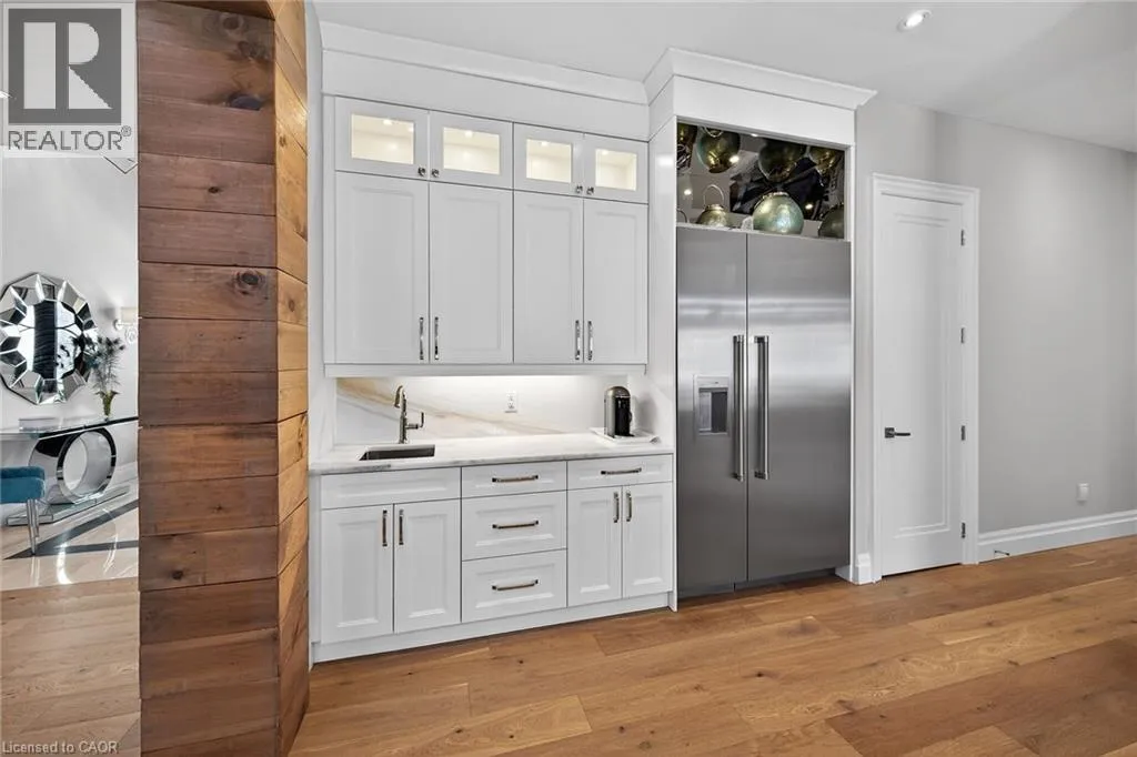 Wilson St, right on Montgomery. Right on Vernon Court A rare Luxury Home with attached Private Suite in a highly sought after location. This exceptional custom-built residence offers approx. 4,960 sq. ft. of thoughtfully designed living space, including a fully integrated 900 sq. ft. private suite â perfect for multi-generational living, a nanny or caregiver, or potential income opportunities. A rare find that combines elegance, flexibility, and everyday functionality for todayâs modern family. The 3,800 sq. ft. main home showcases outstanding craftsmanship & premium finishes throughout. The sun-filled main-floor Master retreat provides comfort & convenience, complete with dual walk-in closets & a spa-inspired 5pc ensuite featuring a soaker tub, heated floors, heated towel rack, & custom glass shower. A private den with custom built-ins creates the ideal work-from-home space or quiet retreat. Designed for gathering & entertaining, the oversized eat-in kitchen features striking quartzite countertops, a large island, walk-in pantry, separate prep kitchen & built-in Thermador appliances. The impressive two-storey family room with custom tile-surround gas fireplace & built-in cabinetry flows seamlessly to the covered rear patio through an oversized triple-pane accordion door system, creating beautiful indoor-outdoor living. A well-appointed mudroom & main-floor laundry complete with custom dog wash add everyday practicality. Venture upstairs to a spacious media room with its own 3-piece ensuite offering flexible living space for teens or guests, along with three additional bedrooms and another full bathroom. The attached 1-bedroom private suite is connected through the mudroom yet fully self-contained, offering a separate side entrance and dedicated garage parking. Featuring vaulted ceilings, a custom fireplace, full kitchen, private laundry, covered patio, & a large bedroom with ensuite bath allowing both independence and comfort while remaining connected to the main home (id:27476)