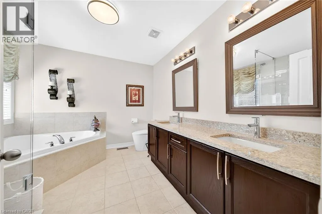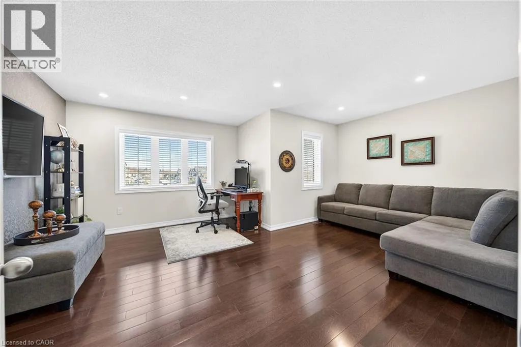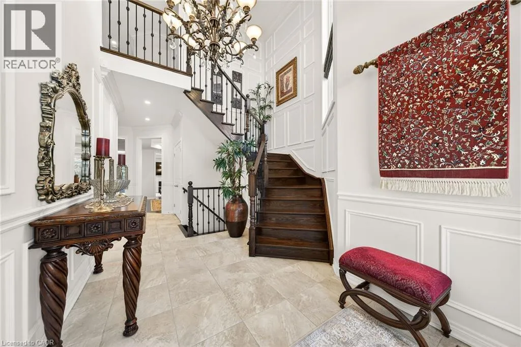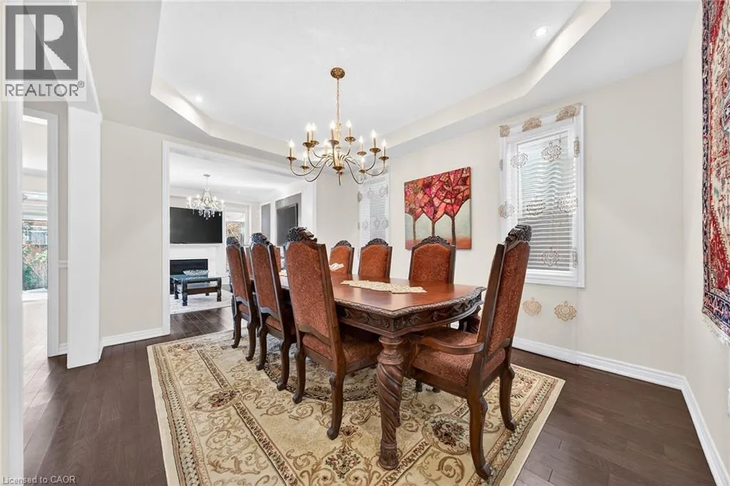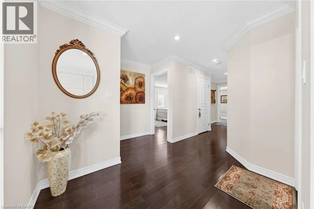 Raymond Rd to Robertson Rd & Left on Grandell Drive Itâs love at first sight! Welcome to this majestic, meticulously maintained home in the highly desirable Meadowlands of Ancaster. Proudly cared for by the original owners, this beautiful residence offers over 2,940 sq. ft. of above-grade living space and is situated on a quiet, family-friendly street. From the stately curb appeal to the stunning exterior finishes, this home makes a lasting impression. Step inside to a grand entryway leading to spacious principal rooms with soaring ceilings that create a bright, airy, and calming atmosphere. The carpet-free main floor features engineered hardwood flooring, a cozy gas fireplace, and an ideal layout including a formal living room, dining room, and family room. The bright and spacious eat-in kitchen is designed for both everyday living and entertaining, offering granite countertops, a built-in pantry, breakfast bar, and ample cabinetry. Upstairs, retreat to the generously sized primary bedroom complete with sun-filled windows, a walk-in closet, and a spacious ensuite bath. Three additional well-appointed bedrooms and a four-piece bathroom complete the second levelâperfect for growing families. The full, unfinished basement with high ceilings provides a blank canvas ready for your personal touch and future expansion, offering incredible potential to customize to your needs. Enjoy the outdoors in the low-maintenance backyard featuring exposed aggregate concrete, with matching exposed aggregate driveway enhancing the homeâs curb appeal. A truly exceptional home in a prime locationâseeing is believing. (id:27476)