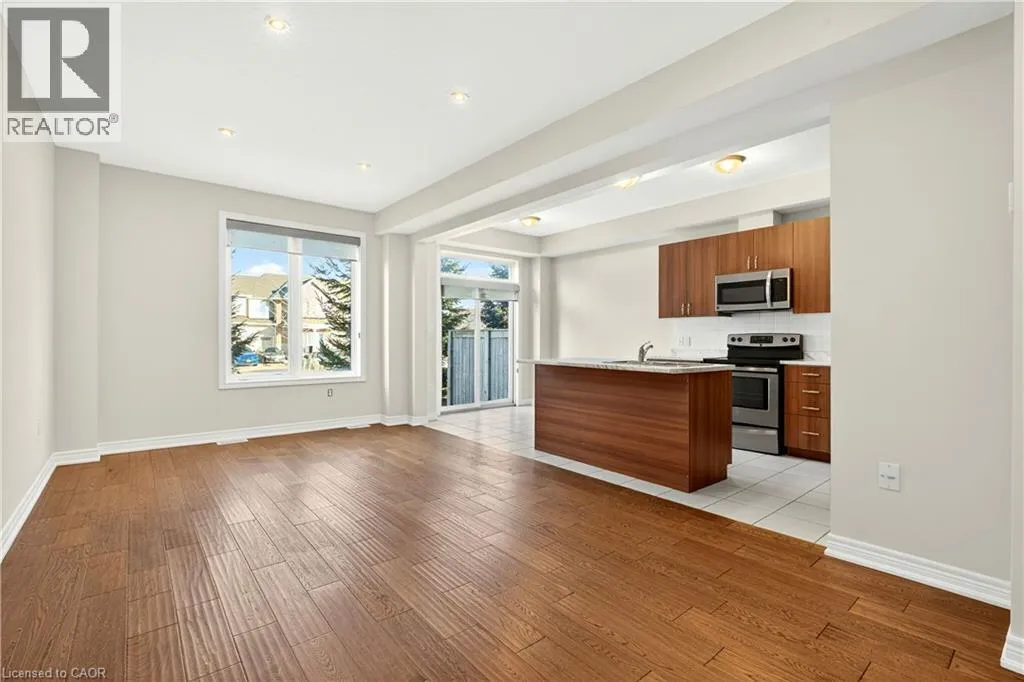 South on Raymond from Stonehenge & Raymond Welcome to #34-90 Raymond Rd. a thoughtfully designed luxurious home featuring comfort, function and flexibility for modern living. The main living space features a welcoming and spacious living room with natural light flowing through large windows complete with beautiful hardwood floors. The eat in kitchen area creates an ideal space for gatherings, with breakfast bar and direct access to the rear yard. A convenient powder room and interior garage access adds everyday practicality. Upstairs, youâll find three spacious bedrooms, including a primary suite complete with a private ensuite and ample closet space. Two additional bedrooms share a full bath and provide plenty of room for family, guests, or a home office. The large open space provides a perfect flex area and upper-level laundry provides plenty of convenience. Outside, the property includes a private driveway and garage for parking, plus a backyard thatâs ready to be enjoyed! Located in a family-friendly neighbourhood close to schools, parks, shopping, and transit, this property combines everyday convenience with a warm and functional layout. (id:27476)