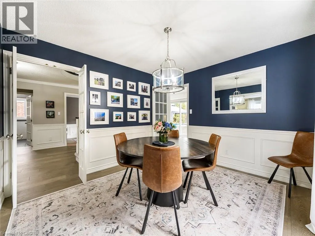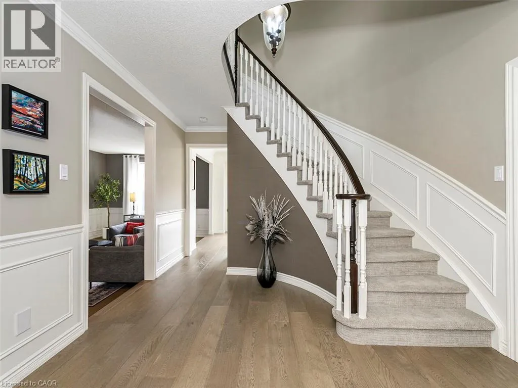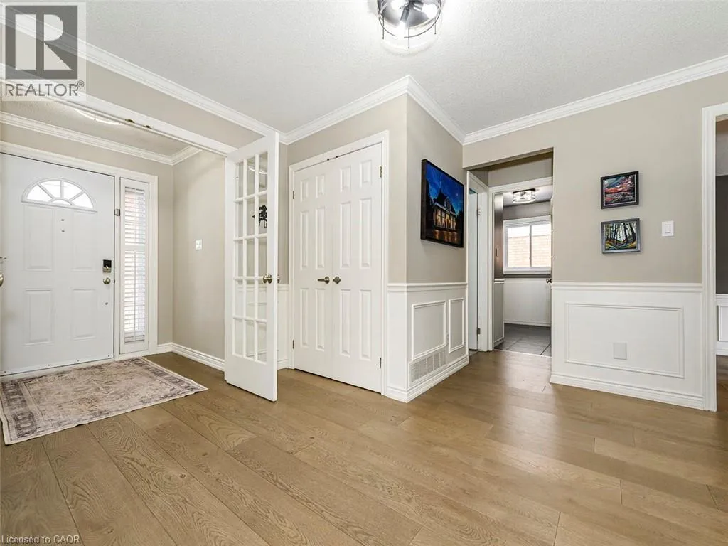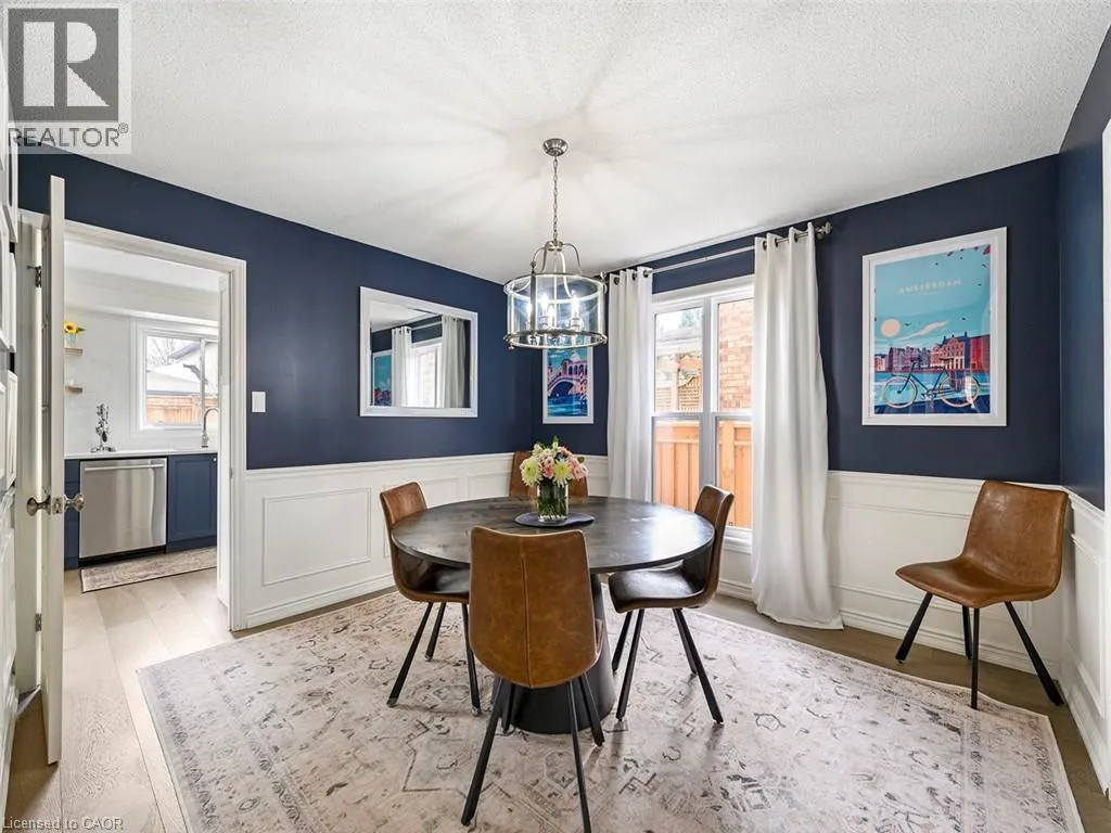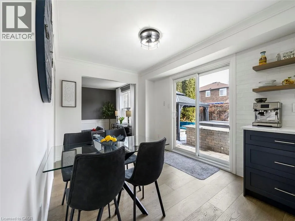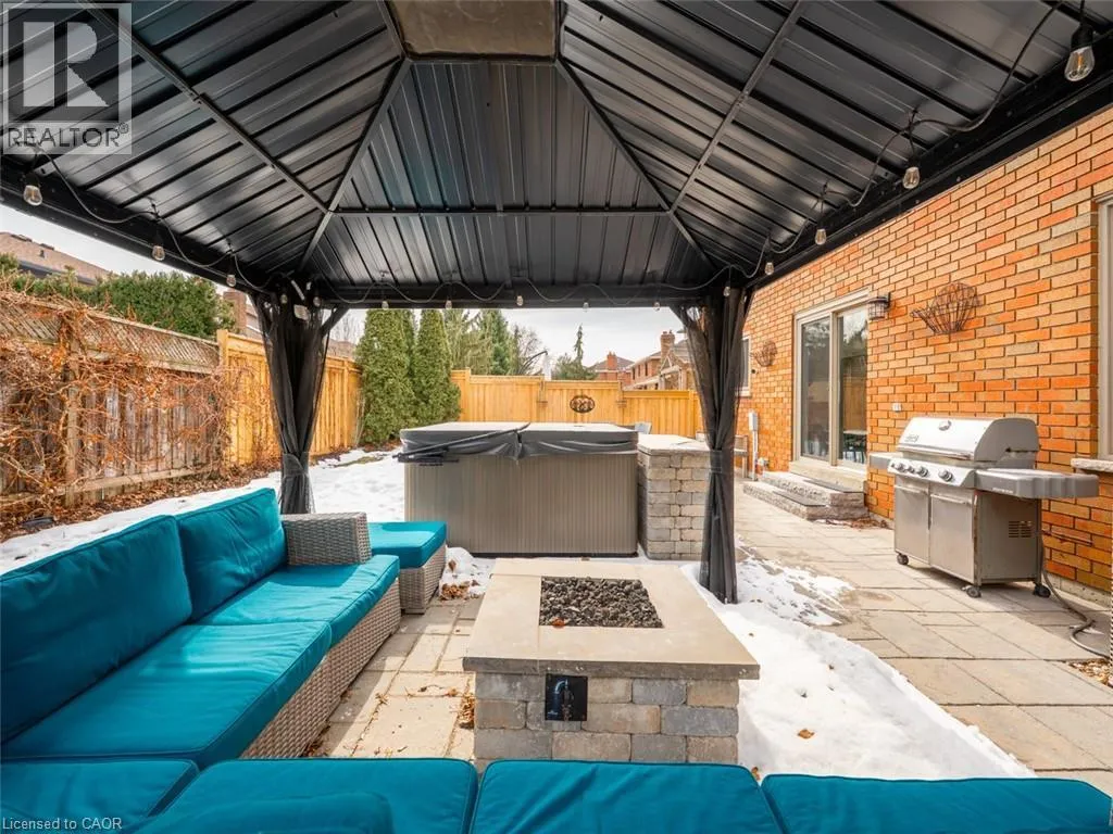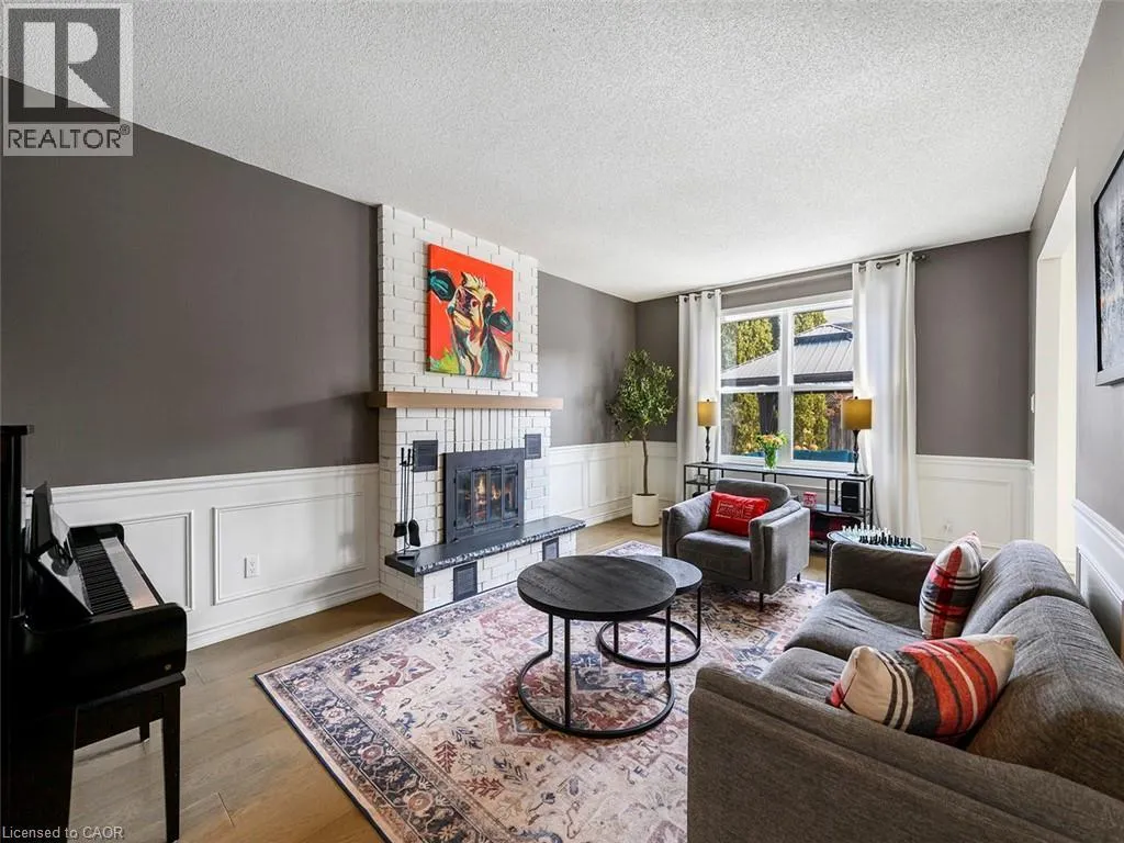 Wilson St W to Meadowbrook Dr to Galley Rd Imagine a place where the kids can safely ride to school, where you can walk or bike everywhereâgroceries, banking, restaurants, parks, conservation trails and yet highway access is only two minutes away. Perfectly positioned in the heart of this highly desirable family neighbourhood sits a beautifully updated 4-bedroom home designed for modern living. The main floor has been completely renovated, featuring new plank flooring, a redesigned kitchen with updated cabinetry, and an inviting family room with custom bar cabinetry and a refreshed wood-burning fireplaceâperfect for entertaining or relaxing evenings at home. The thoughtfully redesigned laundry/mudroom adds both style and everyday functionality. Upstairs, the bedroom level has been fully refreshed with updated flooring, bathrooms, and fresh paint throughout. The primary bedroom offers direct access to the fourth bedroom, creating an ideal nursery, home office, or private sitting room. Step outside to your fully landscaped backyard escape, complete with a hot tub, hardtop gazebo, gas firepit, and patio entertaining area...your own private retreat. Additional highlights include updated windows throughout and a separate entrance from the garage to the finished basement, offering excellent potential for a future in-law suite. A rare opportunity to enjoy convenience, comfort, and community all in one exceptional home. (id:27476)