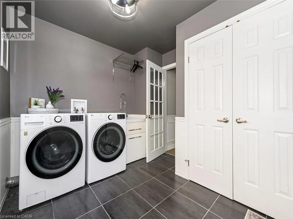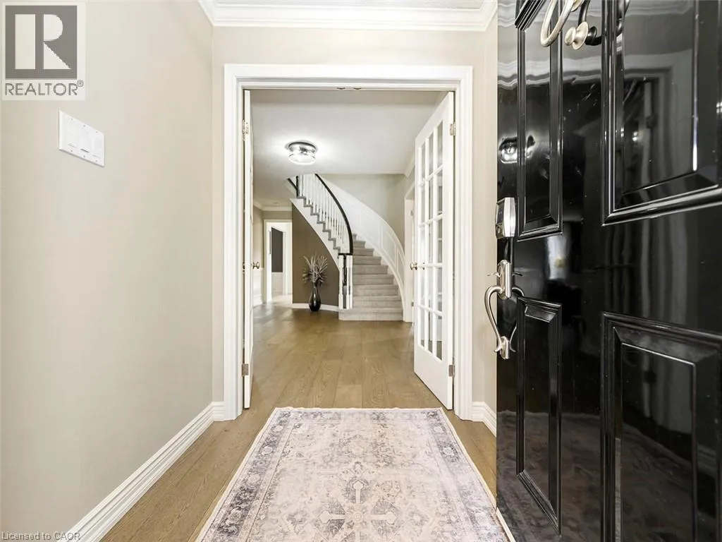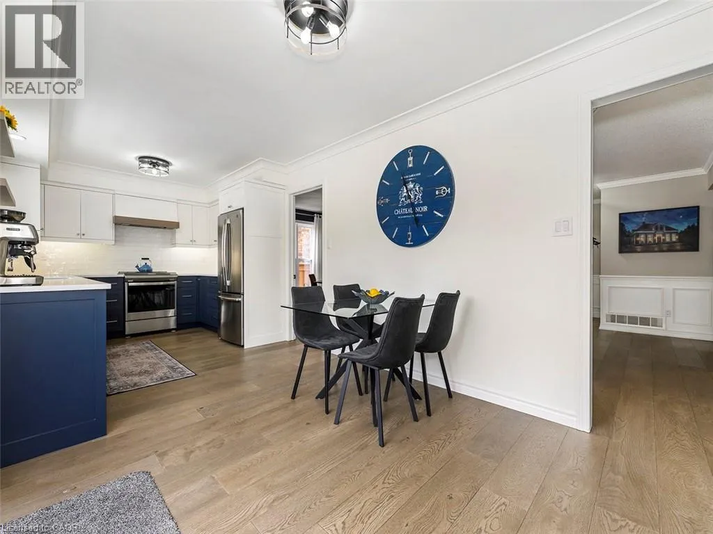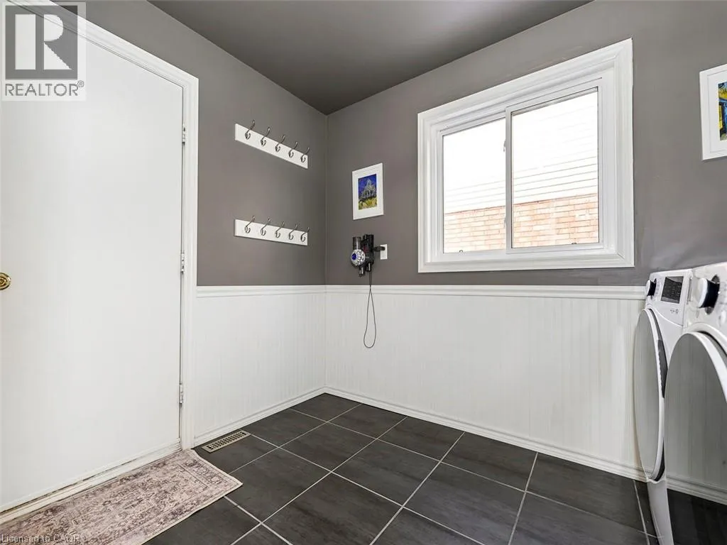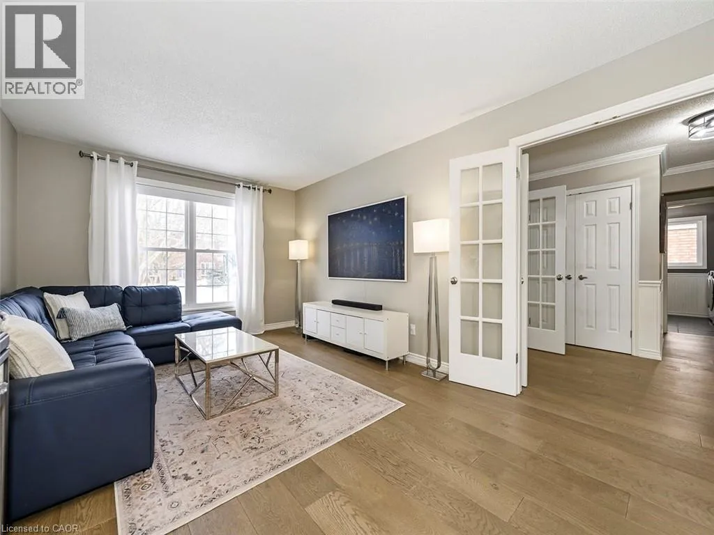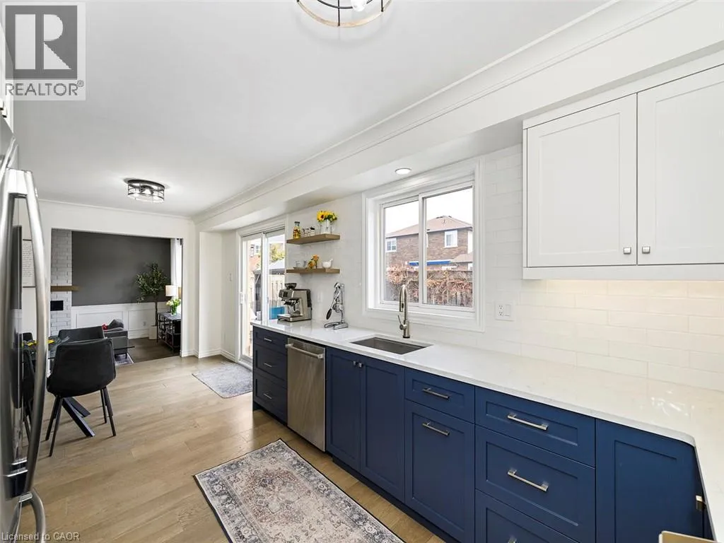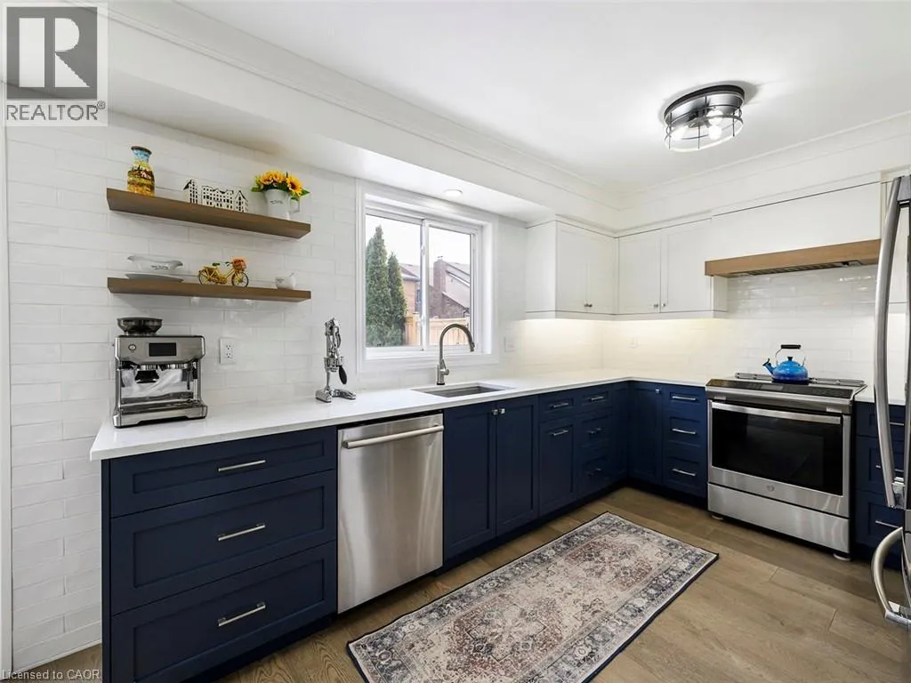 Wilson St W to Meadowbrook Dr to Galley Rd Imagine a place where the kids can safely ride to school, where you can walk or bike everywhereâgroceries, banking, restaurants, parks, conservation trails and yet highway access is only two minutes away. Perfectly positioned in the heart of this highly desirable family neighbourhood sits a beautifully updated 4-bedroom home designed for modern living. The main floor has been completely renovated, featuring new plank flooring, a redesigned kitchen with updated cabinetry, and an inviting family room with custom bar cabinetry and a refreshed wood-burning fireplaceâperfect for entertaining or relaxing evenings at home. The thoughtfully redesigned laundry/mudroom adds both style and everyday functionality. Upstairs, the bedroom level has been fully refreshed with updated flooring, bathrooms, and fresh paint throughout. The primary bedroom offers direct access to the fourth bedroom, creating an ideal nursery, home office, or private sitting room. Step outside to your fully landscaped backyard escape, complete with a hot tub, hardtop gazebo, gas firepit, and patio entertaining area...your own private retreat. Additional highlights include updated windows throughout and a separate entrance from the garage to the finished basement, offering excellent potential for a future in-law suite. A rare opportunity to enjoy convenience, comfort, and community all in one exceptional home. (id:27476)